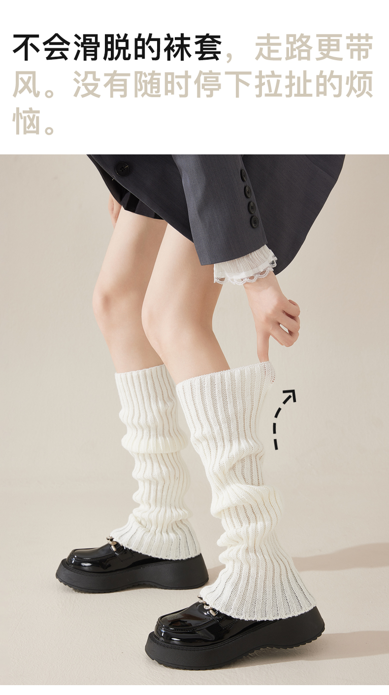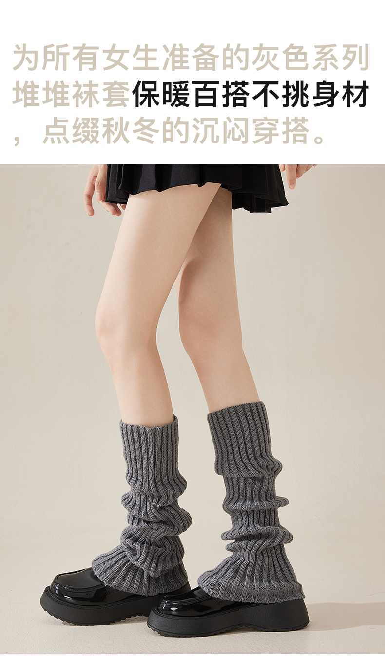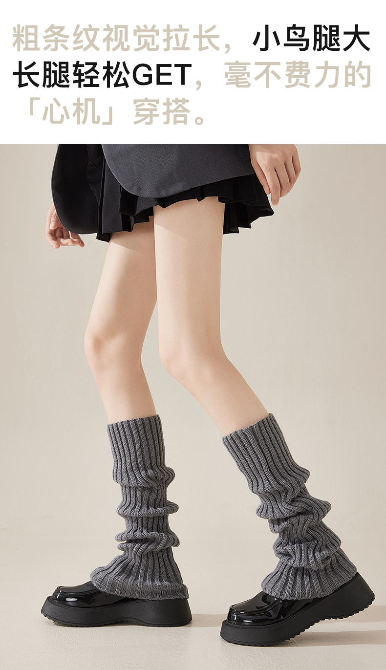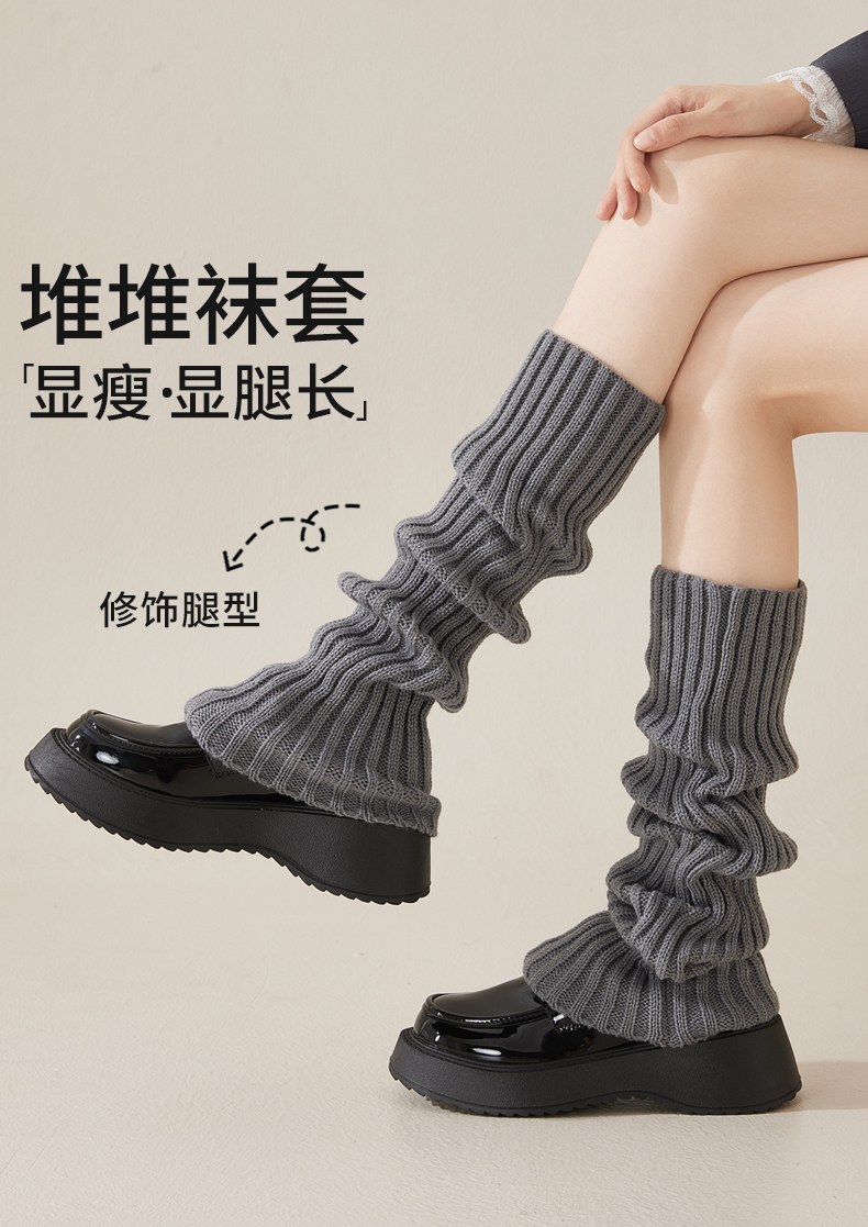Gray Sock Covers for Women, Calf Socks, Jk Snow Boots Leg Warmers, Autumn and Winter Warm Thick Long Tube Knitted Slouch Socks