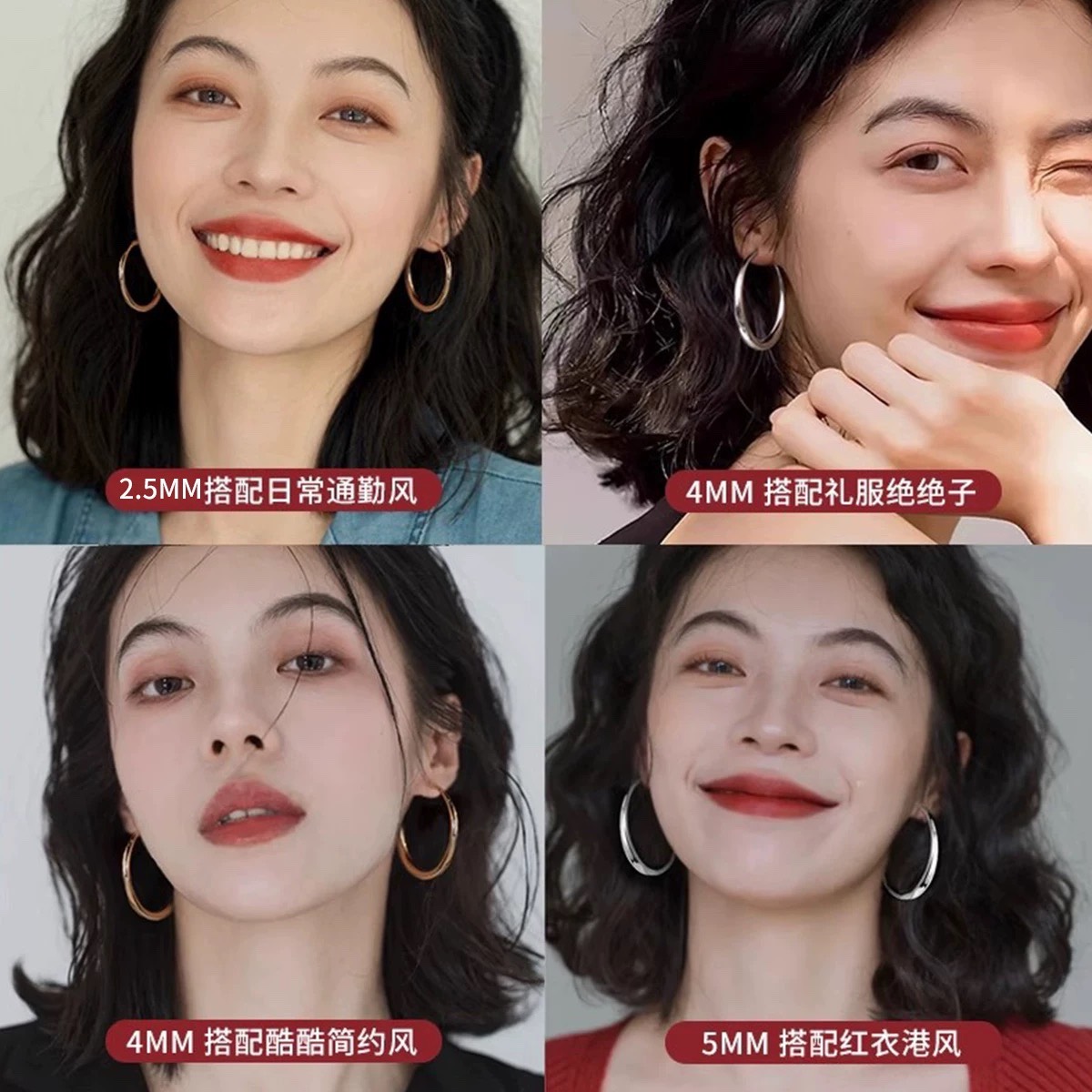 Silver Large Hoop Earrings for Women 2025 New Popular Style Light Luxury High-End Feel Suitable for Square and Round Faces Plain Hoop Earrings