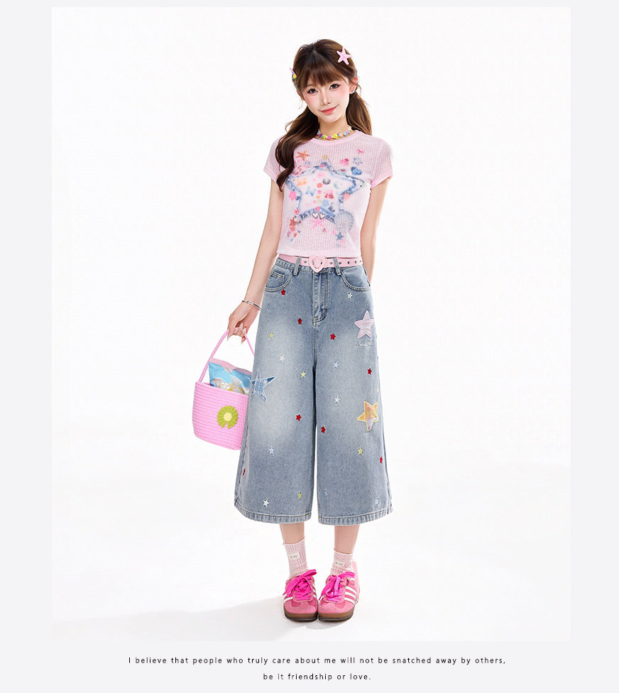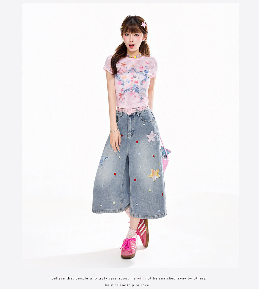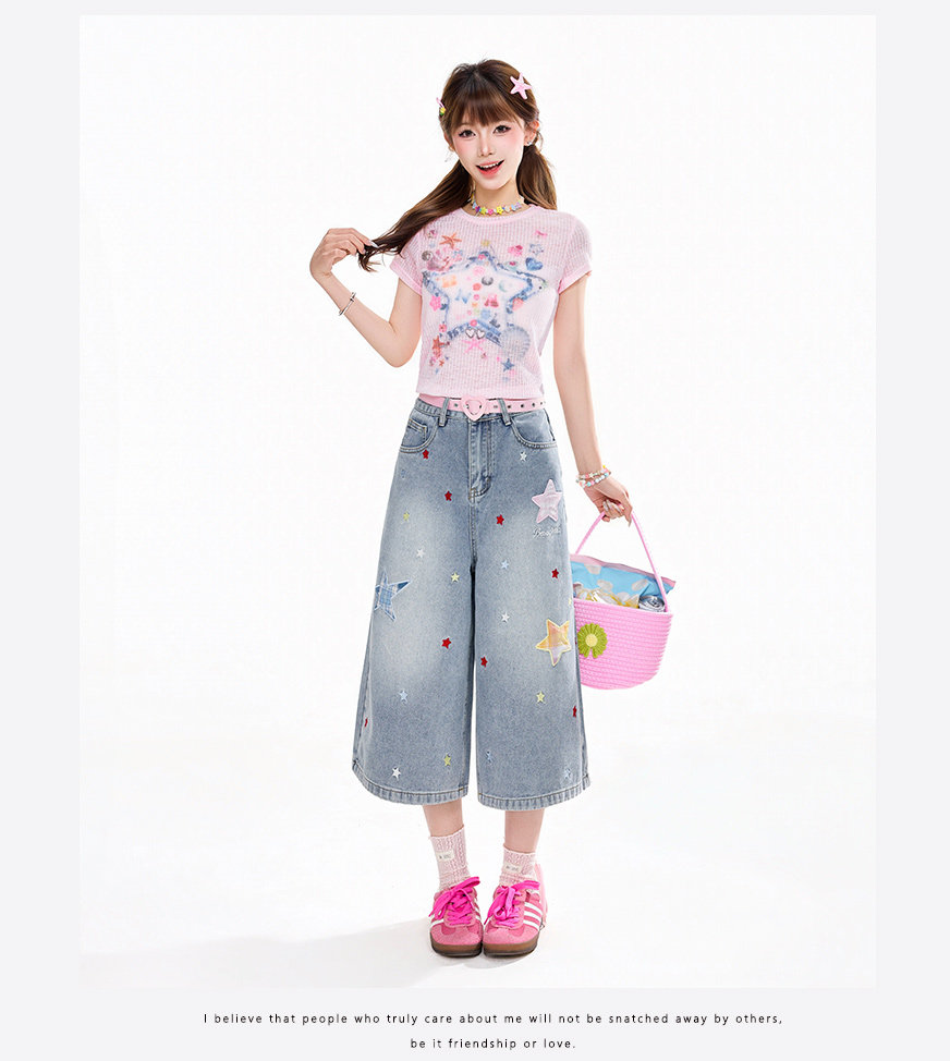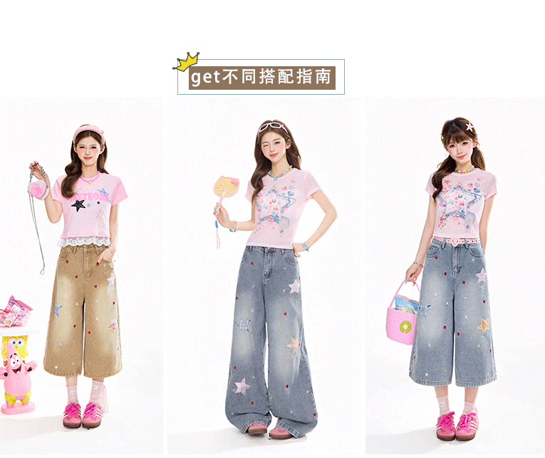 Rayohopp Star Patch Jeans for Women, New Spring and Summer Straight-Leg Pants, Loose, Slimming, Versatile Wide-Leg Trousers