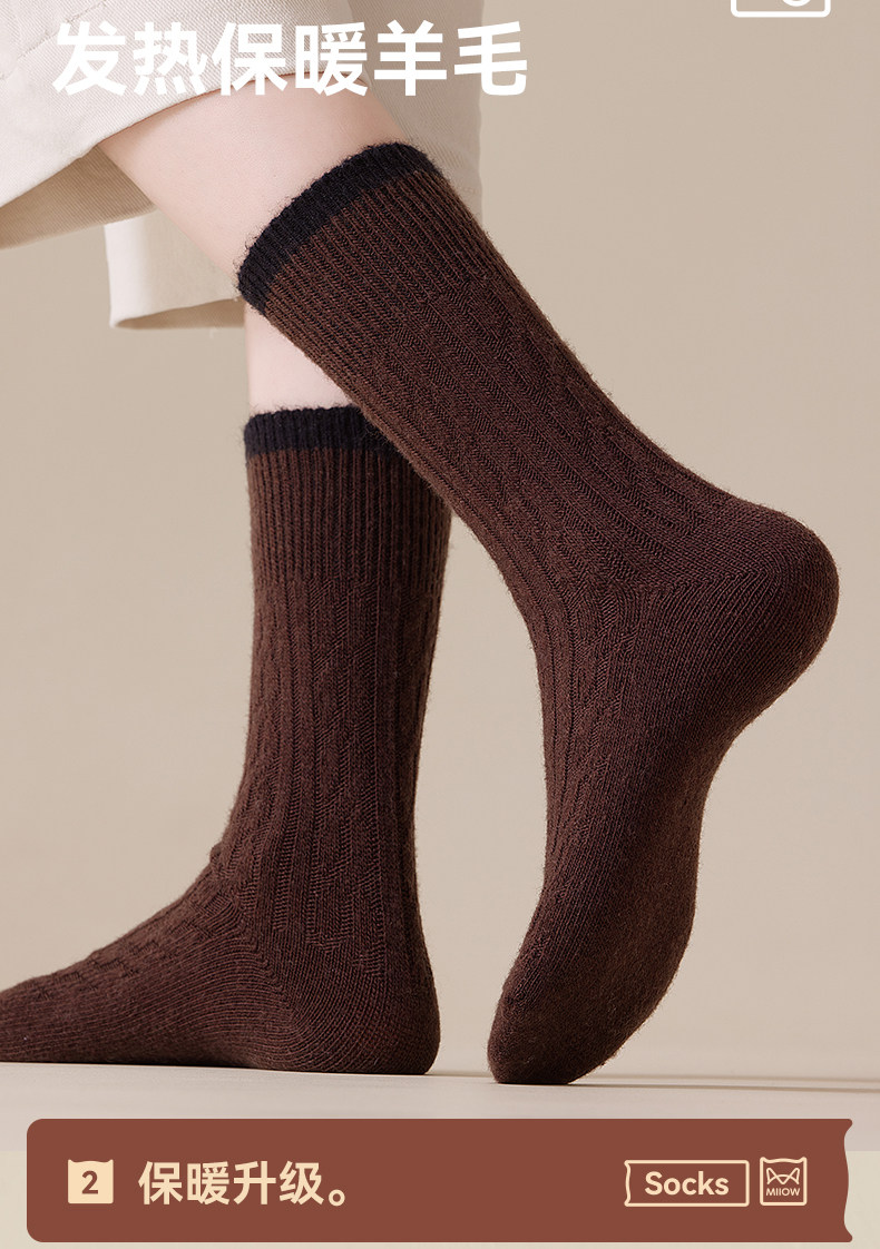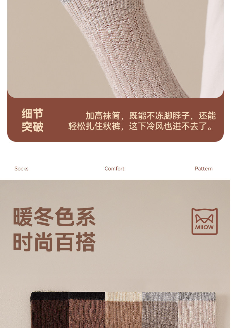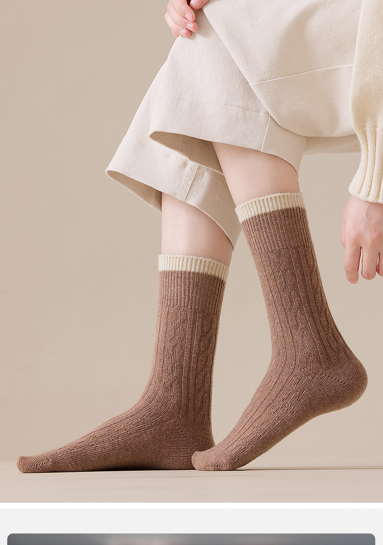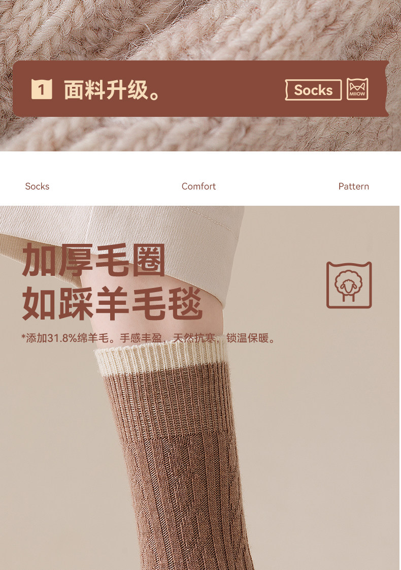 Cat-Themed Wool Socks for Women, Autumn and Winter, Fleece-Lined, Thickened, Mid-Calf Socks, Heat-Retaining, Warm, Winter Sleep Maternity Long Socks