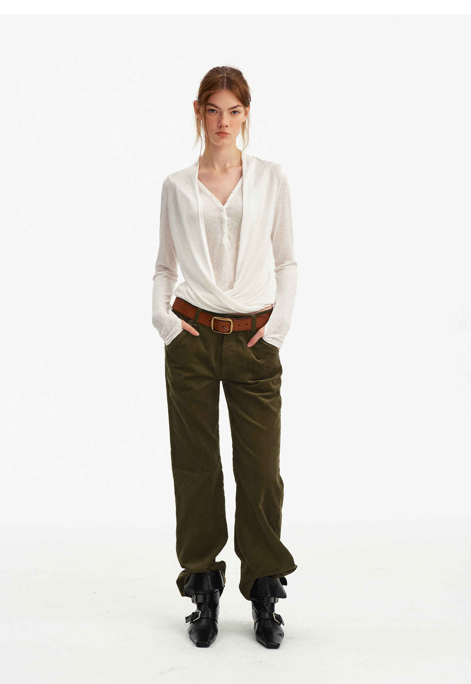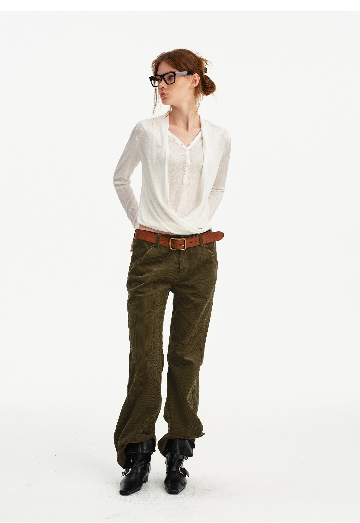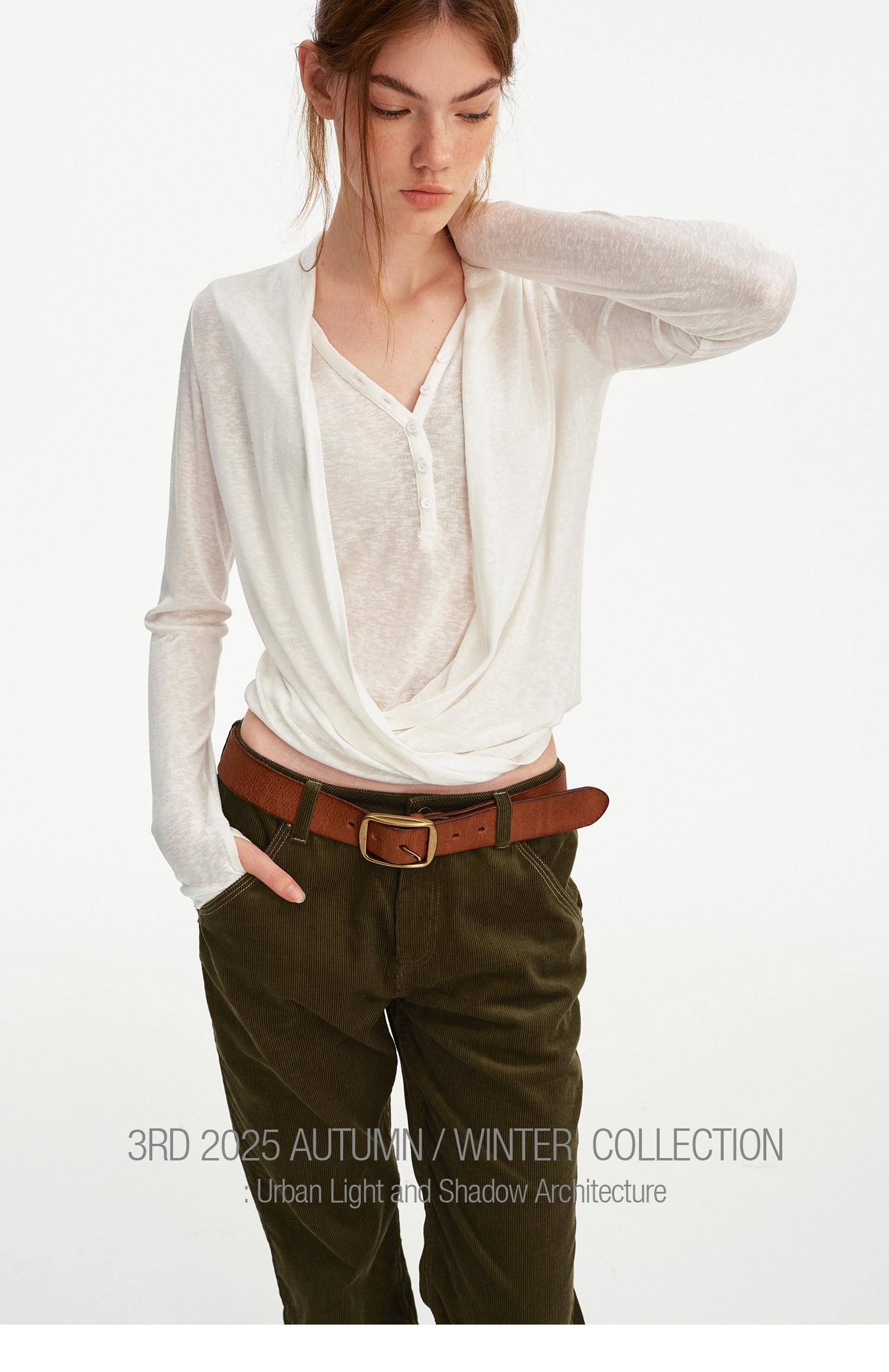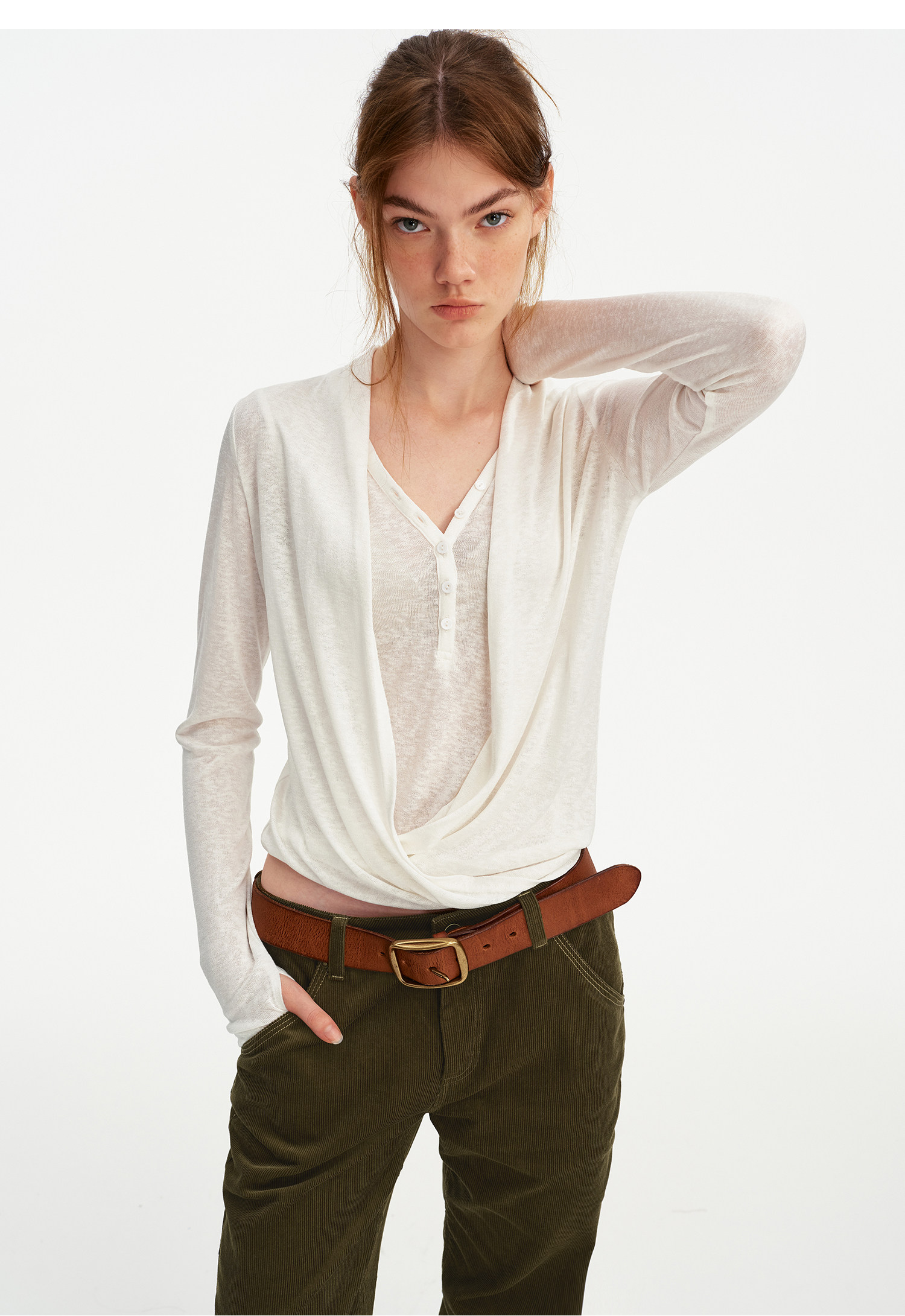 3Rd Fake Two-Piece Cross-Draped V-Neck Tencel Linen Base Shirt Slim Long-Sleeve T-Shirt