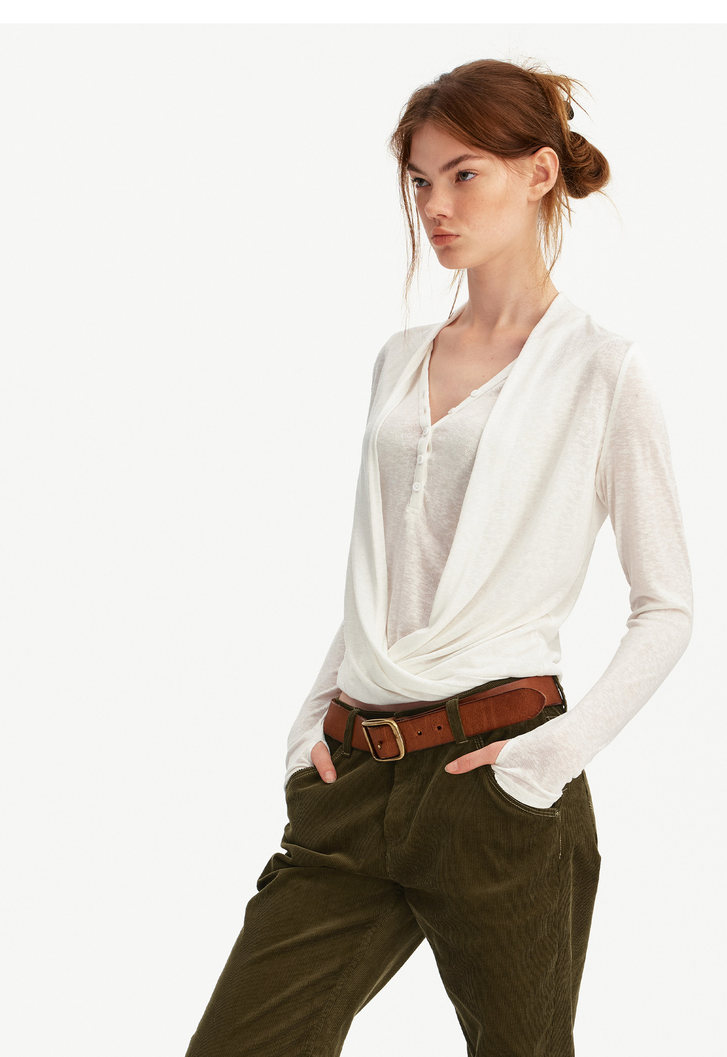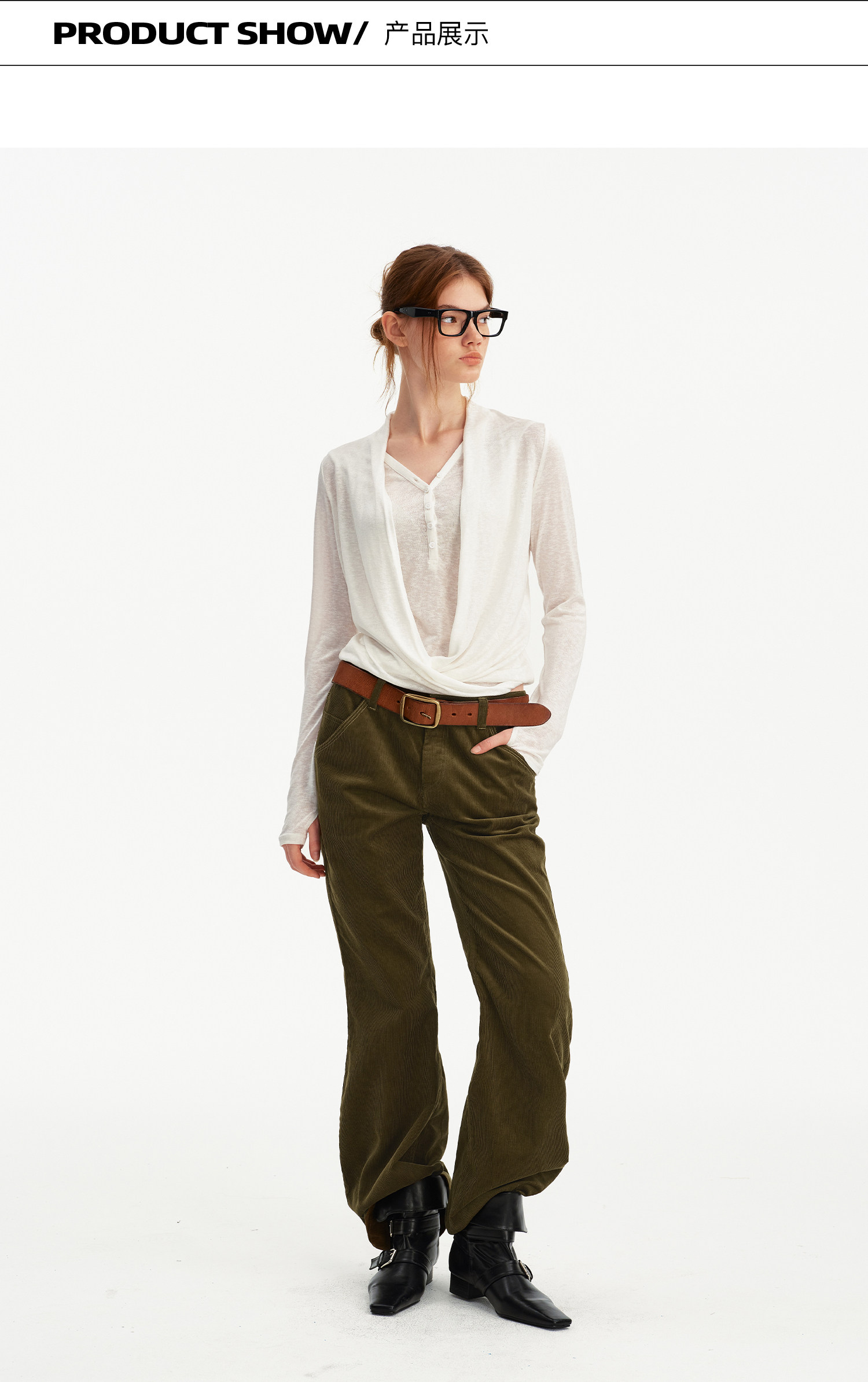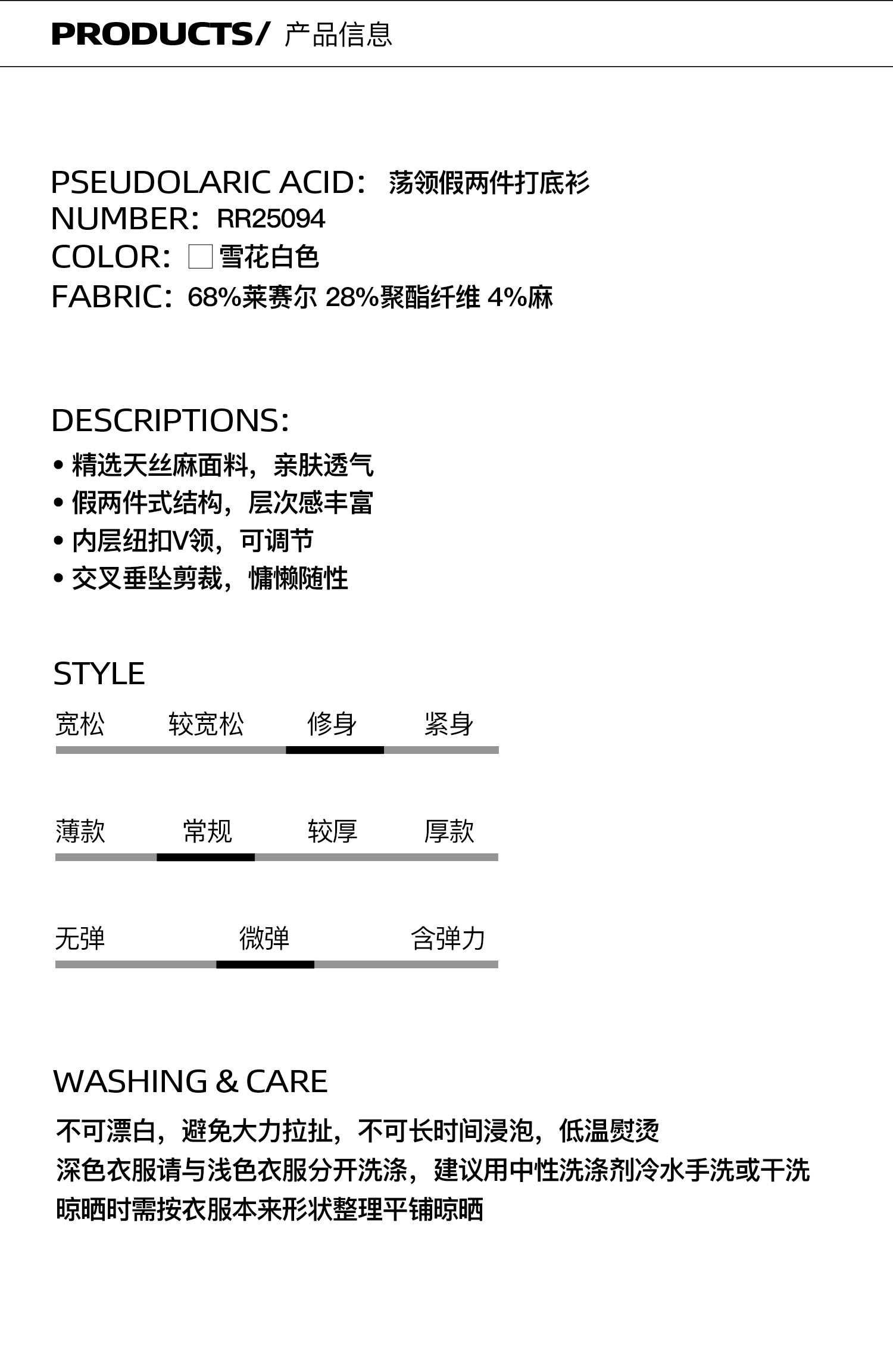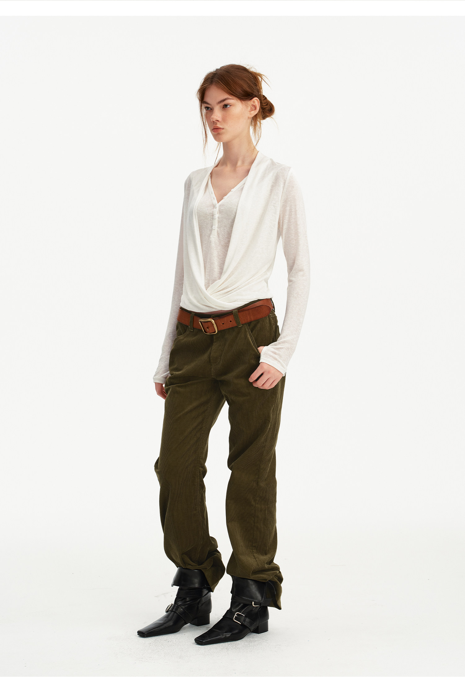 3Rd Fake Two-Piece Cross-Draped V-Neck Tencel Linen Base Shirt Slim Long-Sleeve T-Shirt