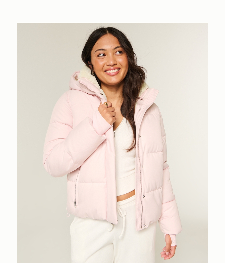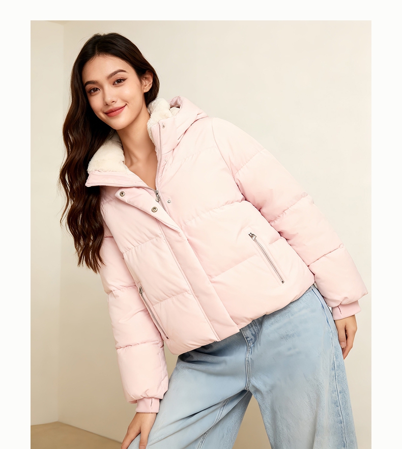 Hollister25 Autumn and Winter New American Style Warm Imitation Lamb Wool Hooded Cotton Jacket Women's Clothing 344-5059