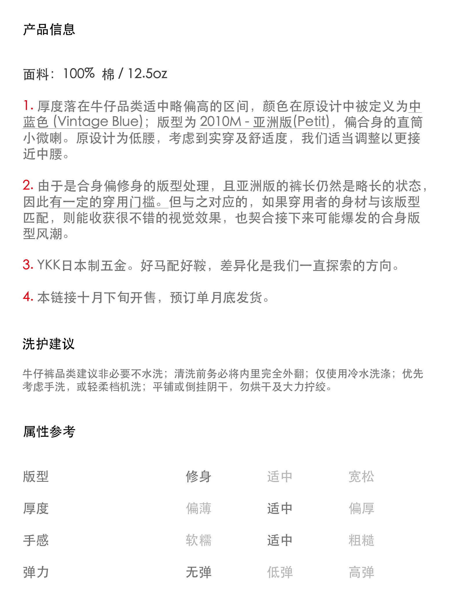 Prmlege「2010M」Asian Fit/12.5Oz/Slight Flare/Fitted Straight-Leg Mid-Blue Jeans