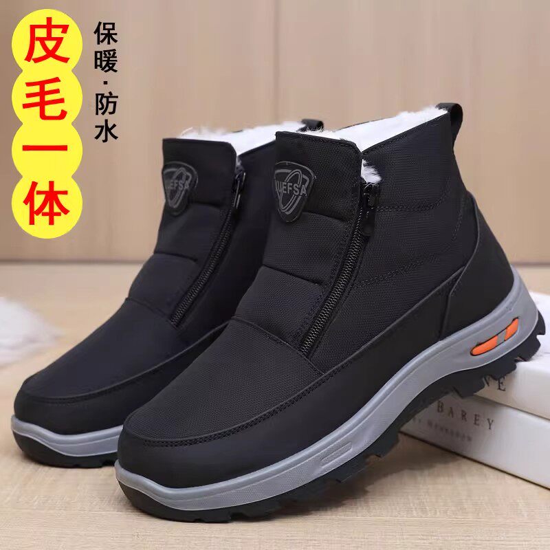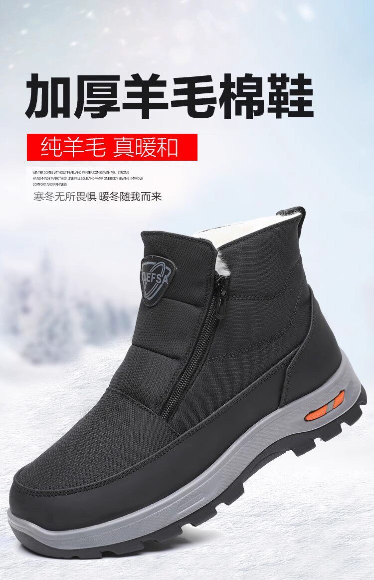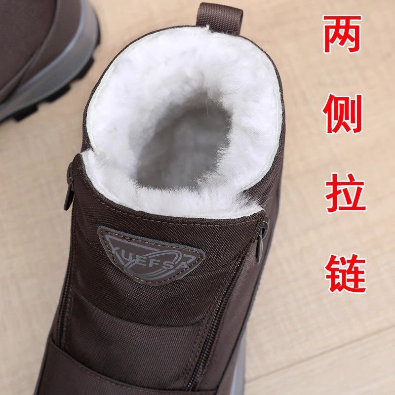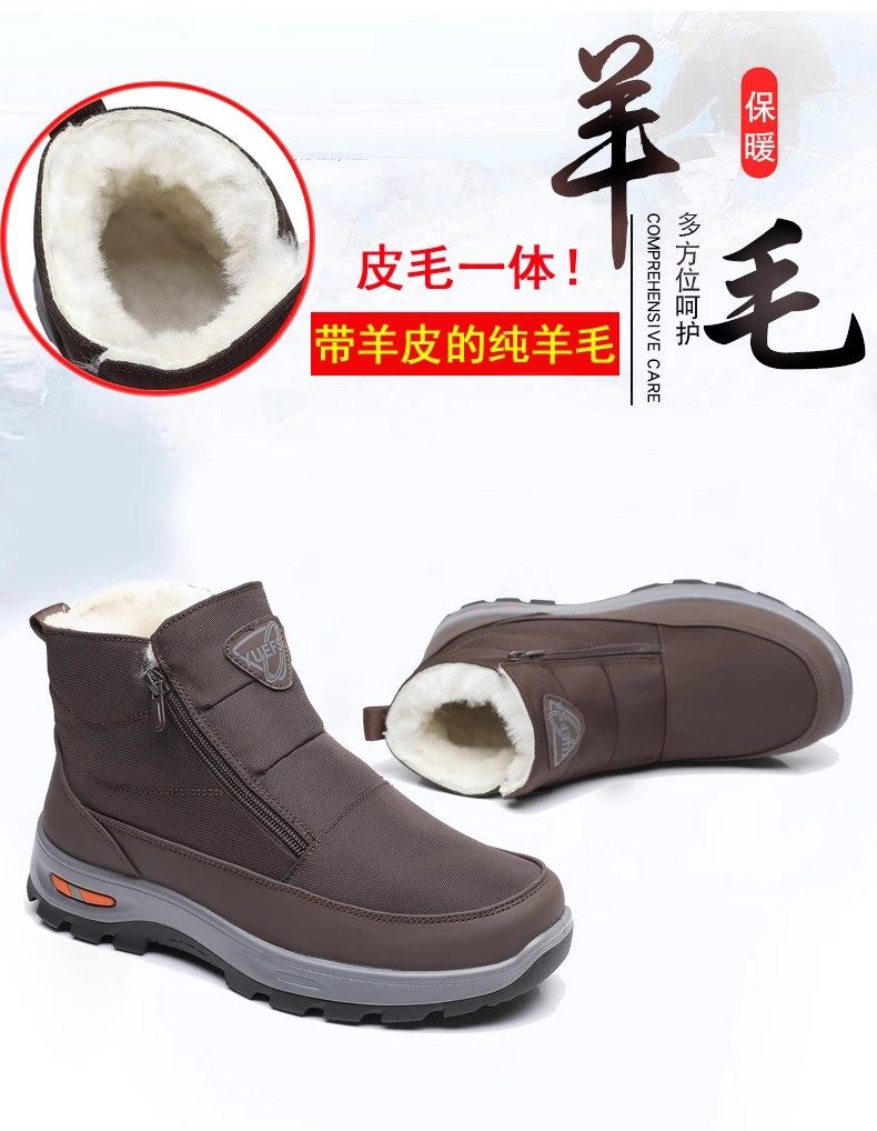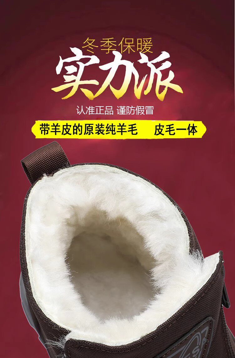 German Quality Winter Genuine Pure Wool Men's Cotton Shoes with Fleece Lining, Warm Dad Shoes, Middle-Aged Northeast High-Top Cotton Boots