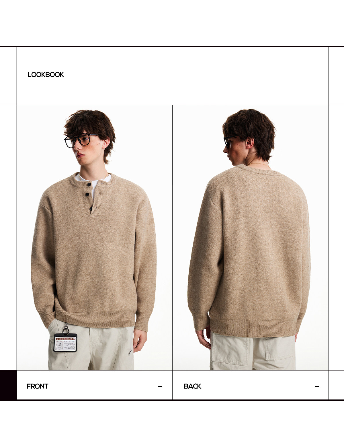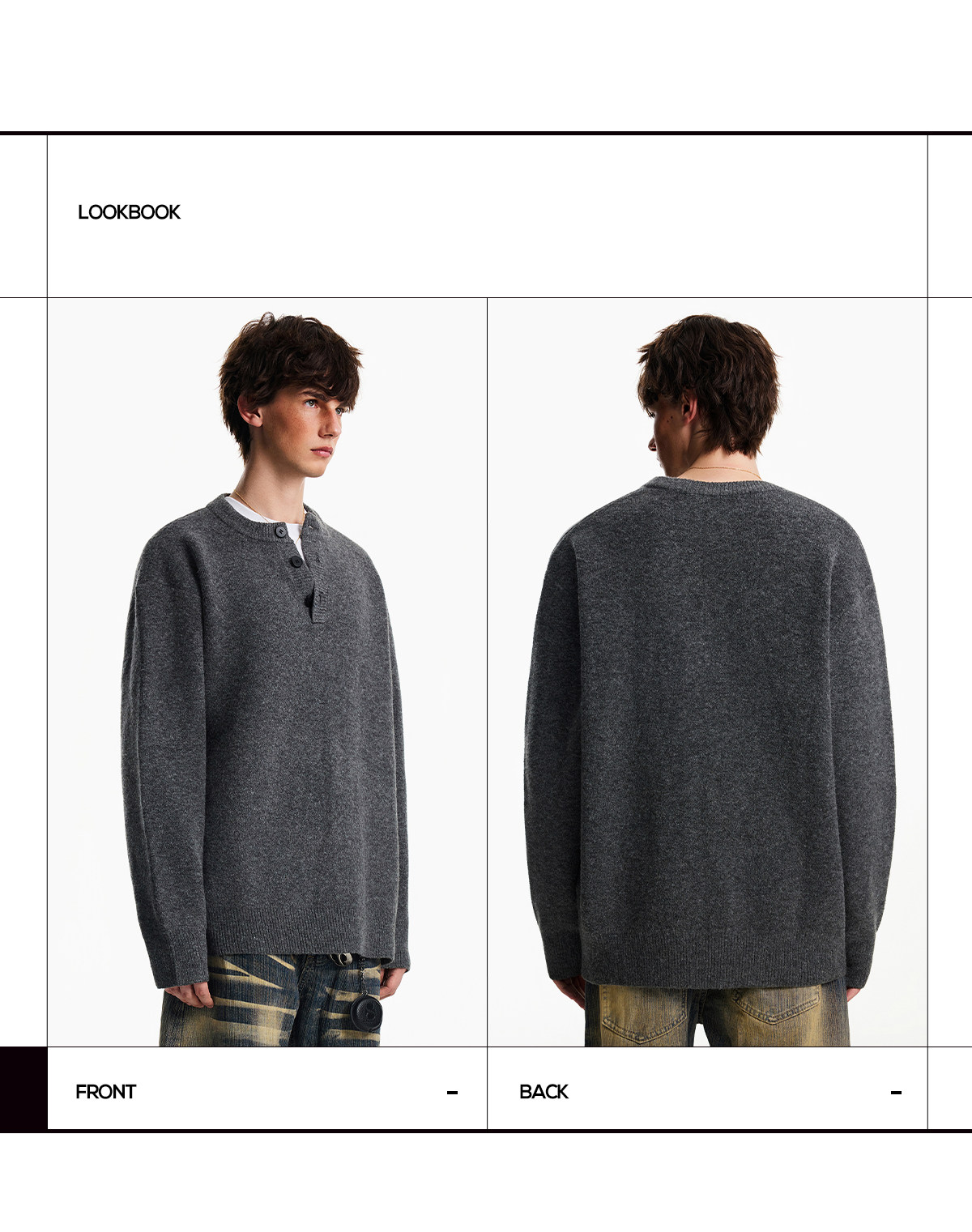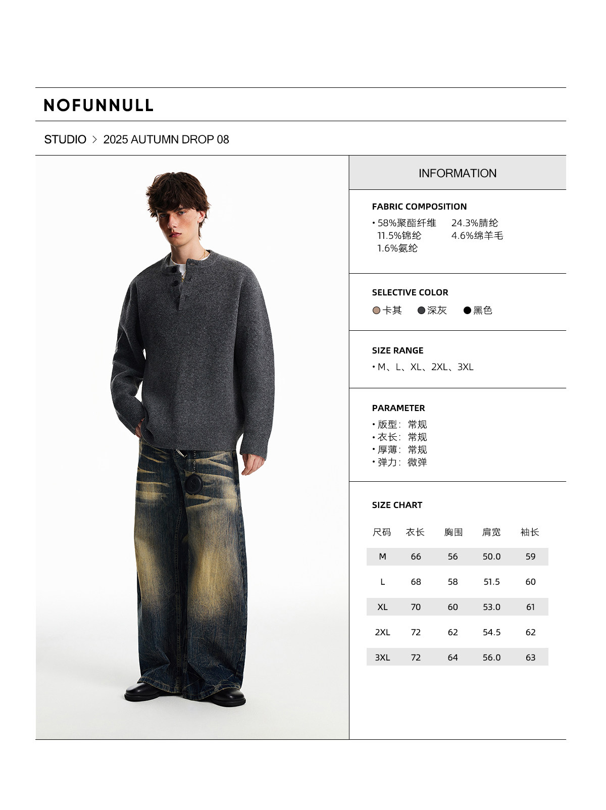 Nofunnull American-Style Henry Collar Buttoned Wool Sweater for Men, Autumn and Winter Loose Round Neck Heavy Knit Top