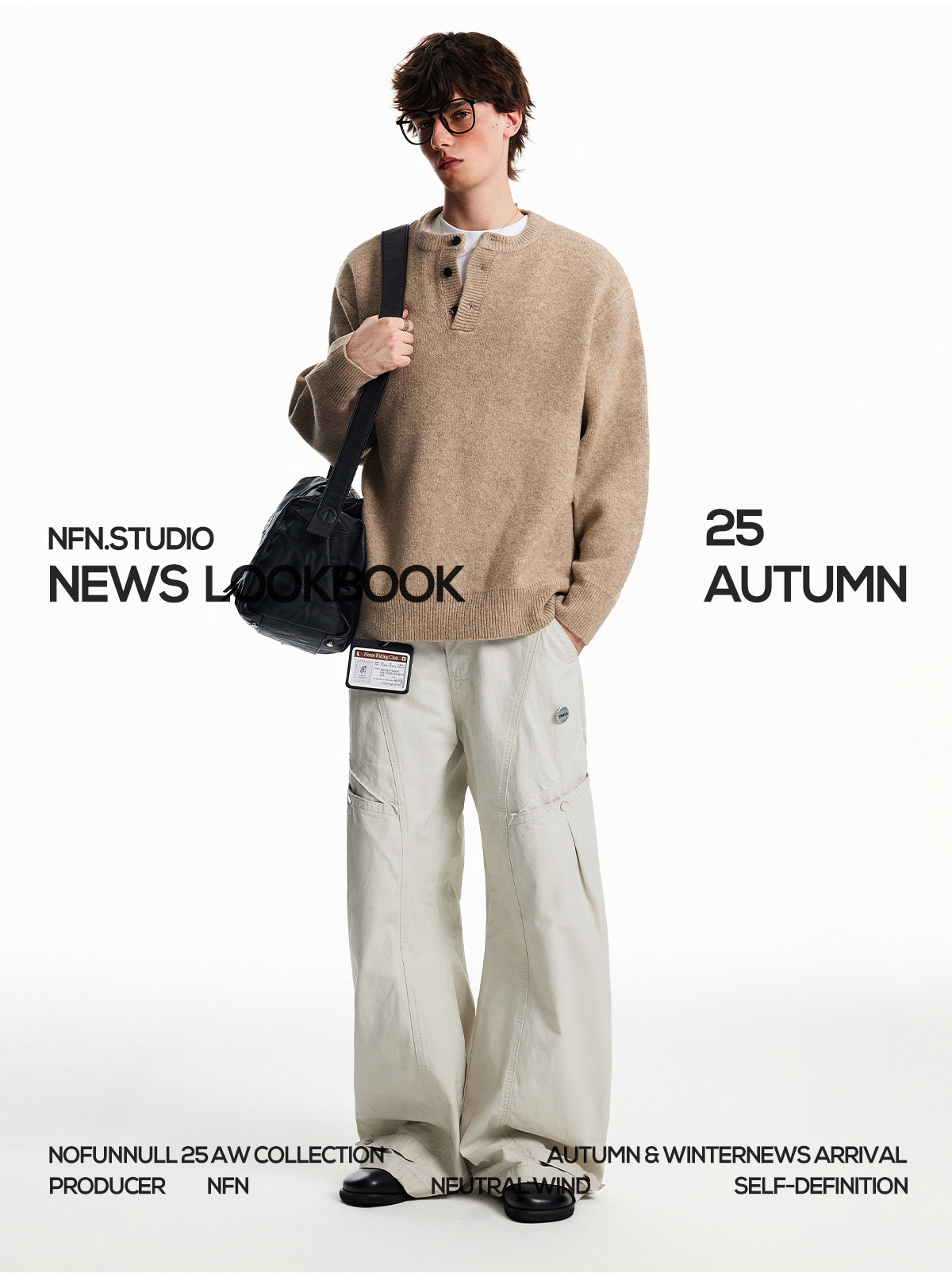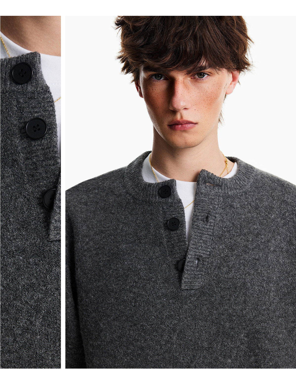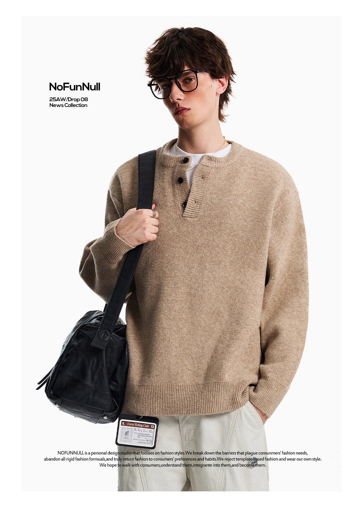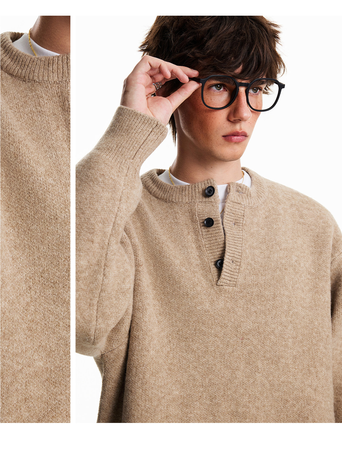 Nofunnull American-Style Henry Collar Buttoned Wool Sweater for Men, Autumn and Winter Loose Round Neck Heavy Knit Top
