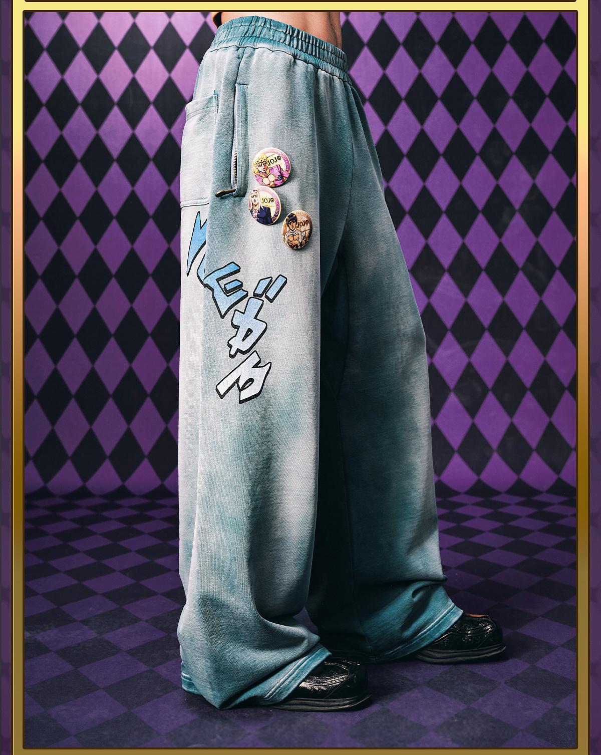 Medmxjojo's Bizarre Adventure Collaboration - Line Art Casual Elastic Sweatpants Washed Vintage Embroidered Floor-Length Pants