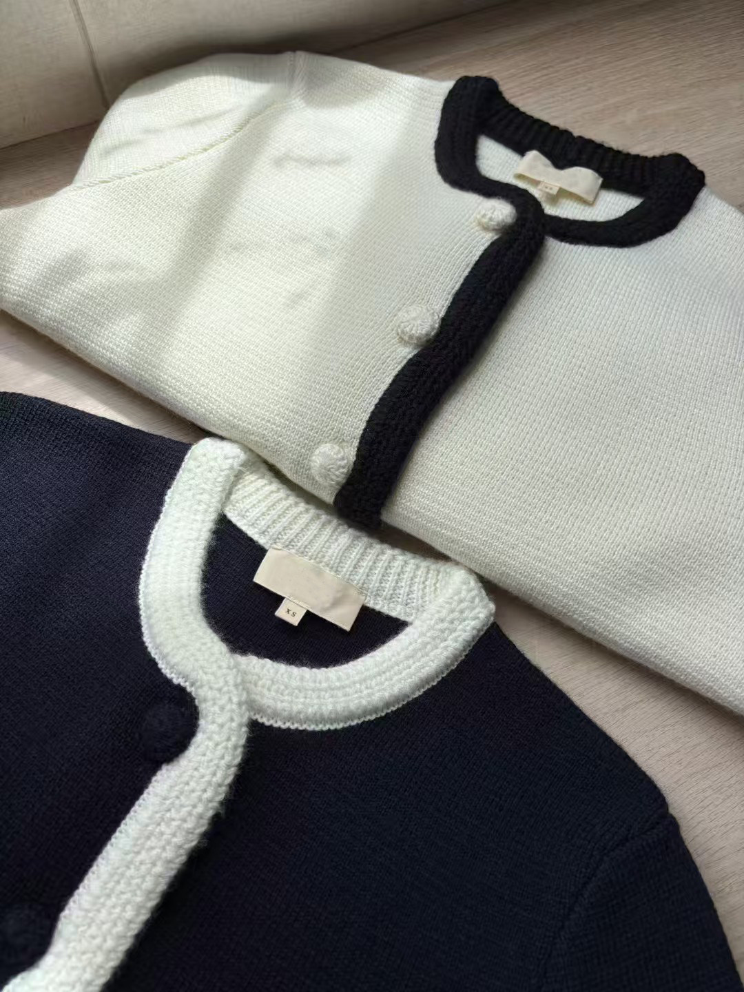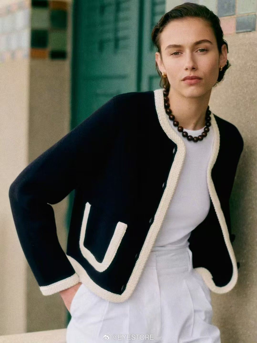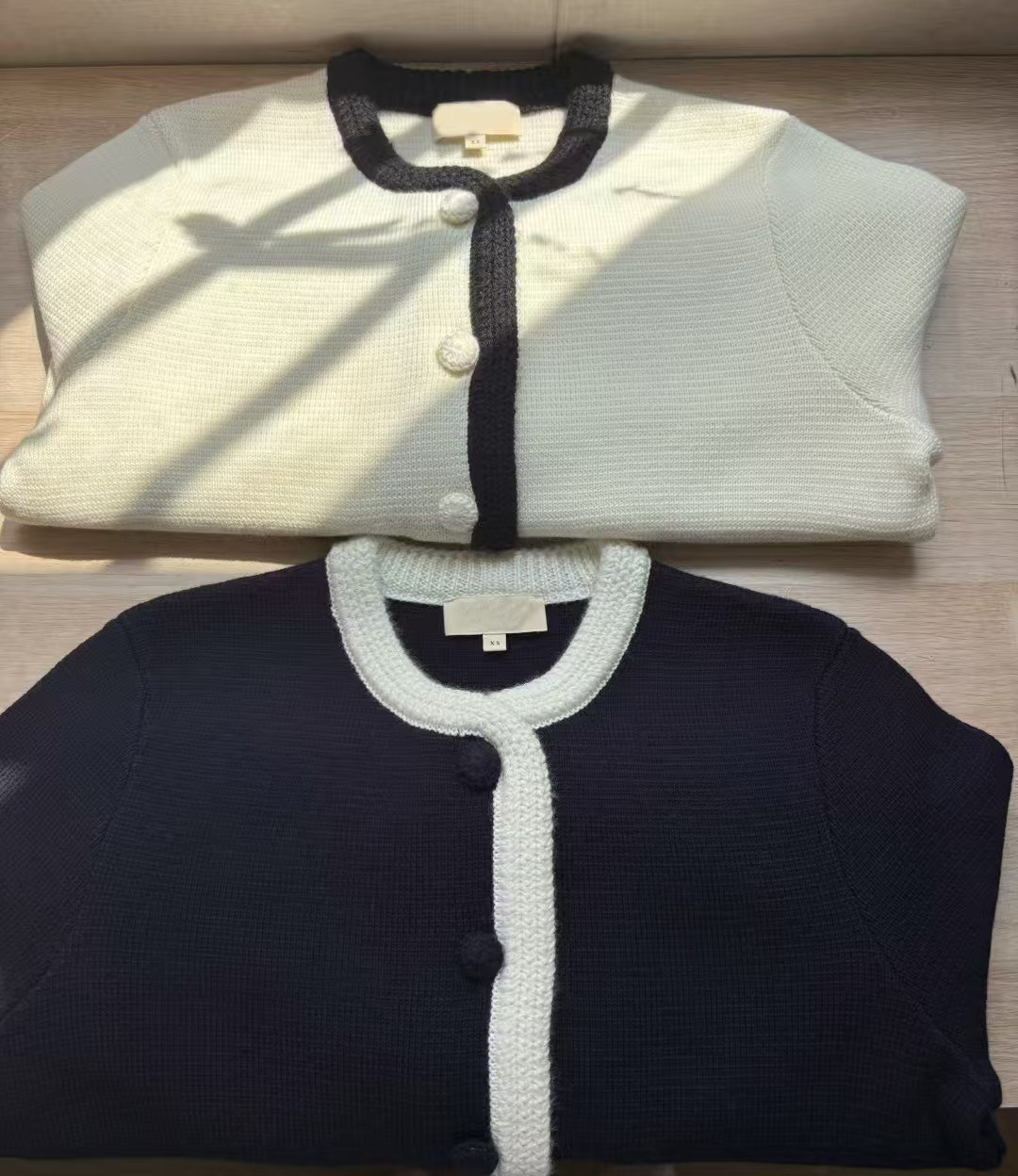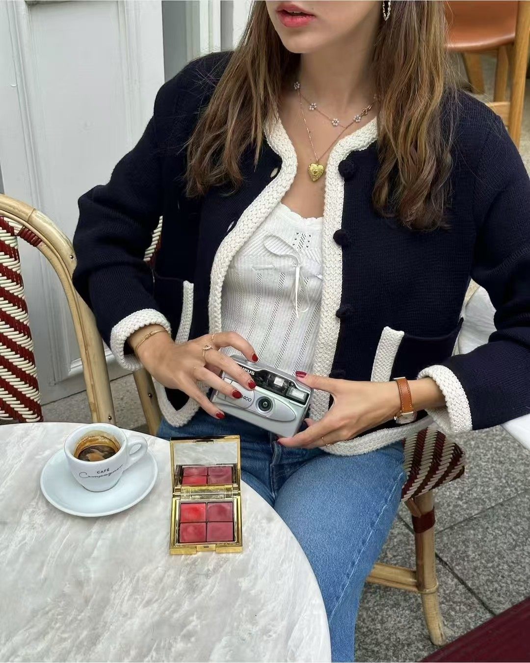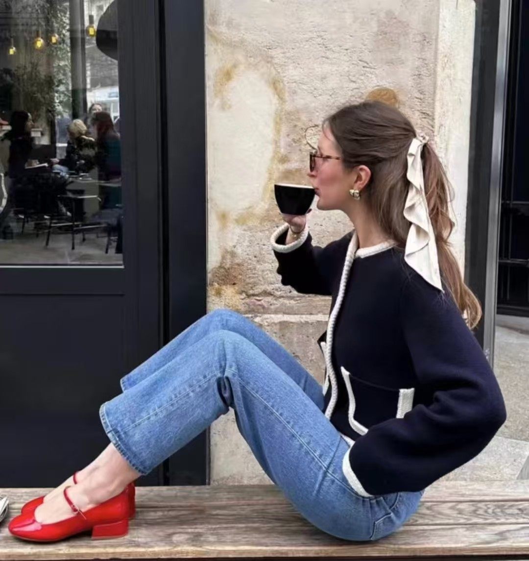 French-Style Autumn and Winter Tweed Pocket Wool-Cotton Blend Jacket with a Three-Dimensional Round Neck, Hand-Crocheted Color-Blocked Short Top