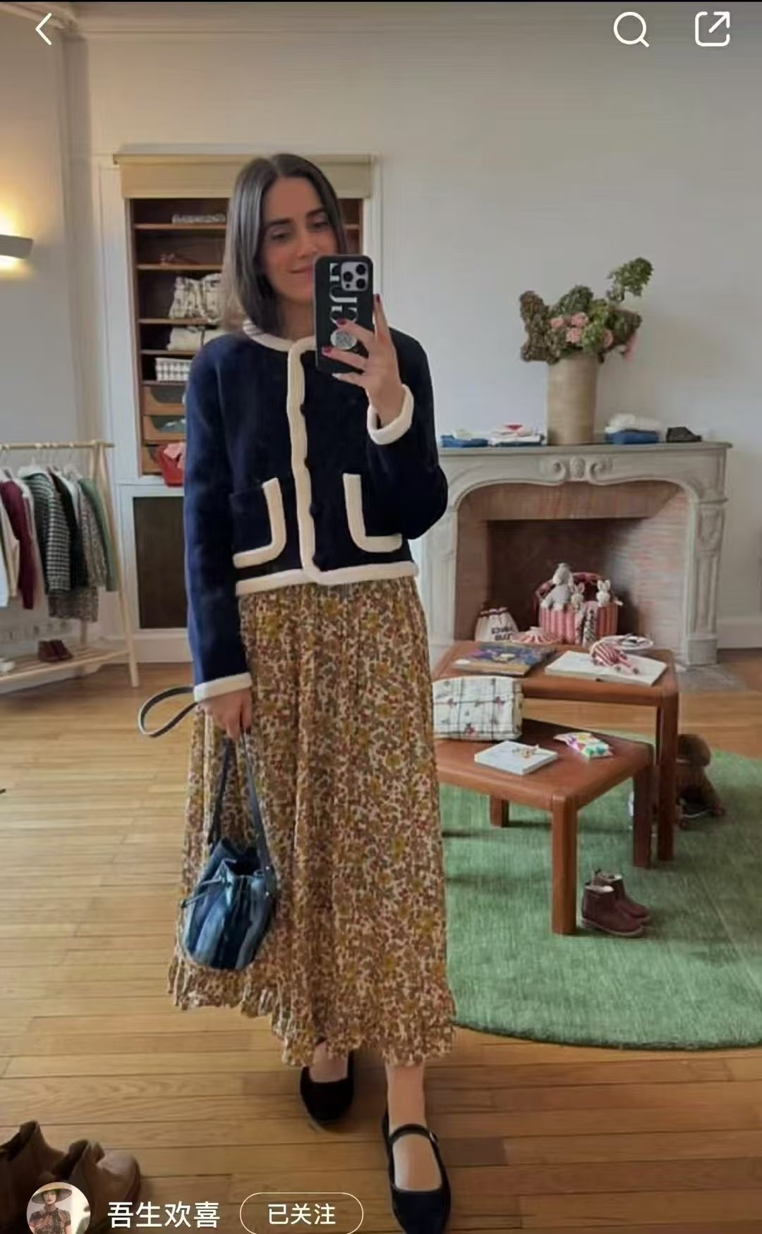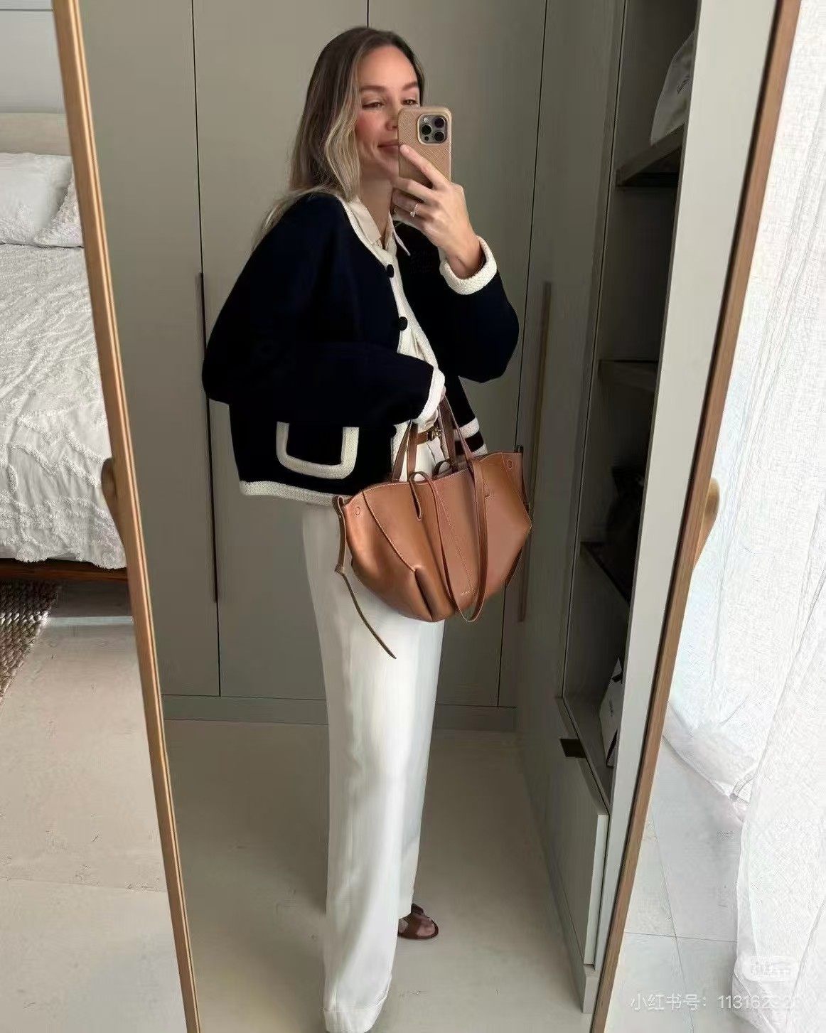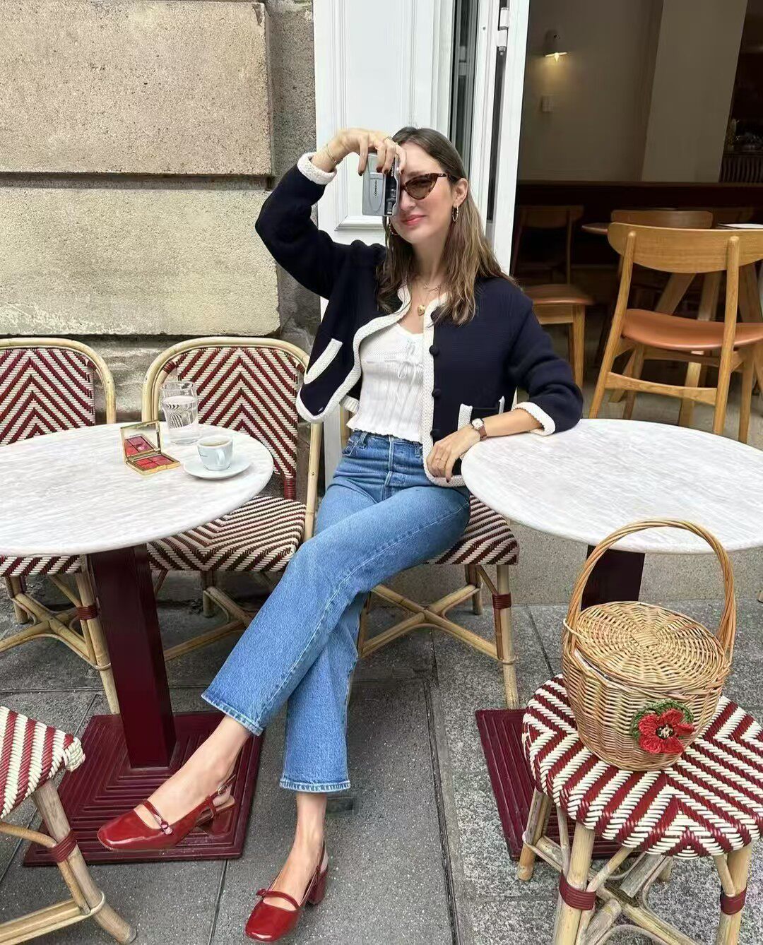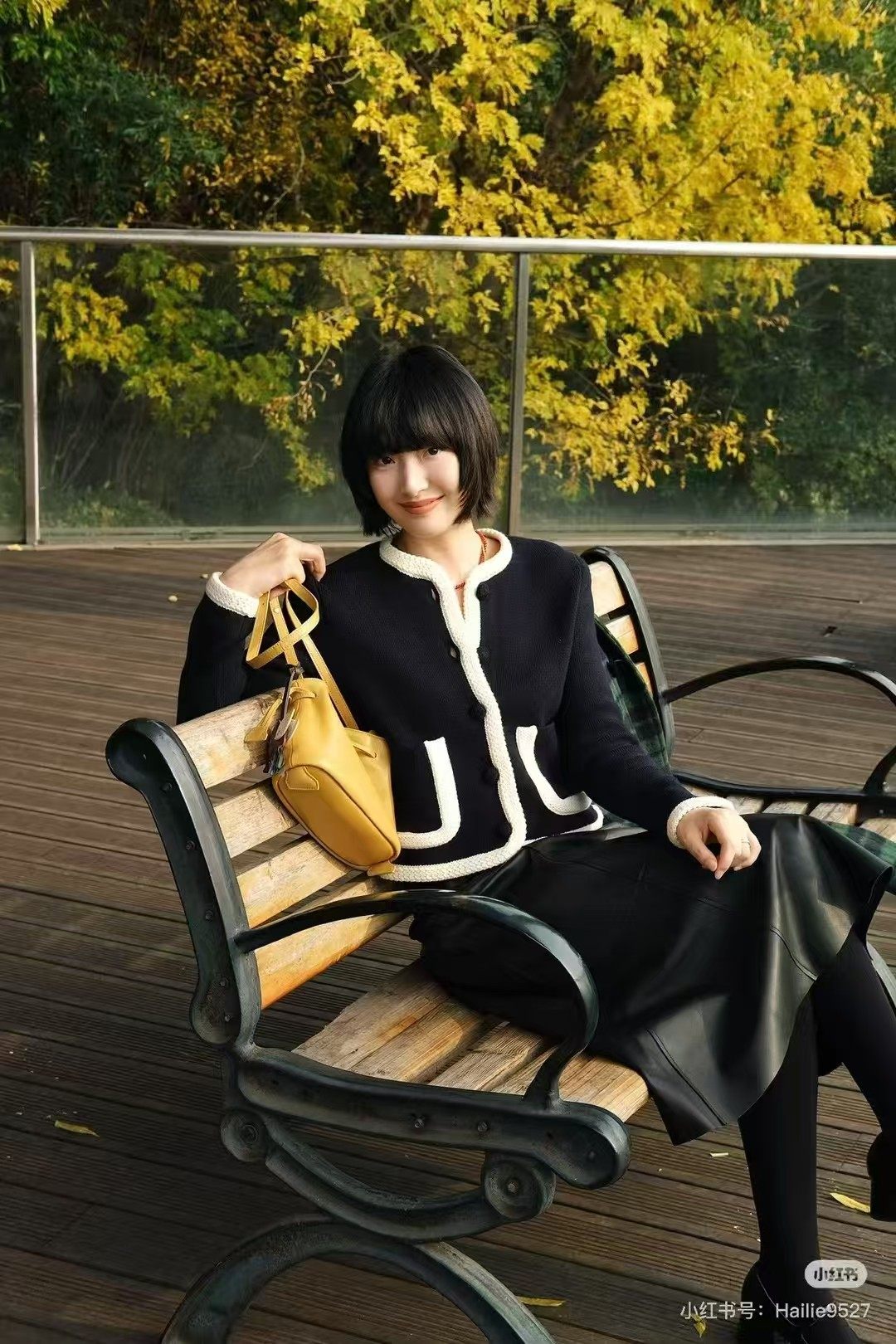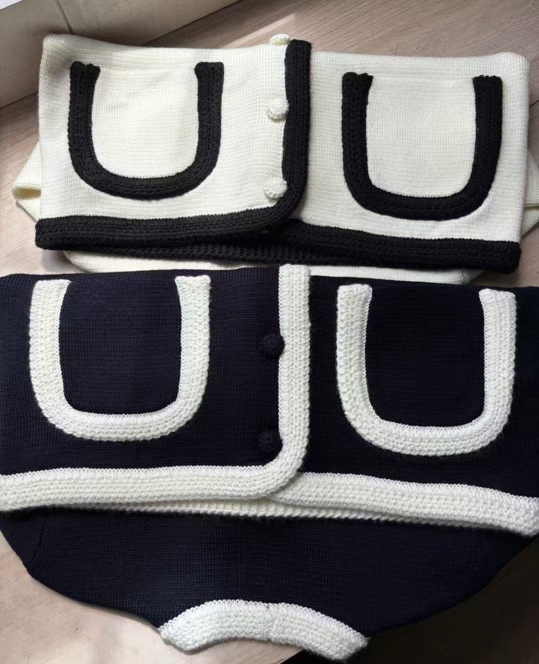 French-Style Autumn and Winter Tweed Pocket Wool-Cotton Blend Jacket with a Three-Dimensional Round Neck, Hand-Crocheted Color-Blocked Short Top