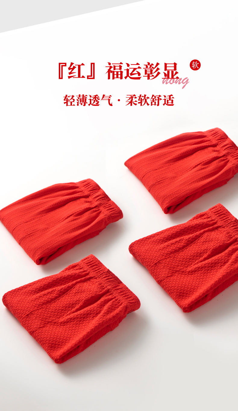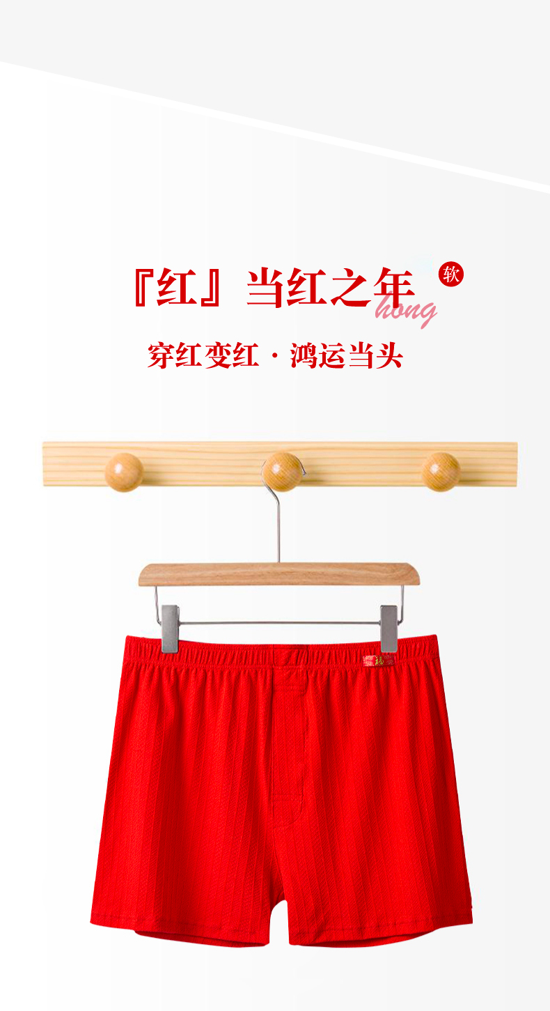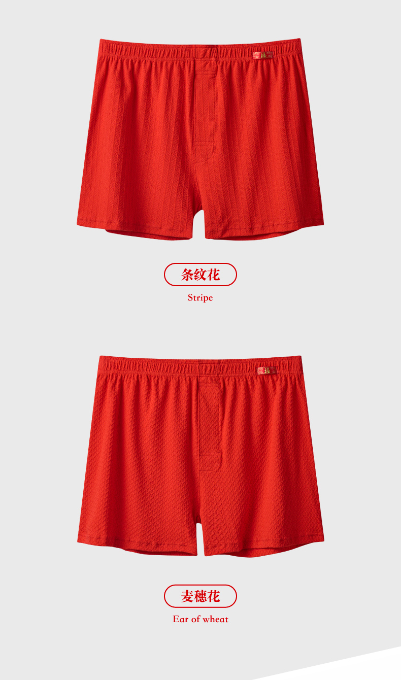 Red Men's Boxer Briefs for the Year of Birth, Loose Fit, Pure Cotton, Comfortable Short Sleep Pants, Large Size, Breathable Four-Corner Briefs