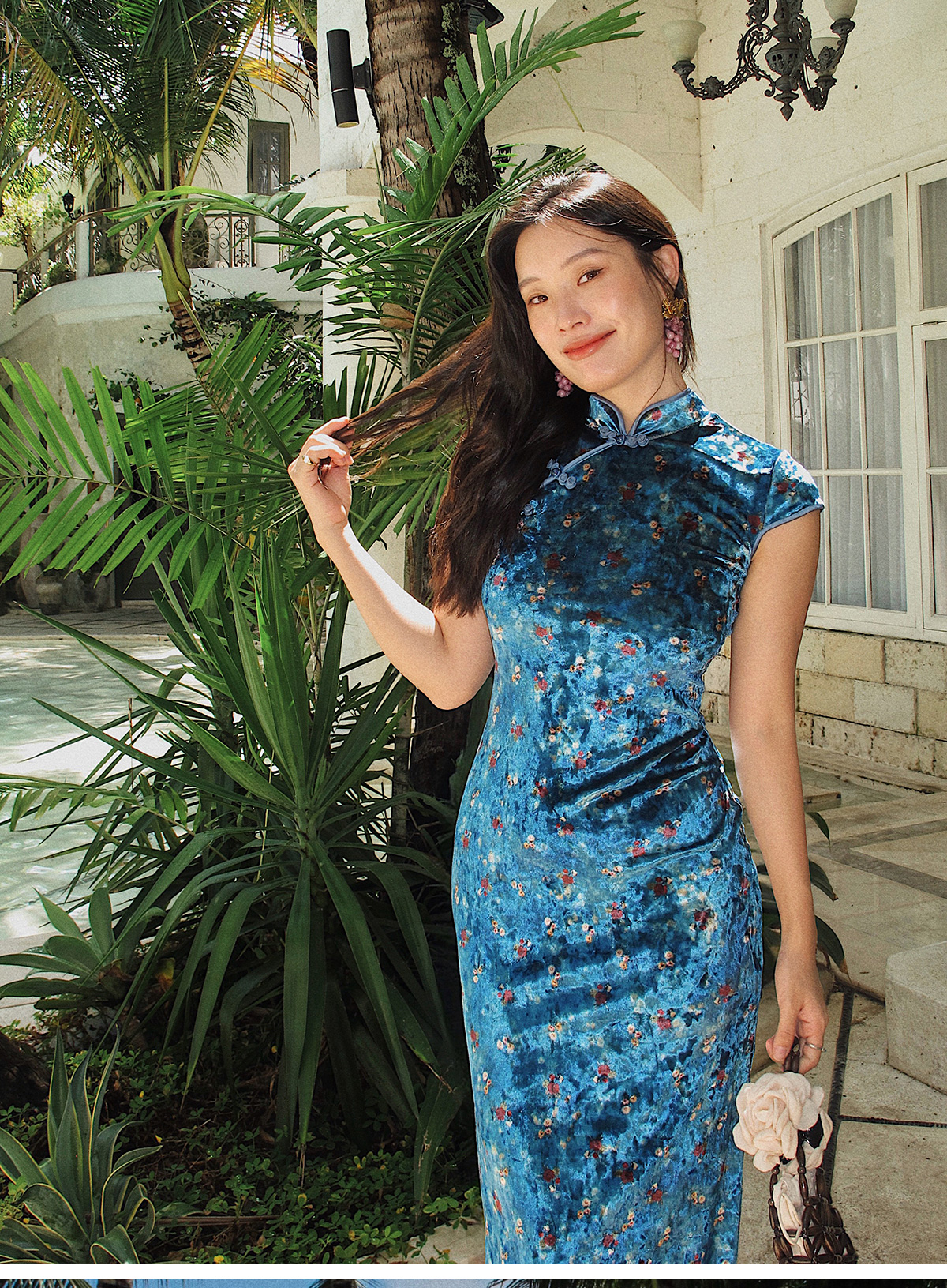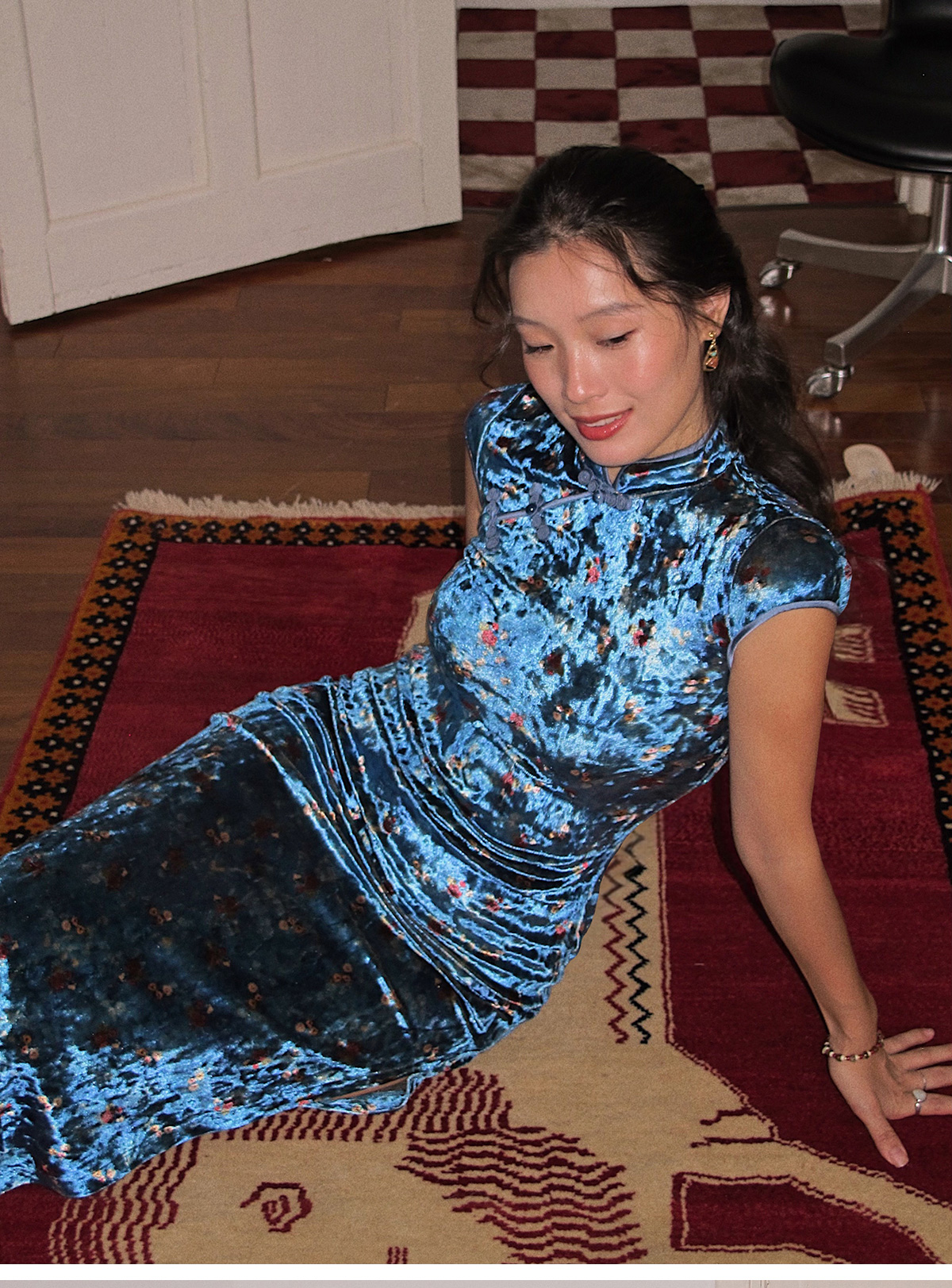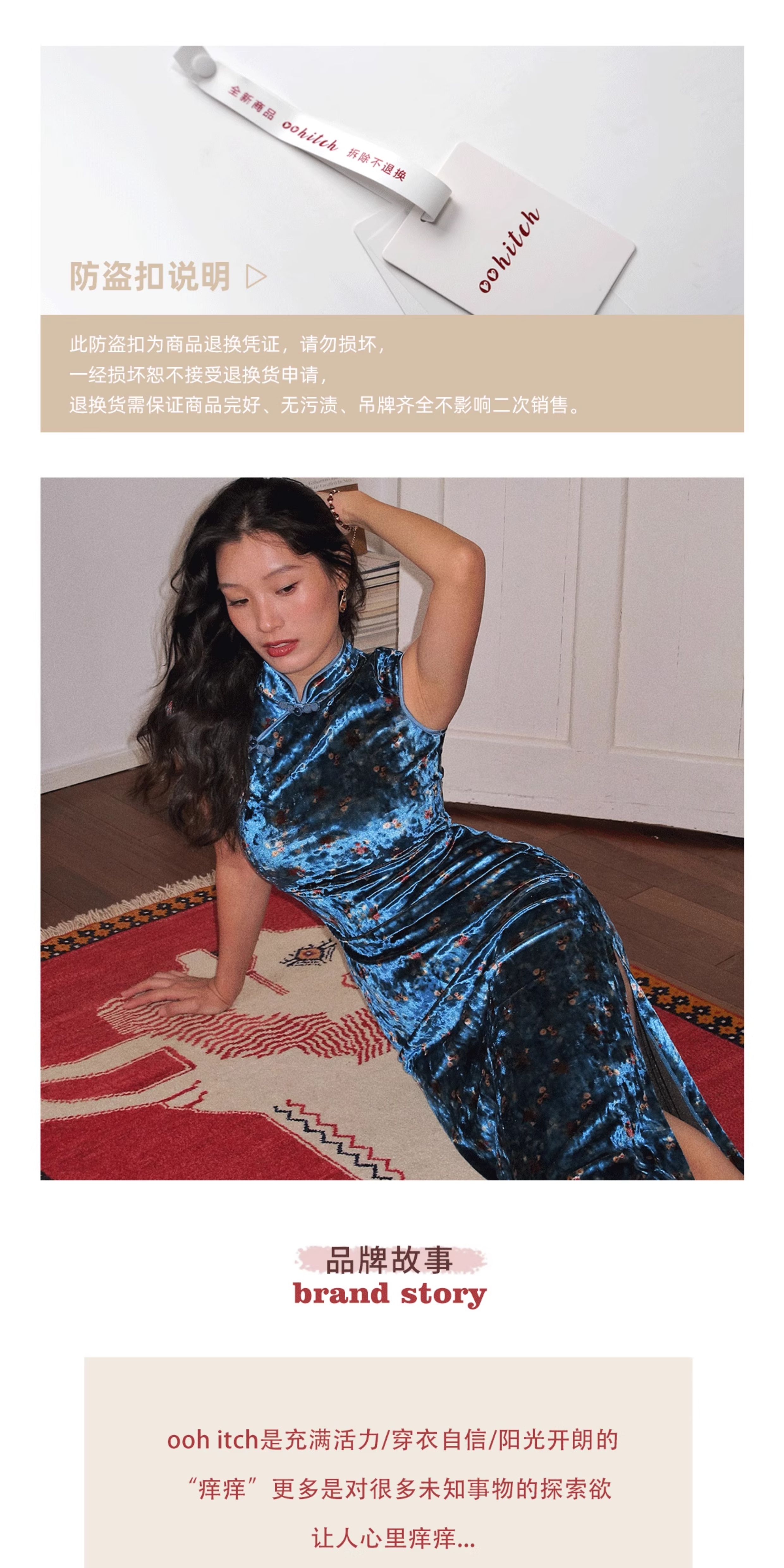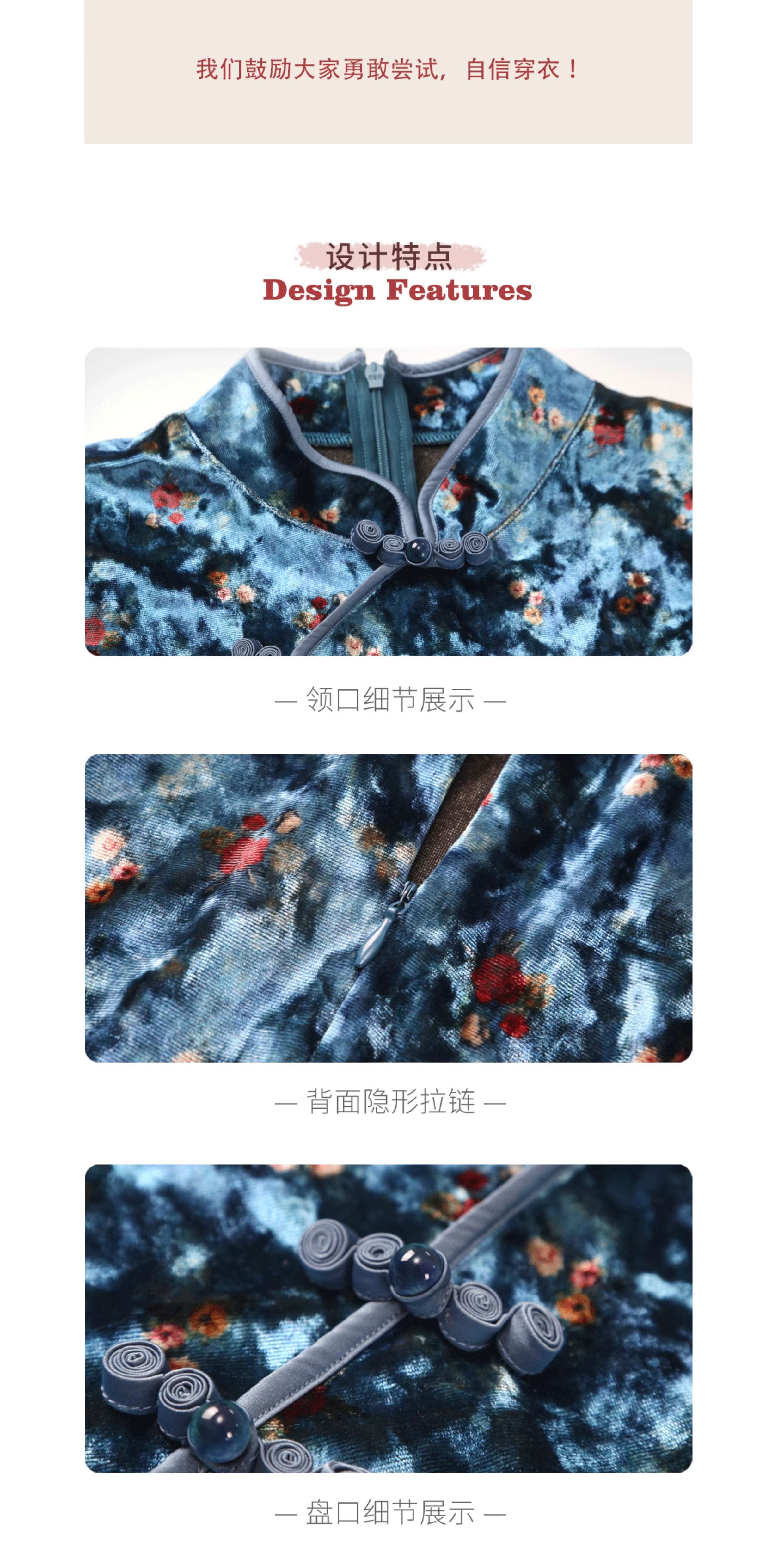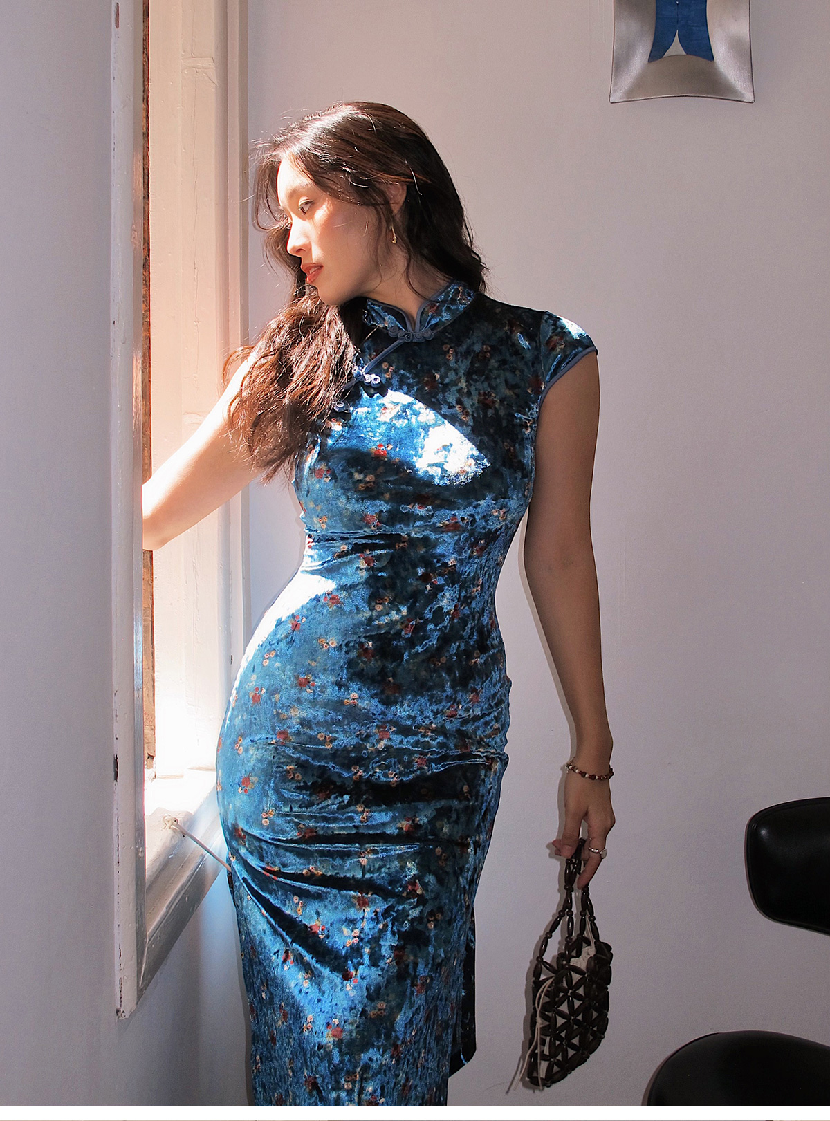 Ooh Itch Itch's New Chinese-Style Diamond Velvet Slim-Fitting Cheongsam Dress with Slit
