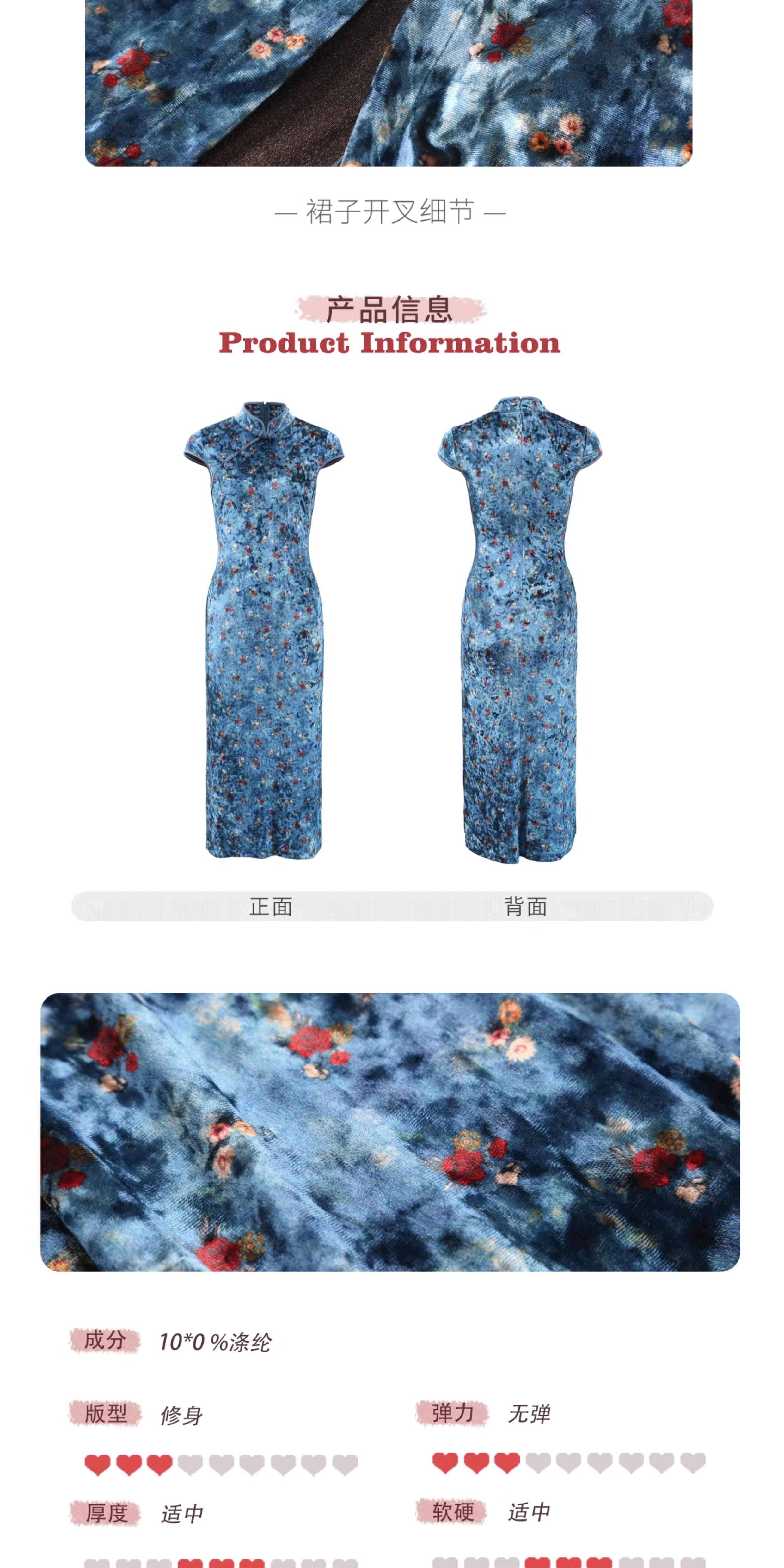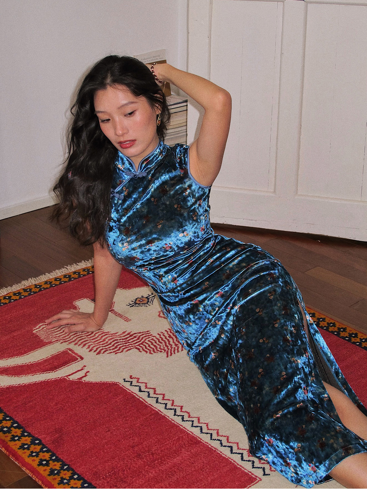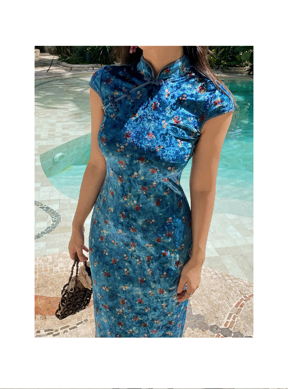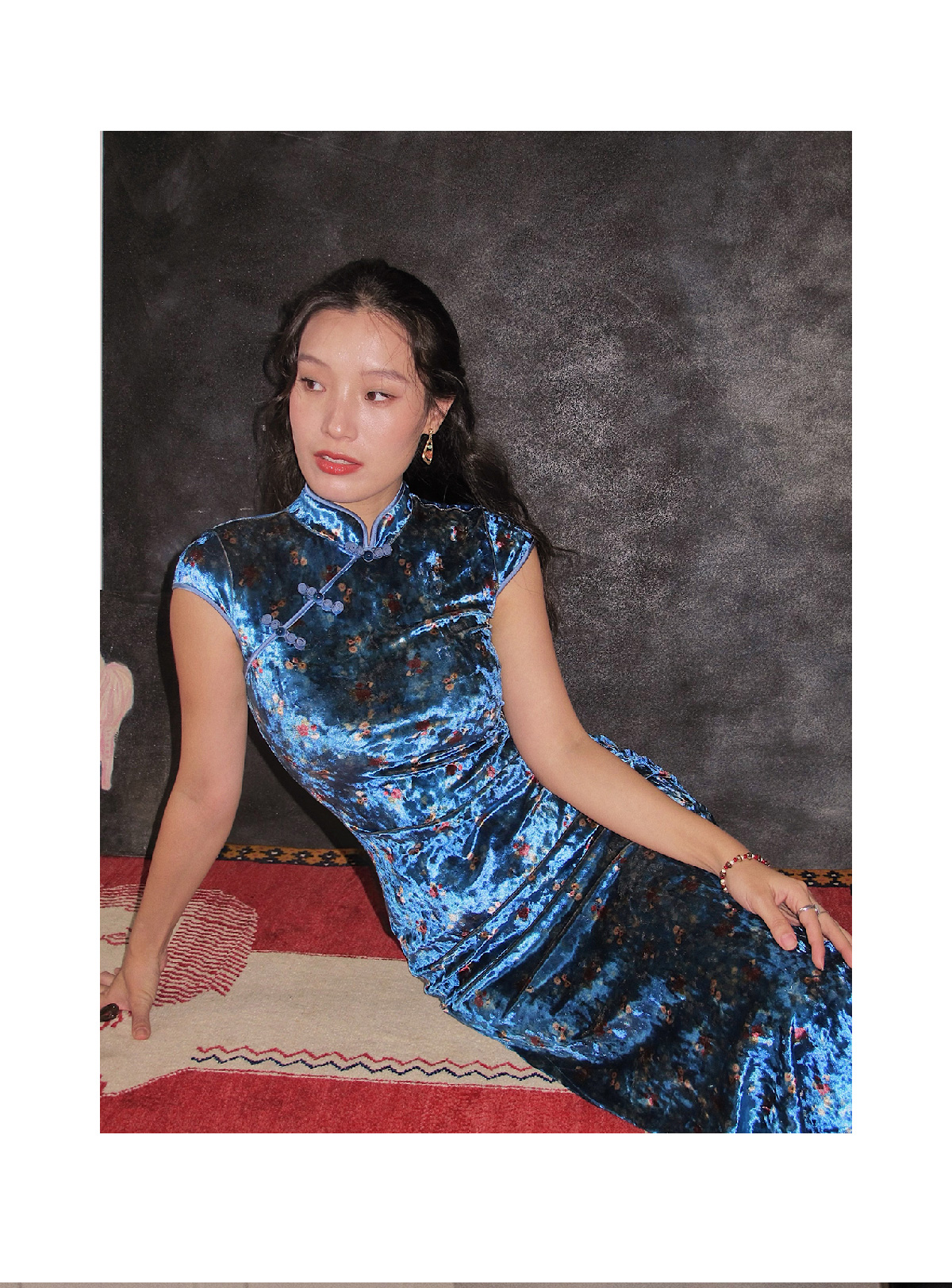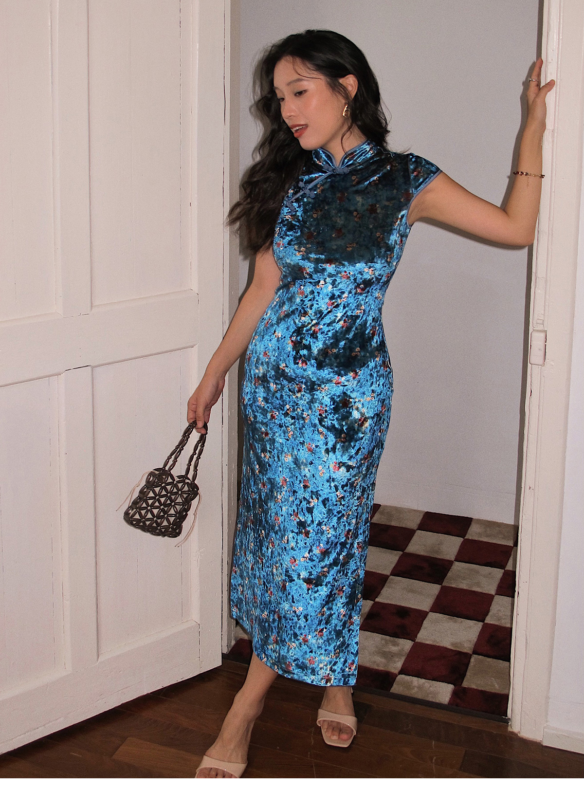 Ooh Itch Itch's New Chinese-Style Diamond Velvet Slim-Fitting Cheongsam Dress with Slit