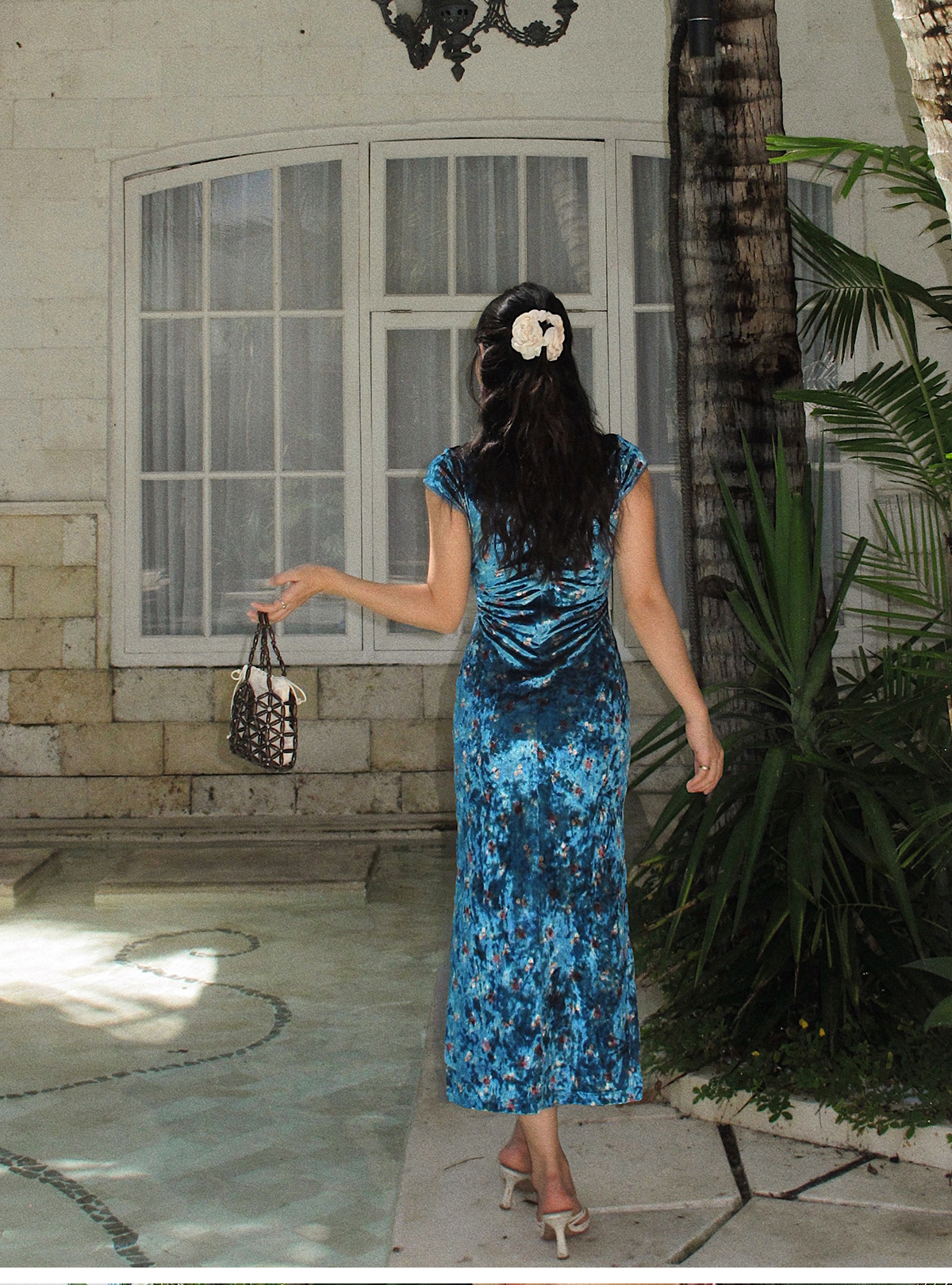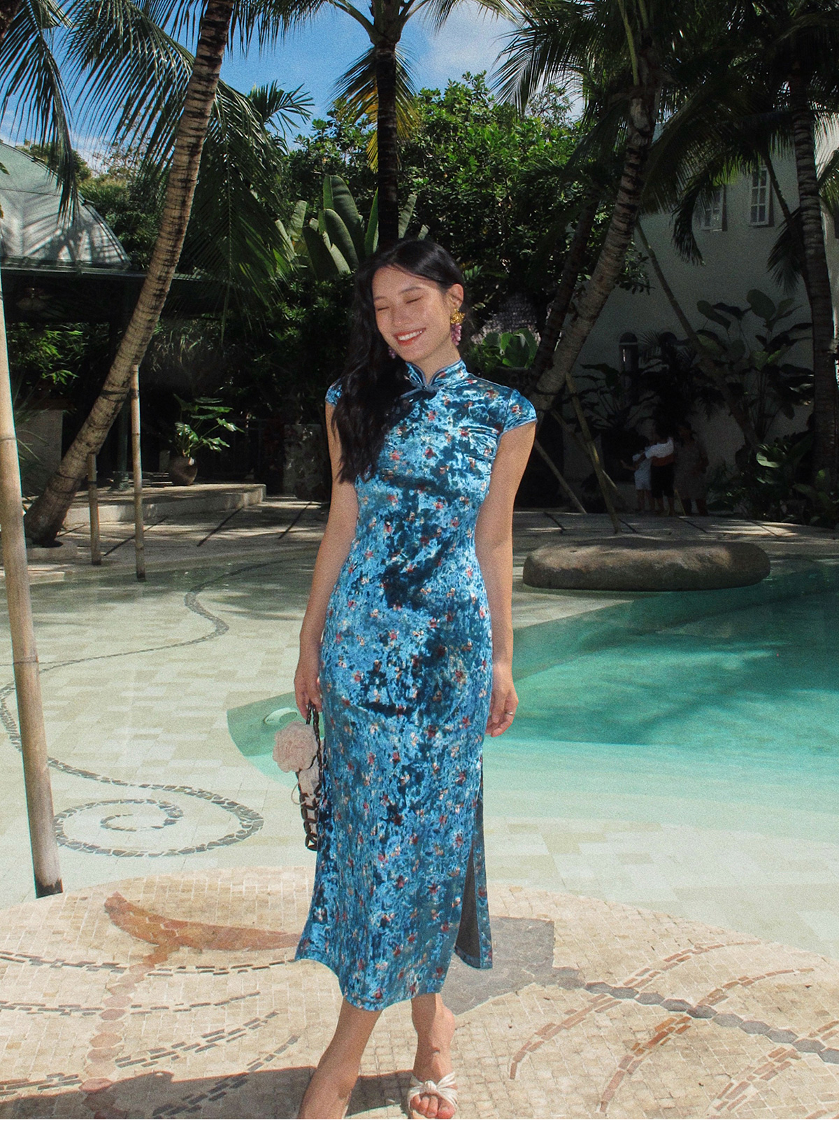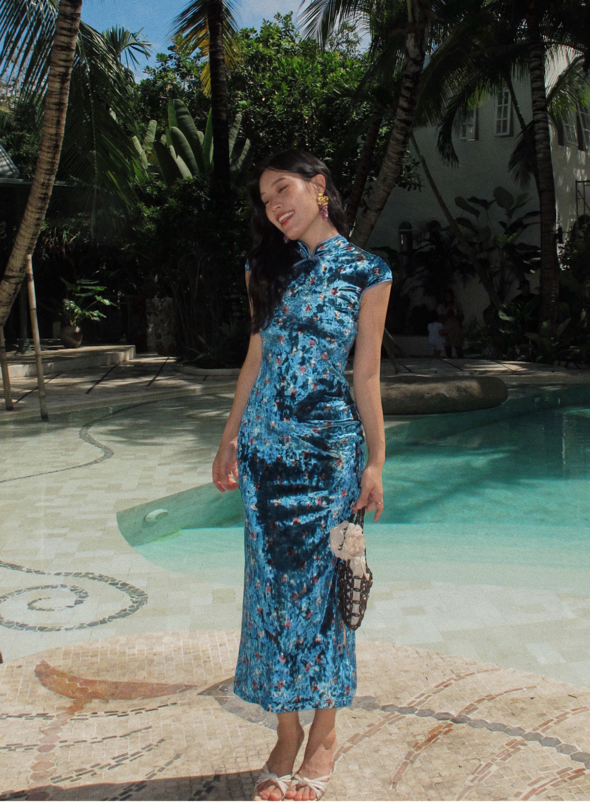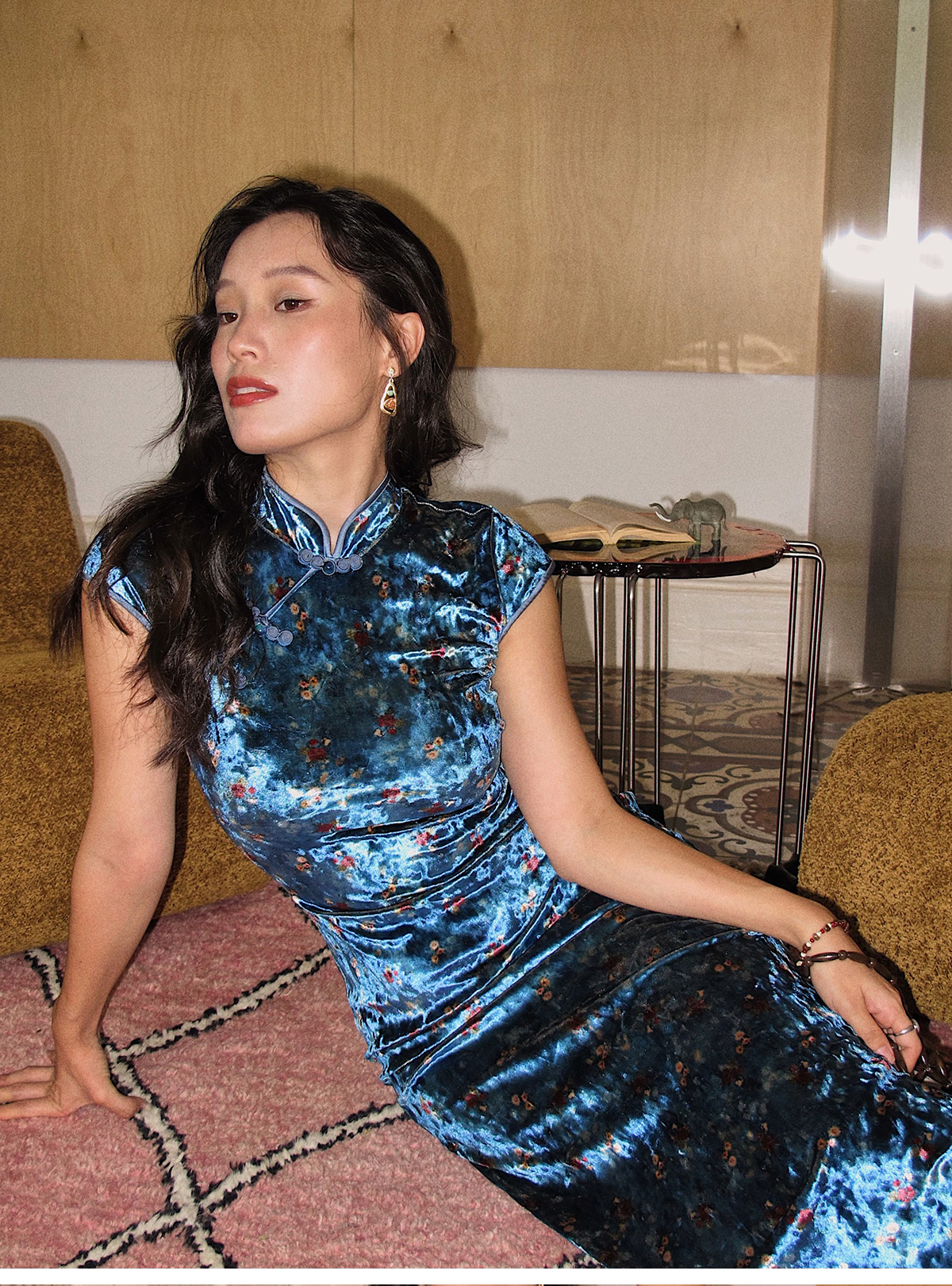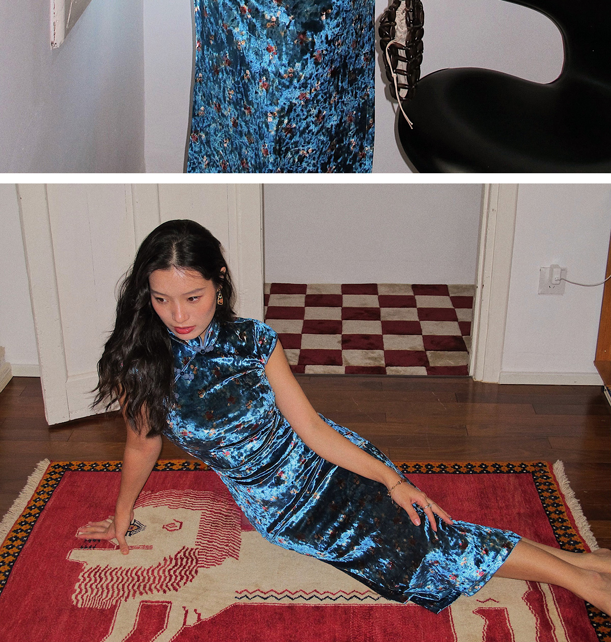 Ooh Itch Itch's New Chinese-Style Diamond Velvet Slim-Fitting Cheongsam Dress with Slit