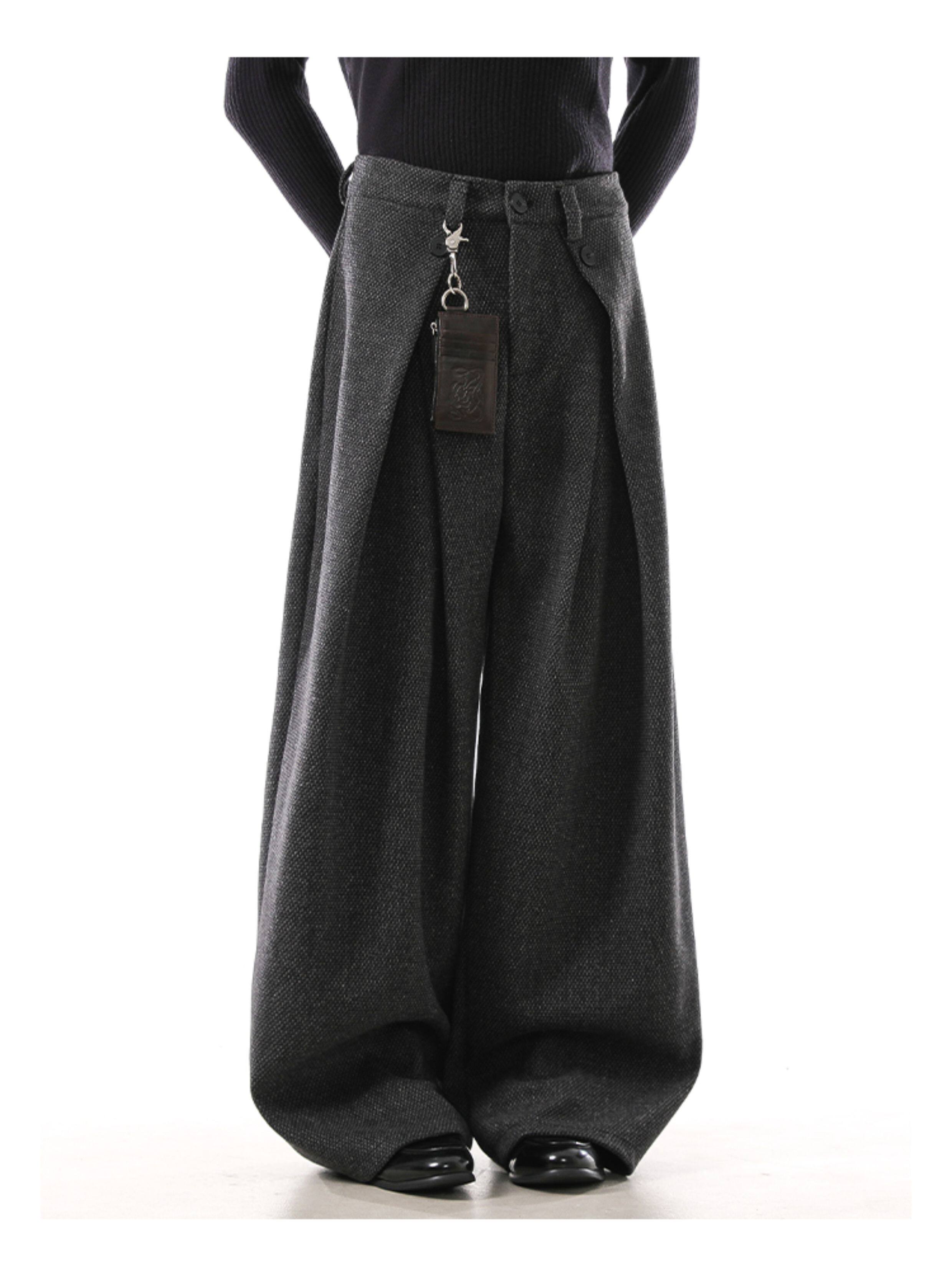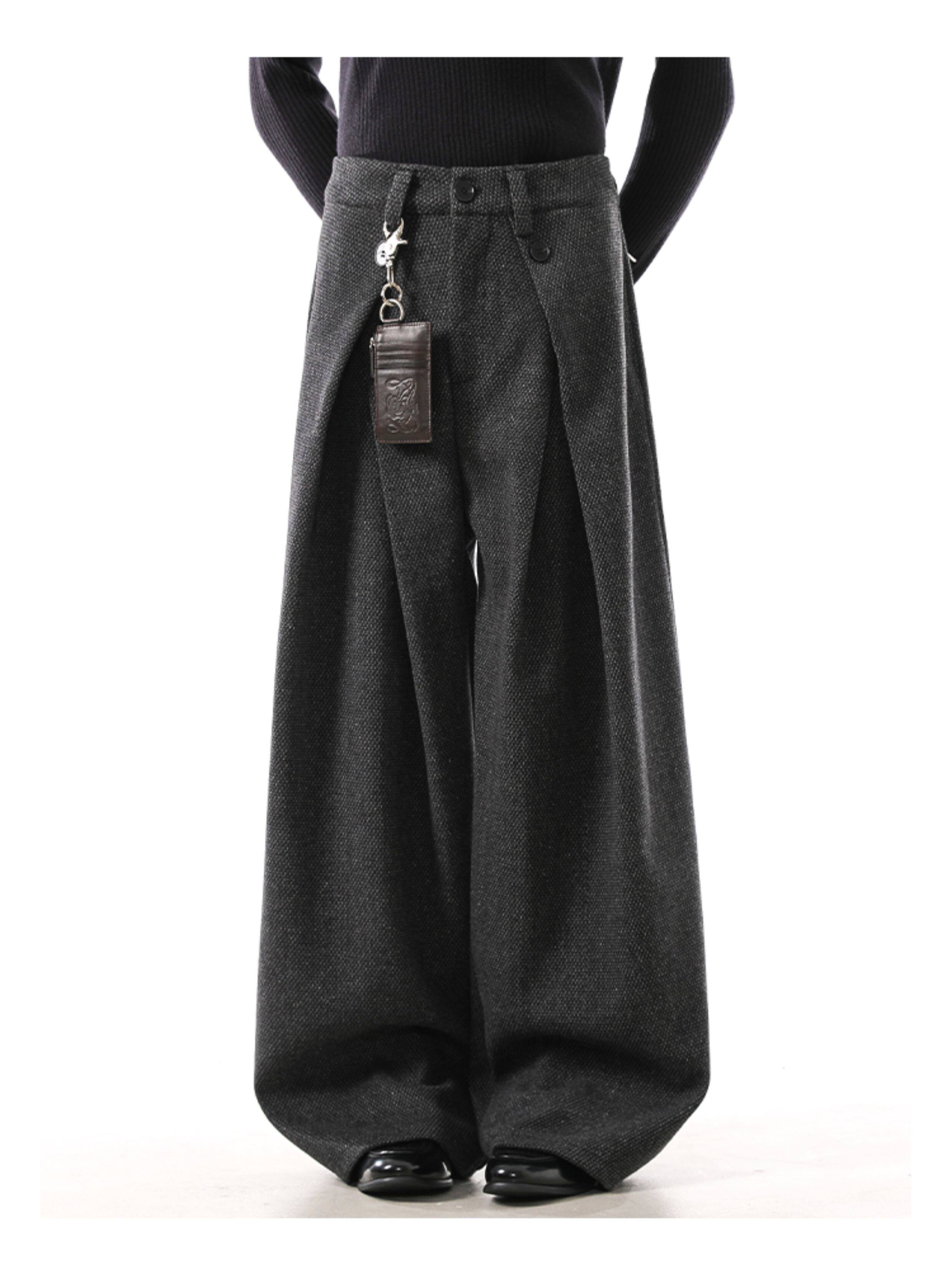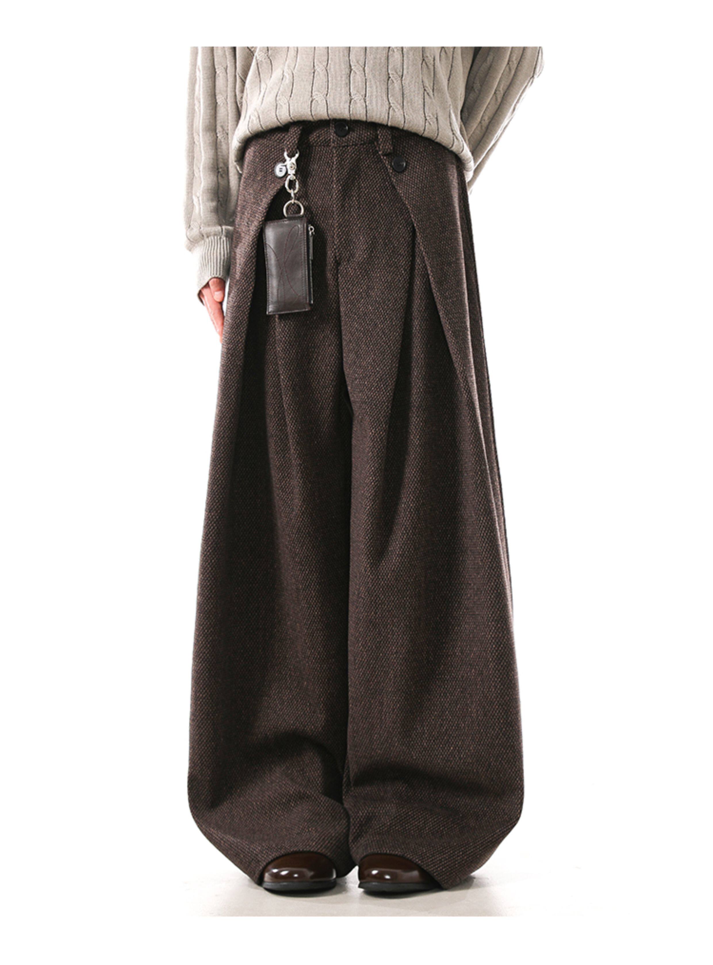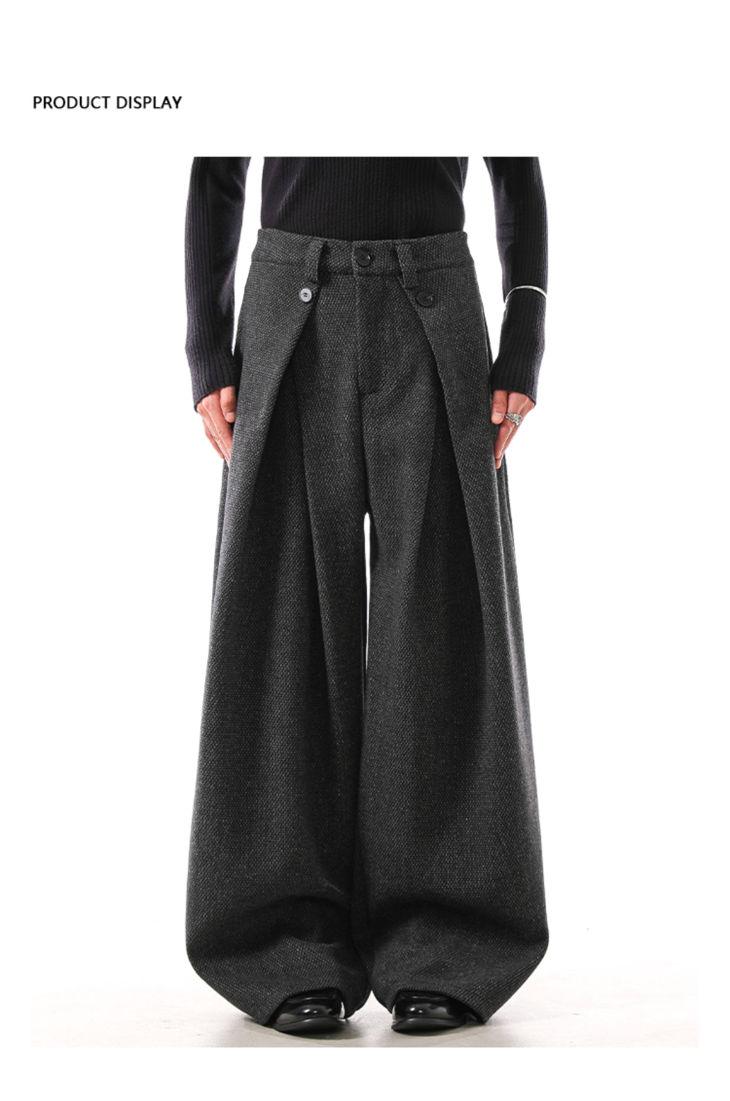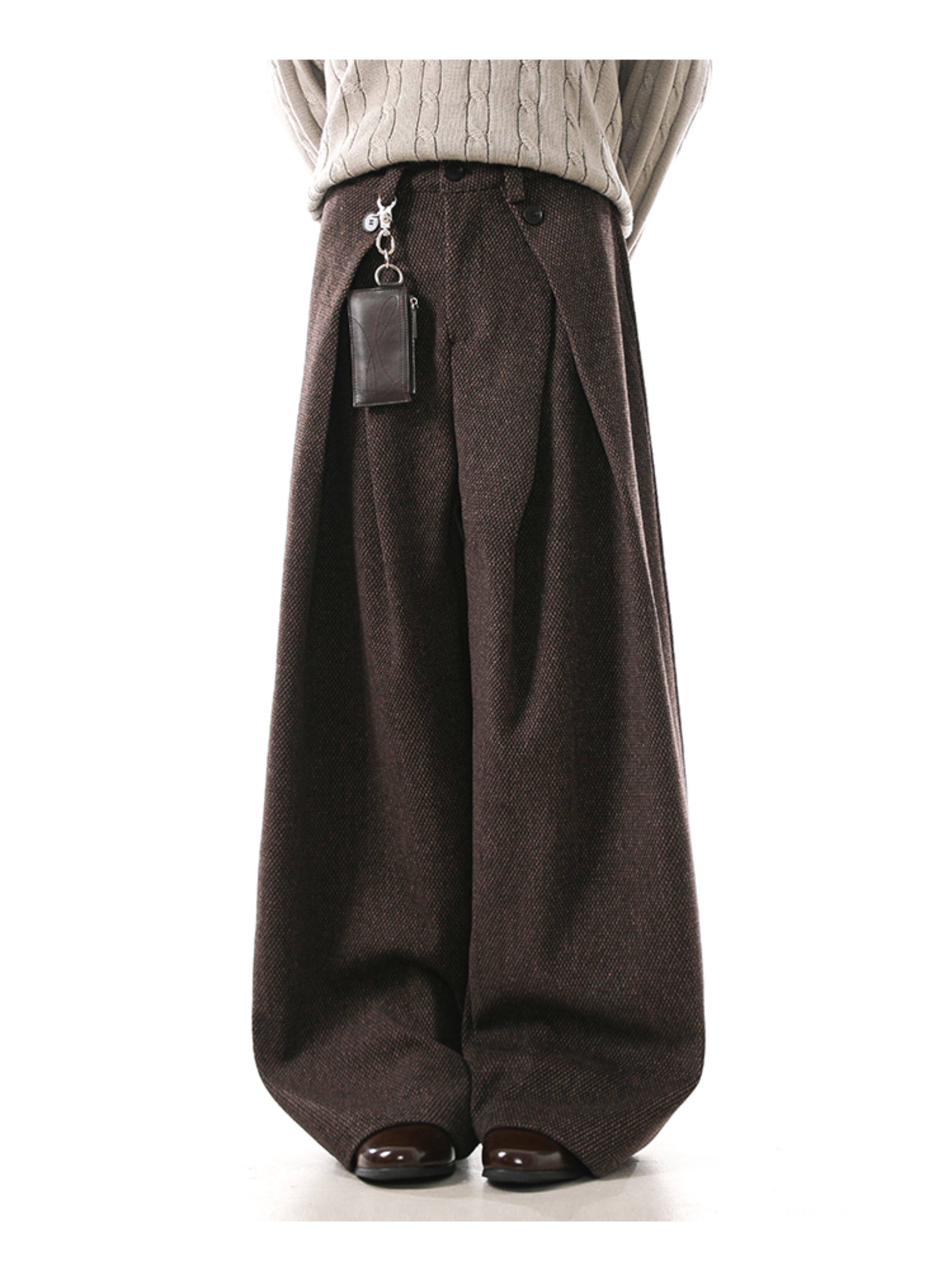 Blankin Old Money Style High-End Pleated Thick Suit Pants for Men and Women, Winter Warm A-Line Wide-Leg Long Pants