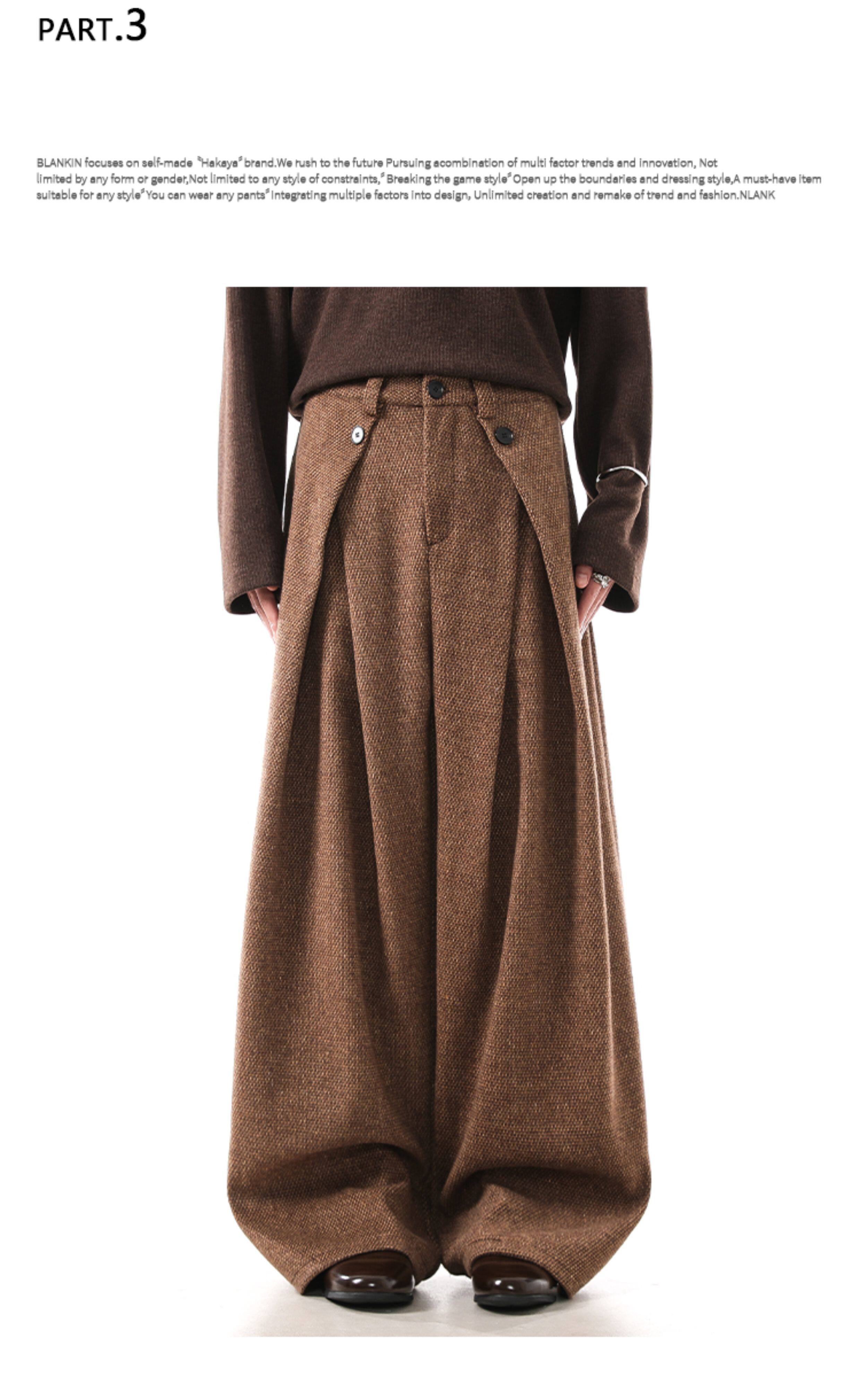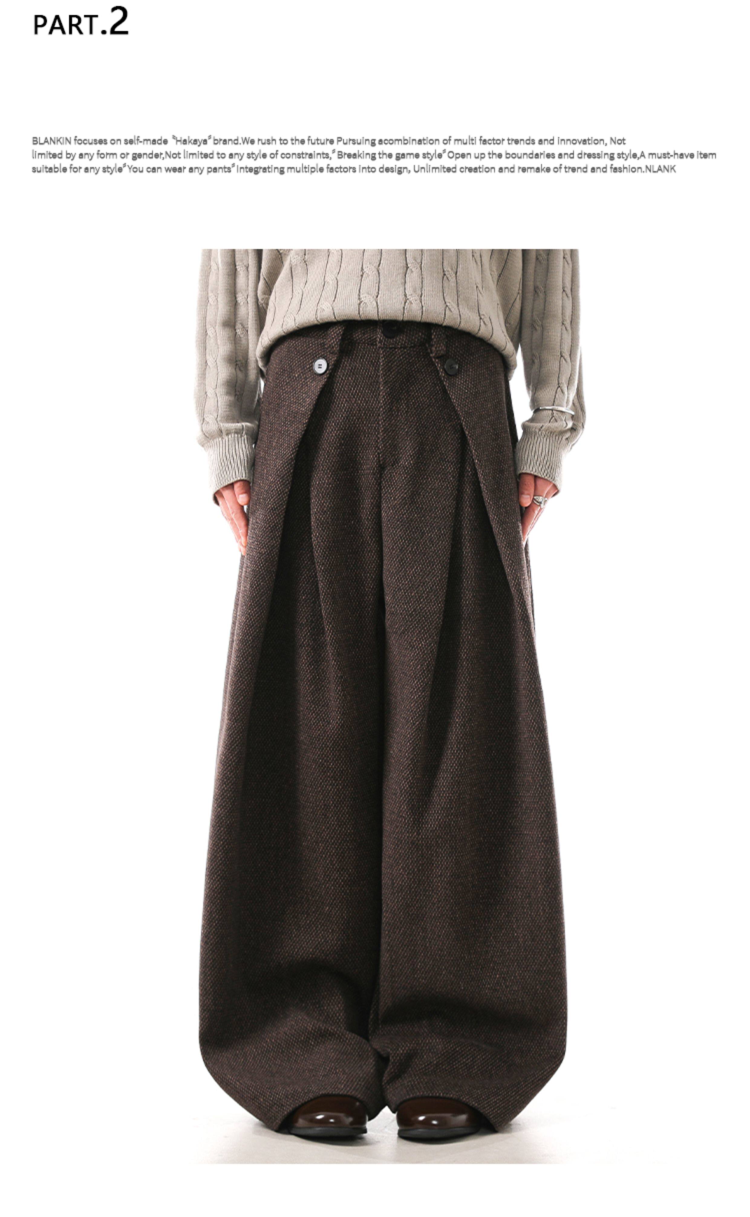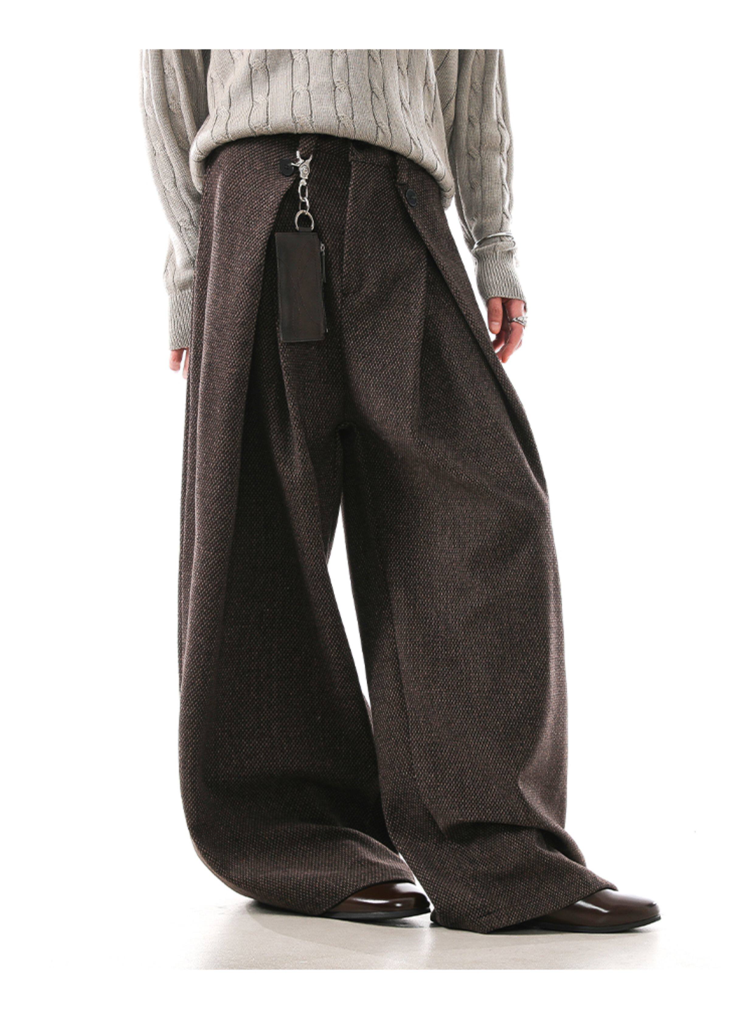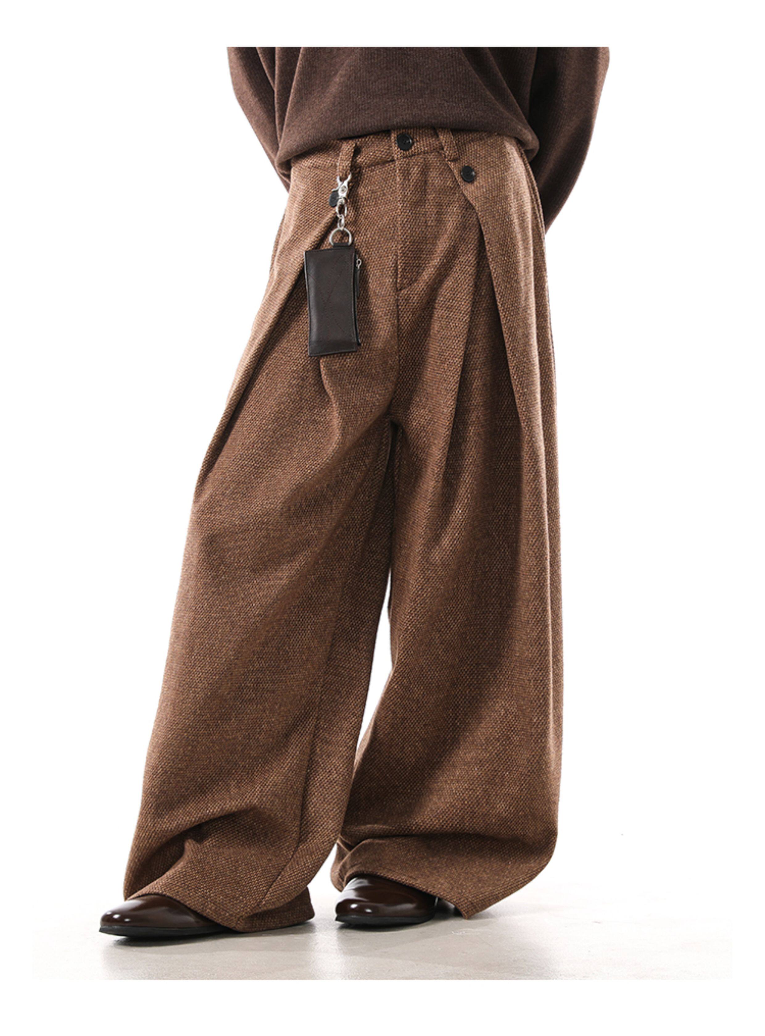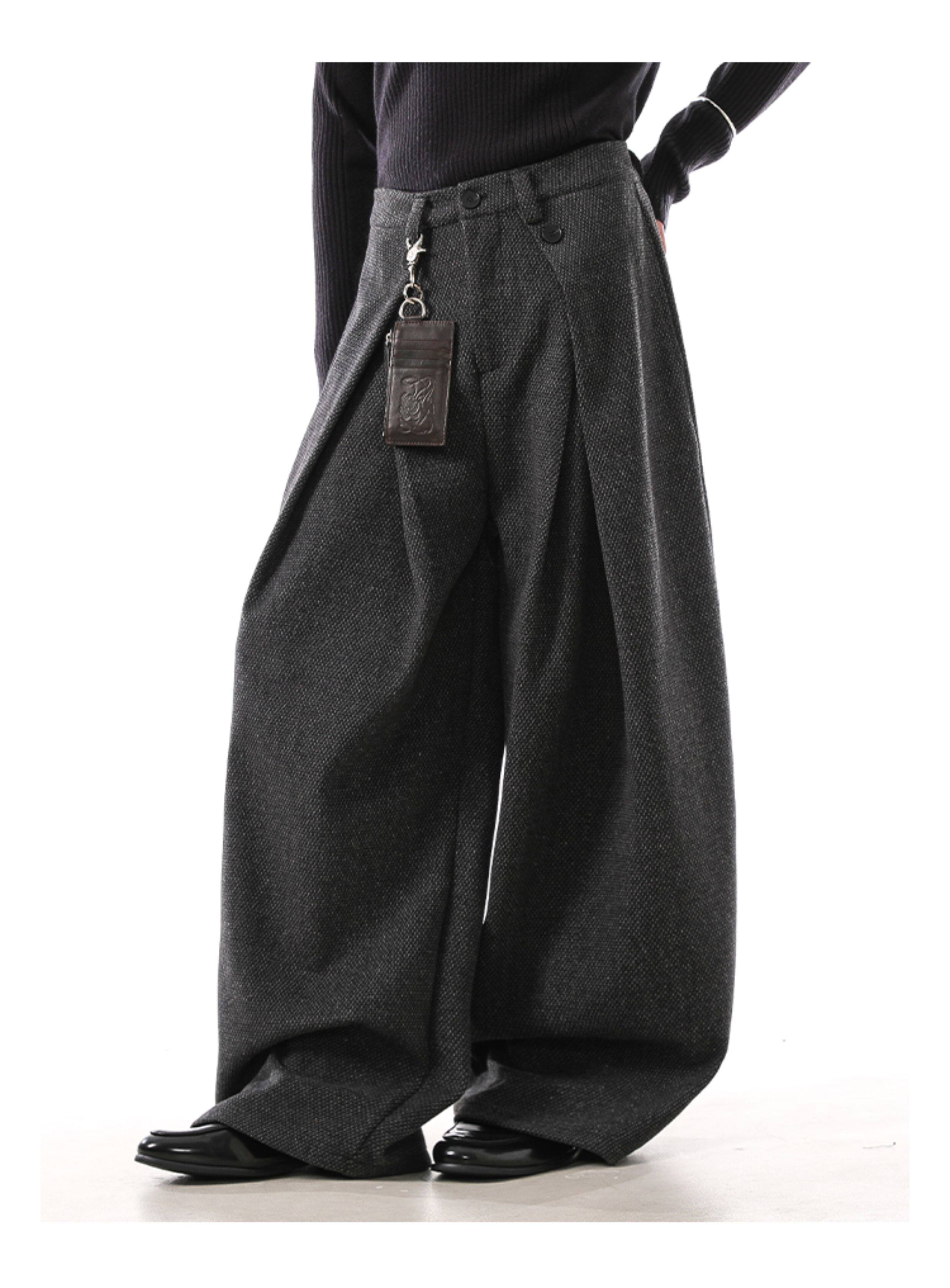 Blankin Old Money Style High-End Pleated Thick Suit Pants for Men and Women, Winter Warm A-Line Wide-Leg Long Pants