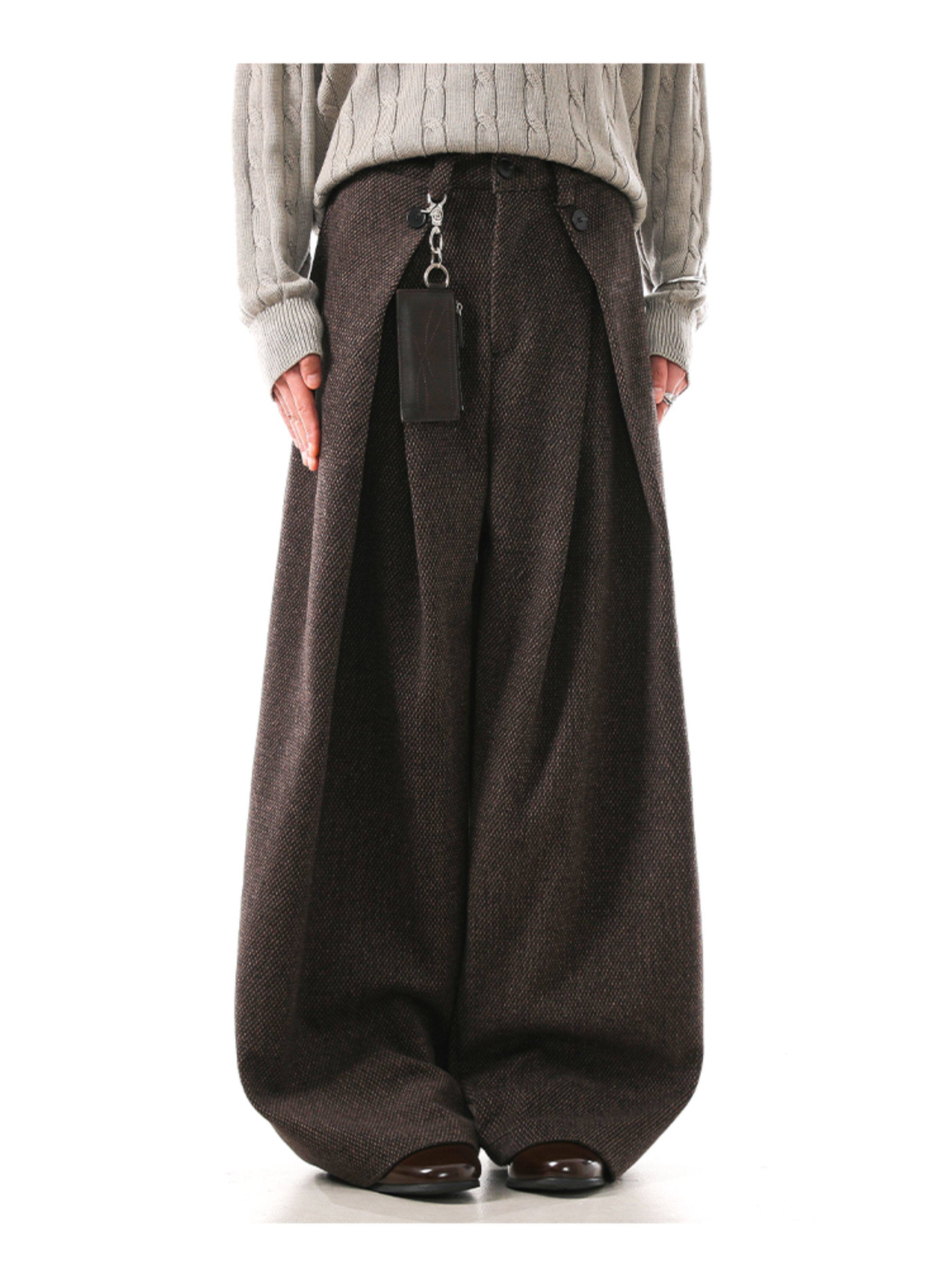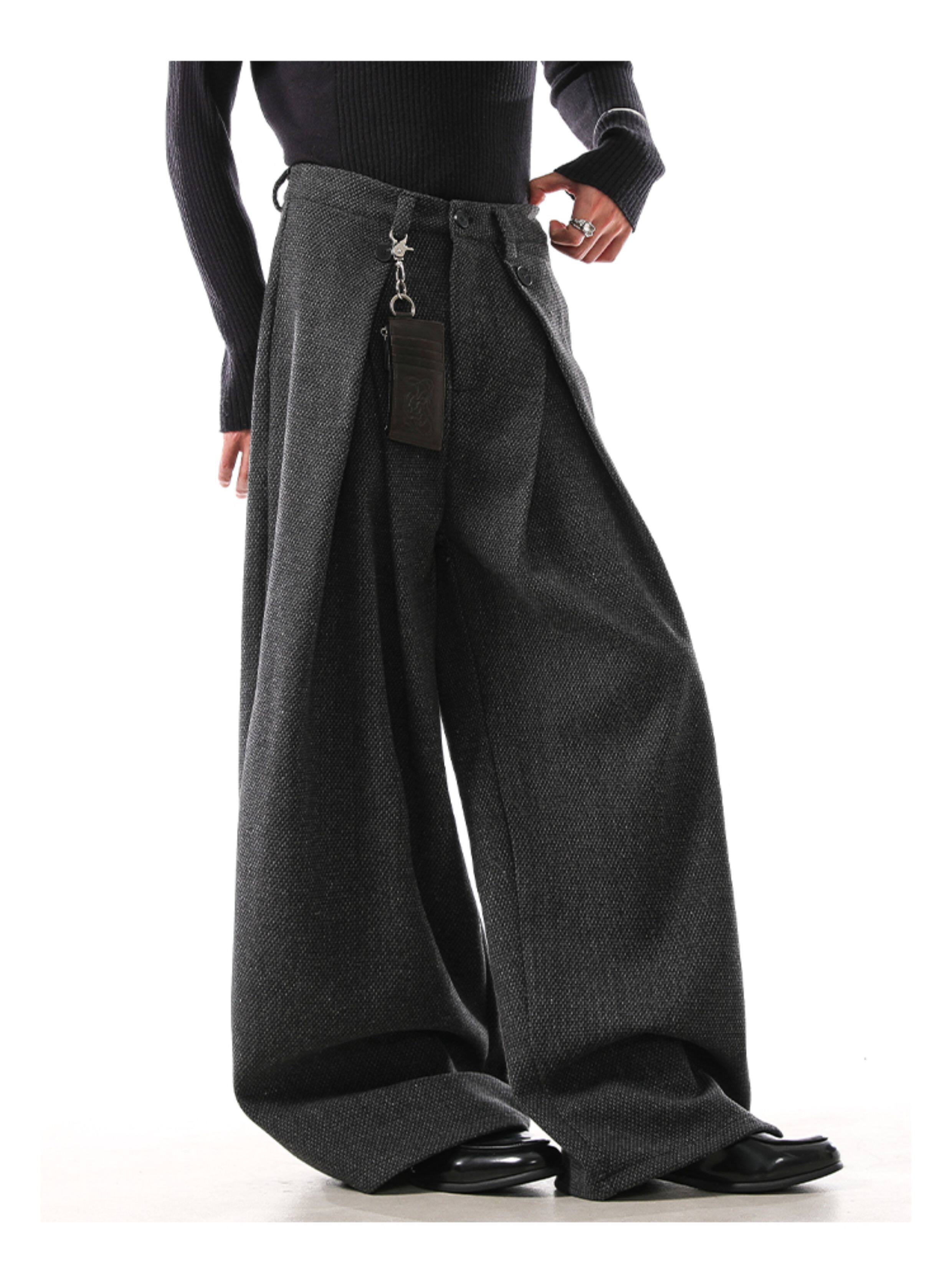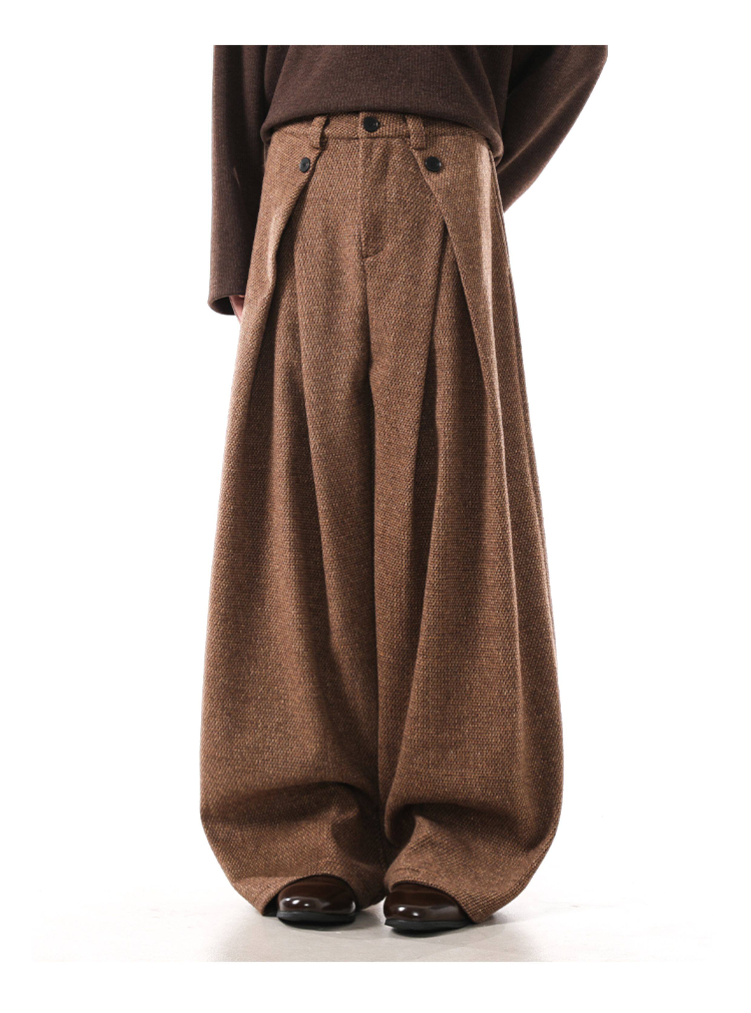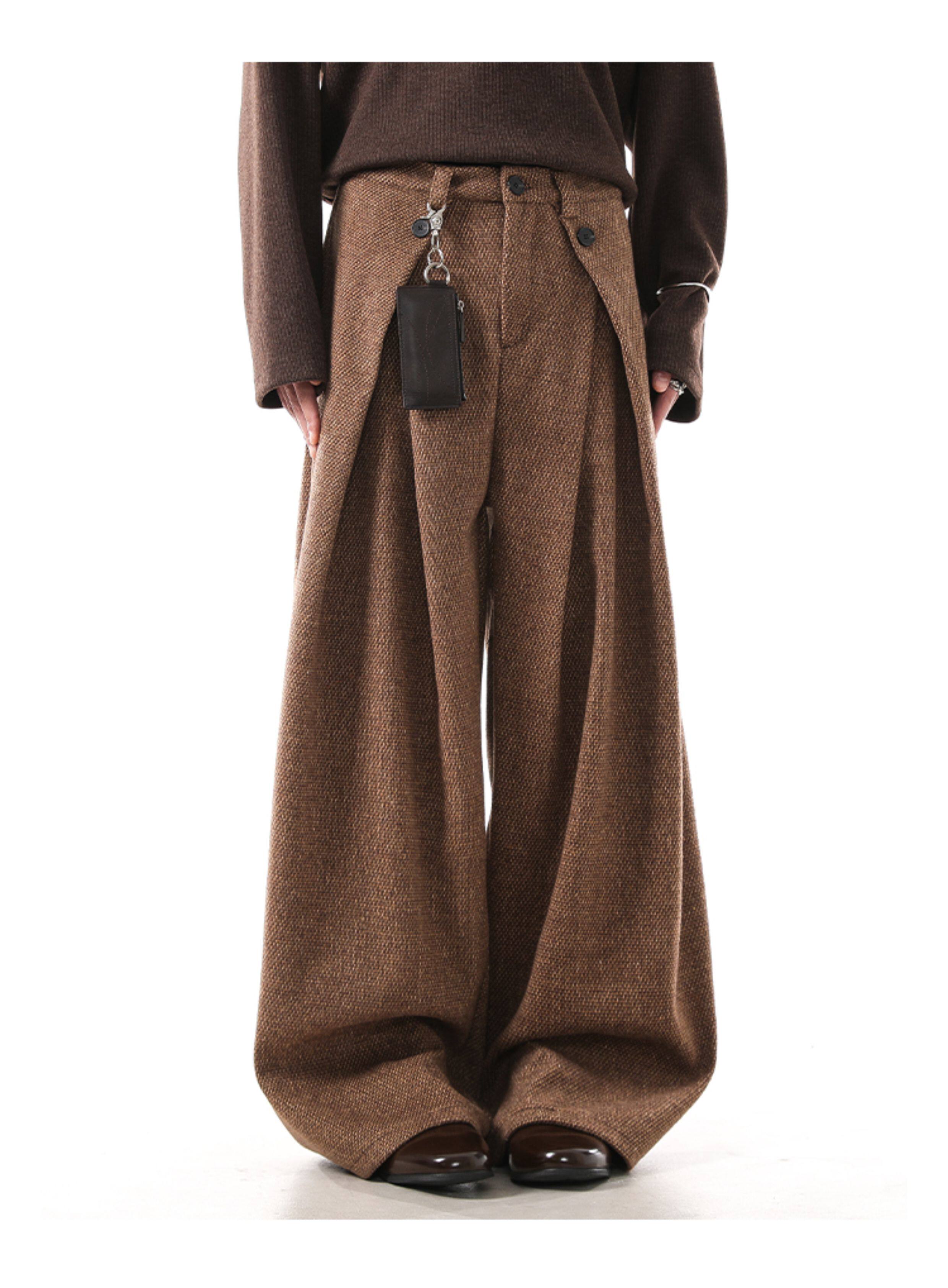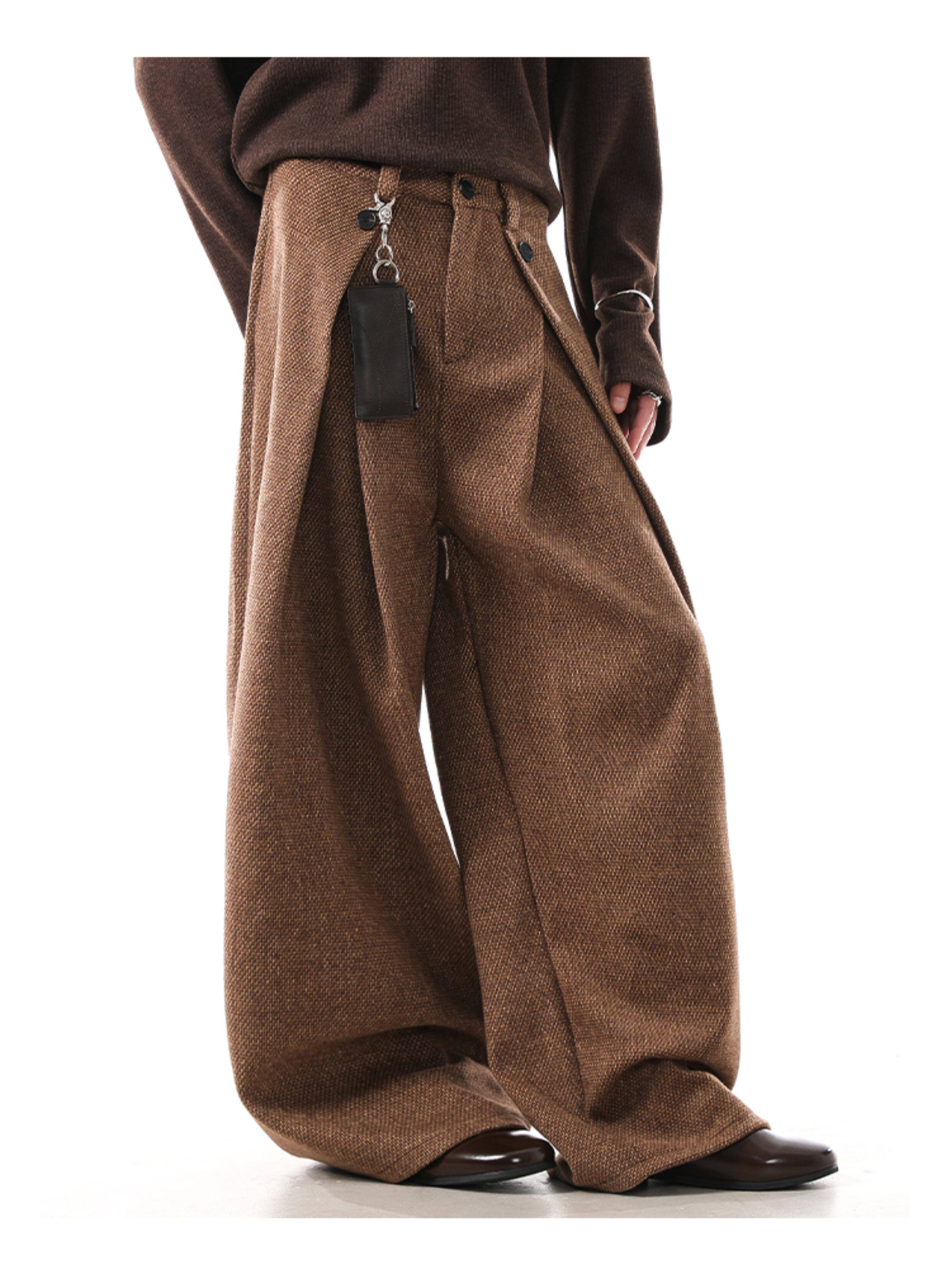 Blankin Old Money Style High-End Pleated Thick Suit Pants for Men and Women, Winter Warm A-Line Wide-Leg Long Pants