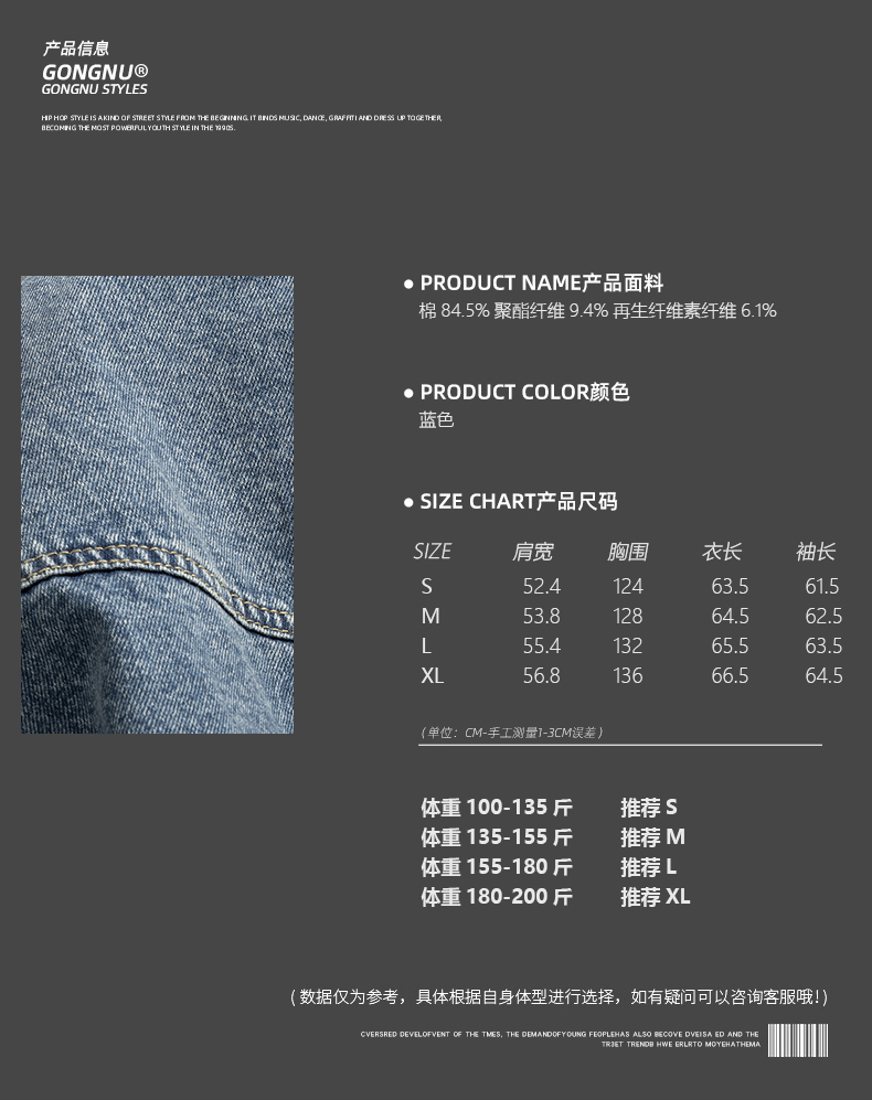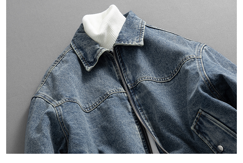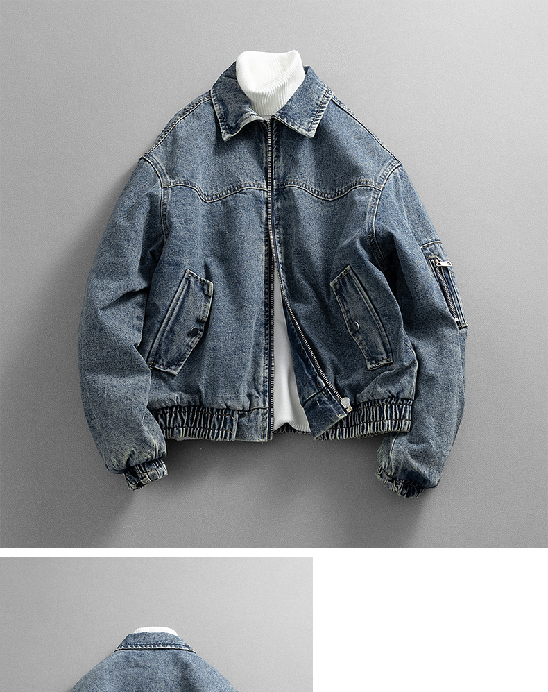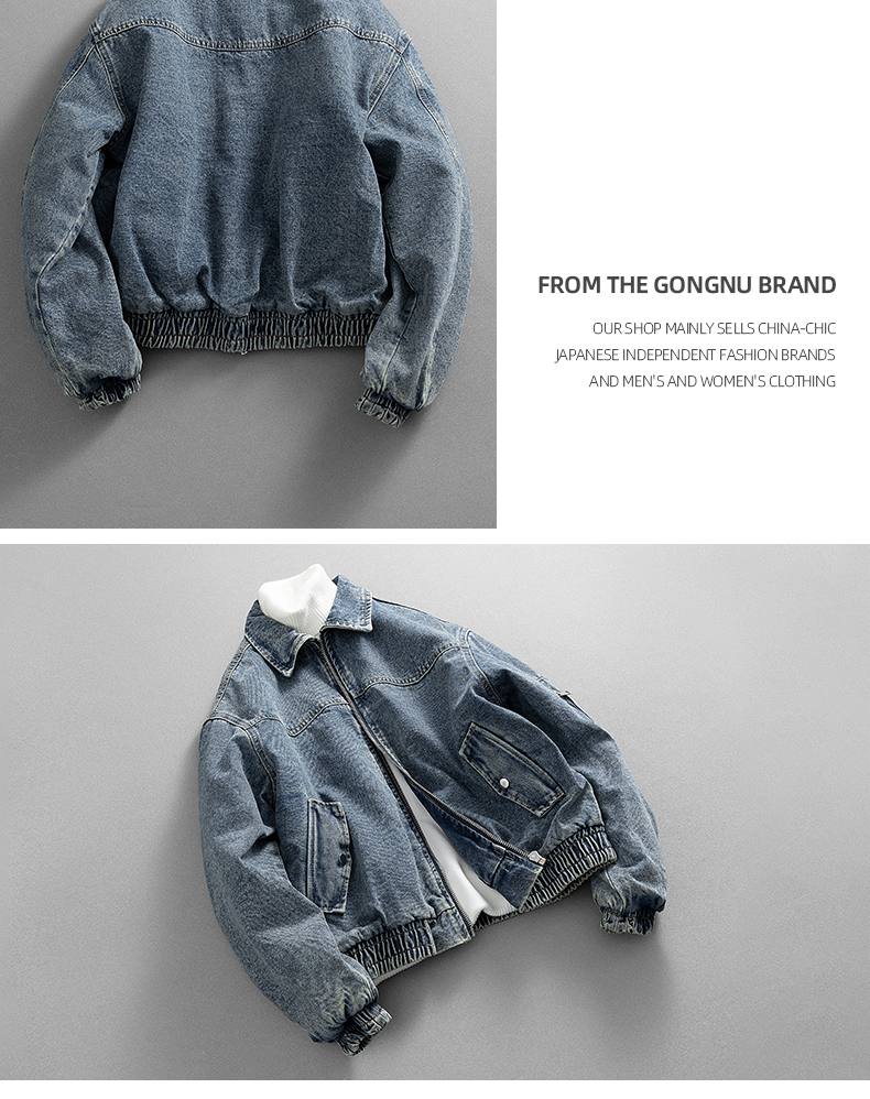 Autumn Japanese Casual Trendy Retro Cleanfit Distressed Washed Short Oversized Denim Padded Jacket for Men