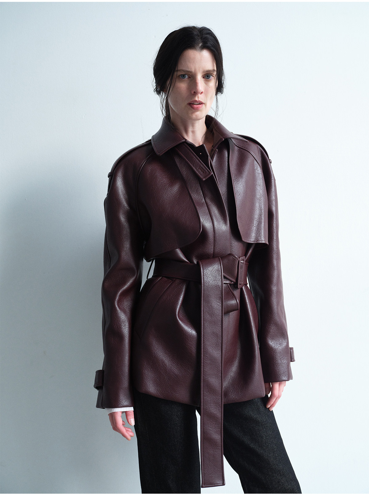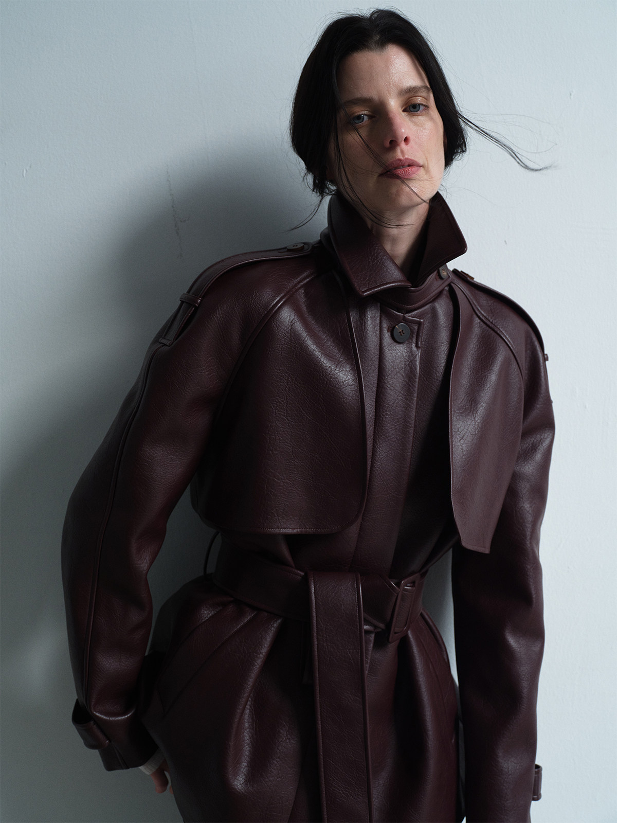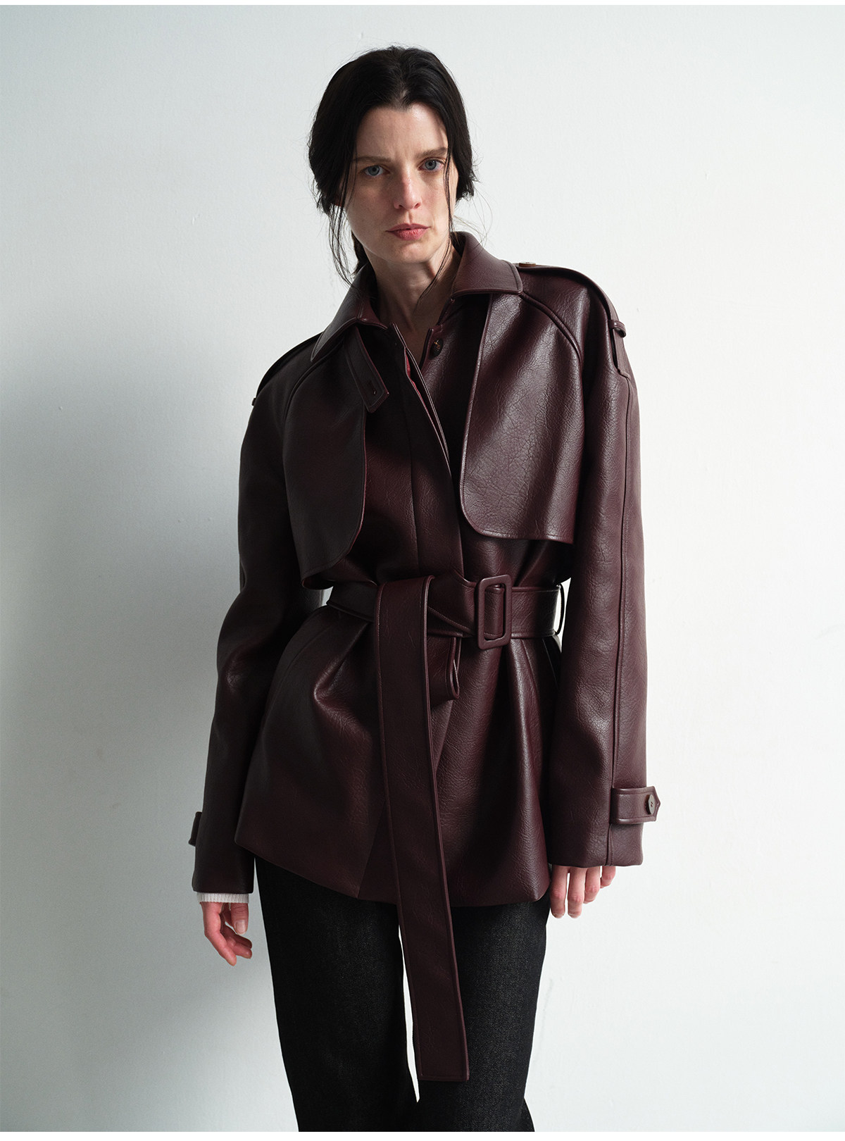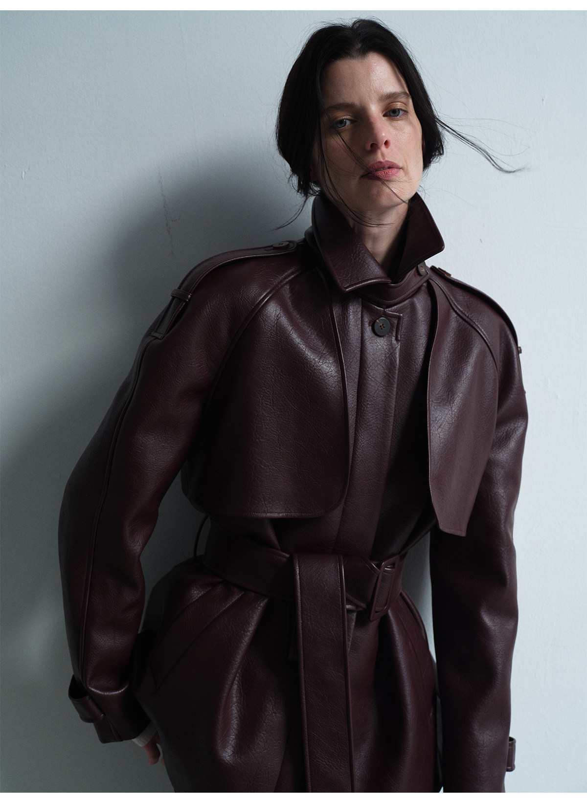 Heliact O Autumn and Winter Stylish Mid-Length Thick Padded Leather Trench Coat