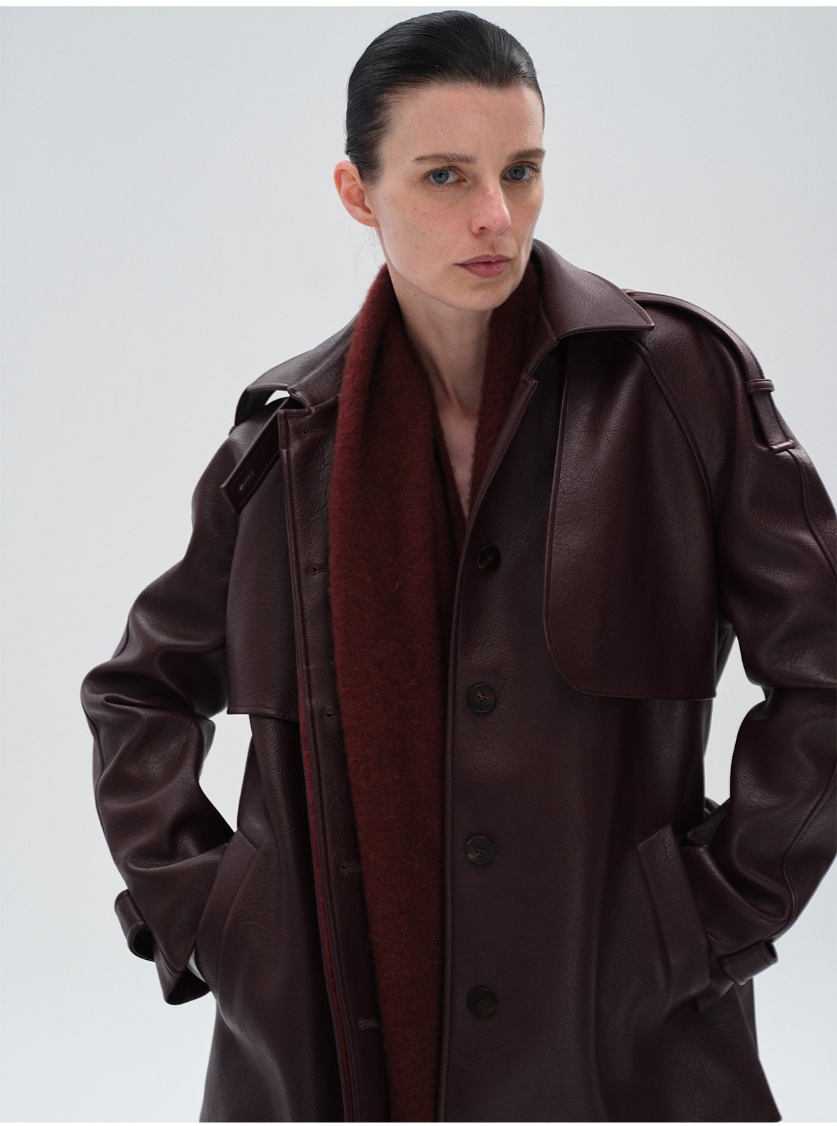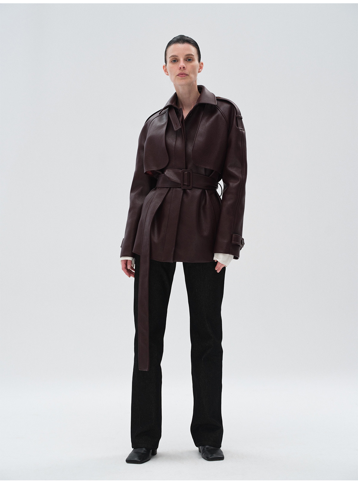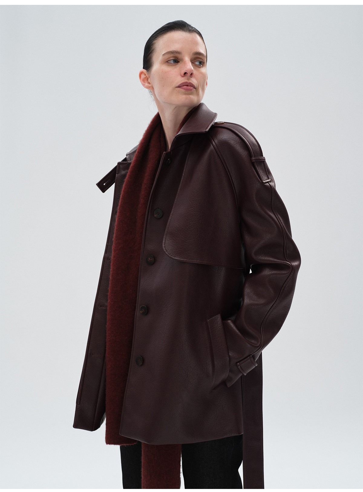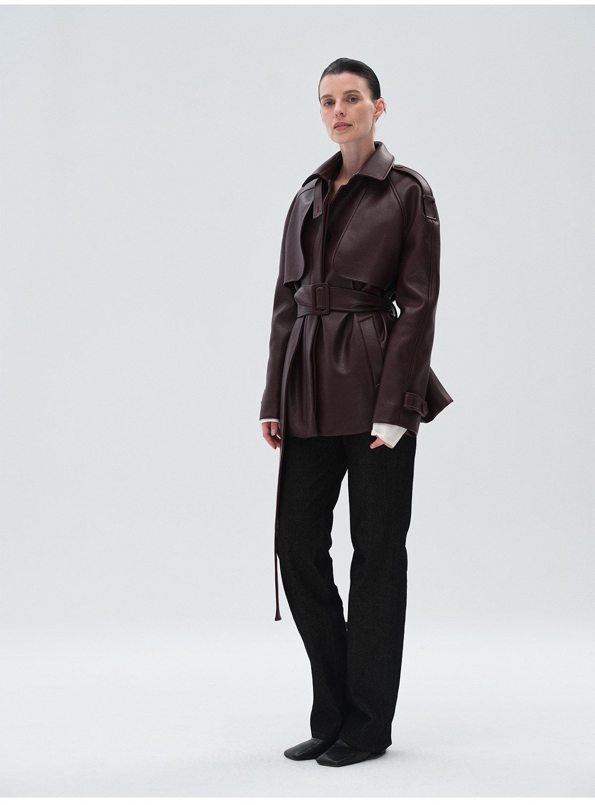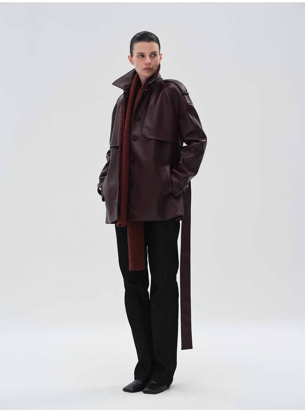 Heliact O Autumn and Winter Stylish Mid-Length Thick Padded Leather Trench Coat