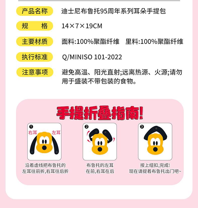 Miniso Disney Pluto 95Th Anniversary Series Ear-Shaped Handbag Cute Cartoon Mini