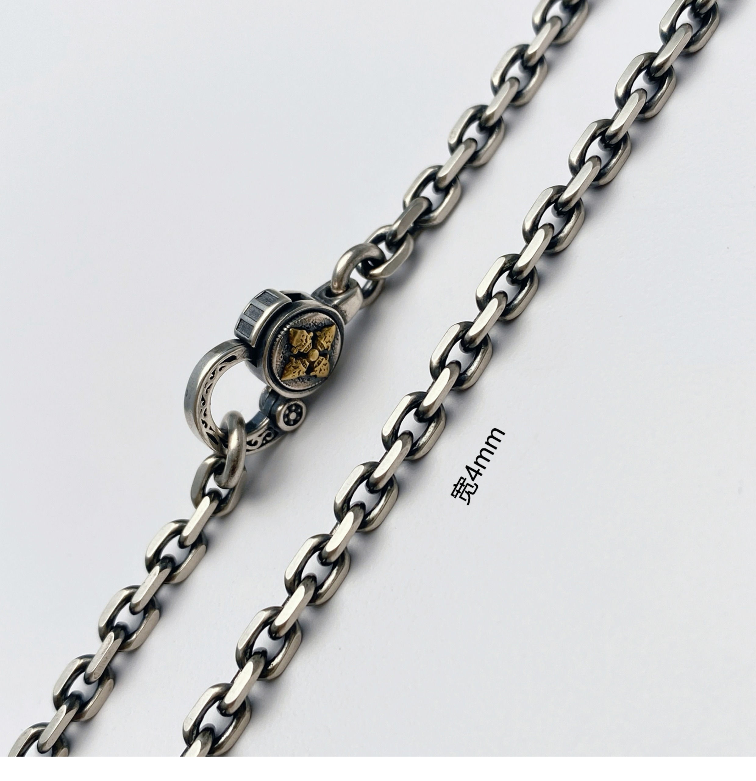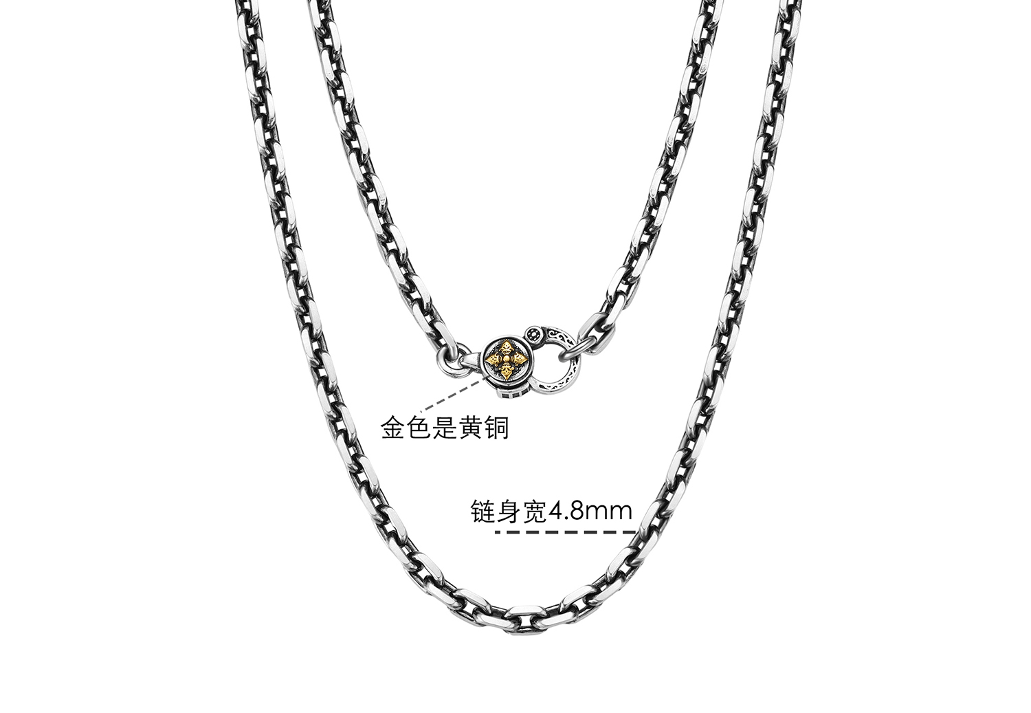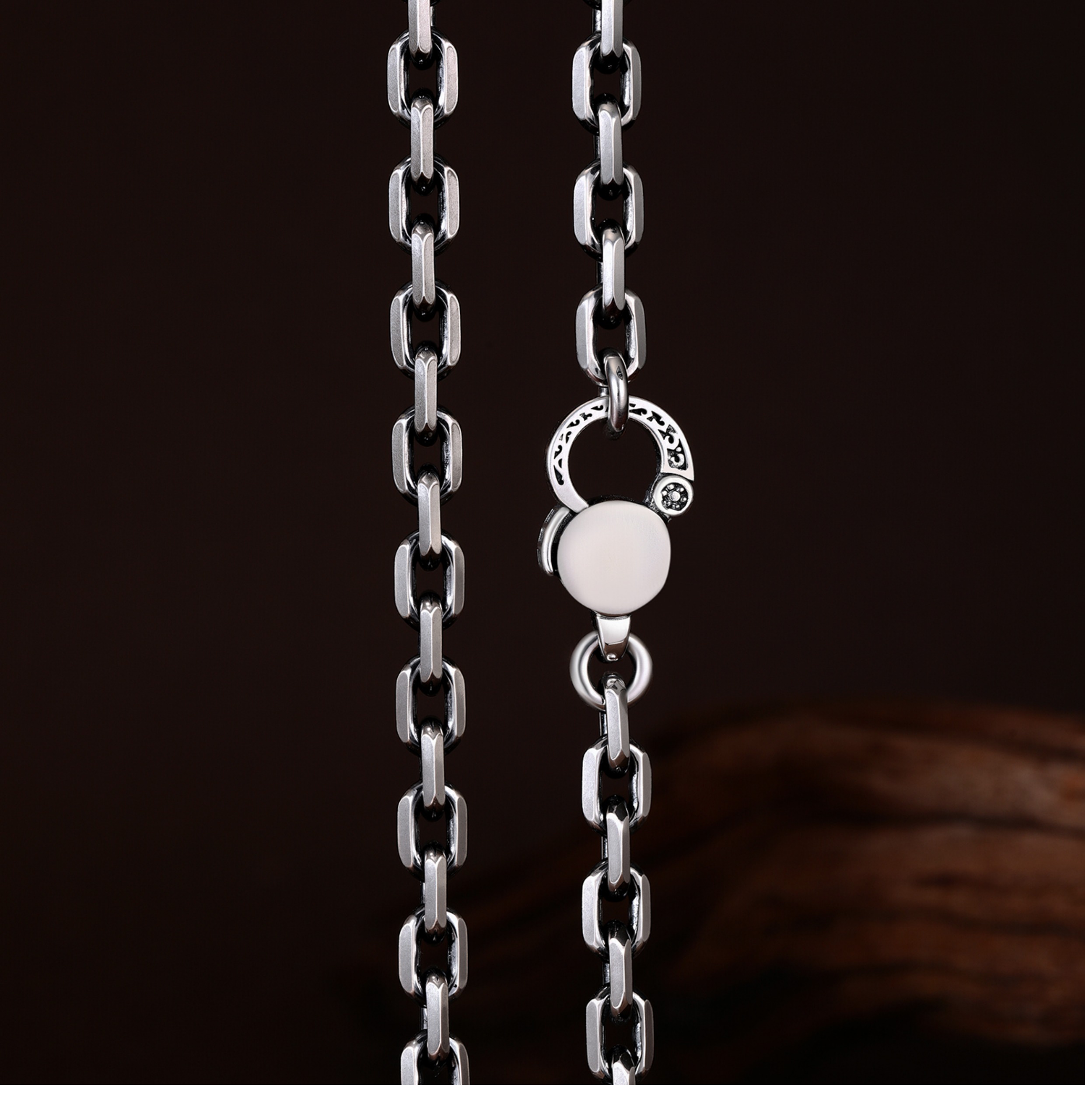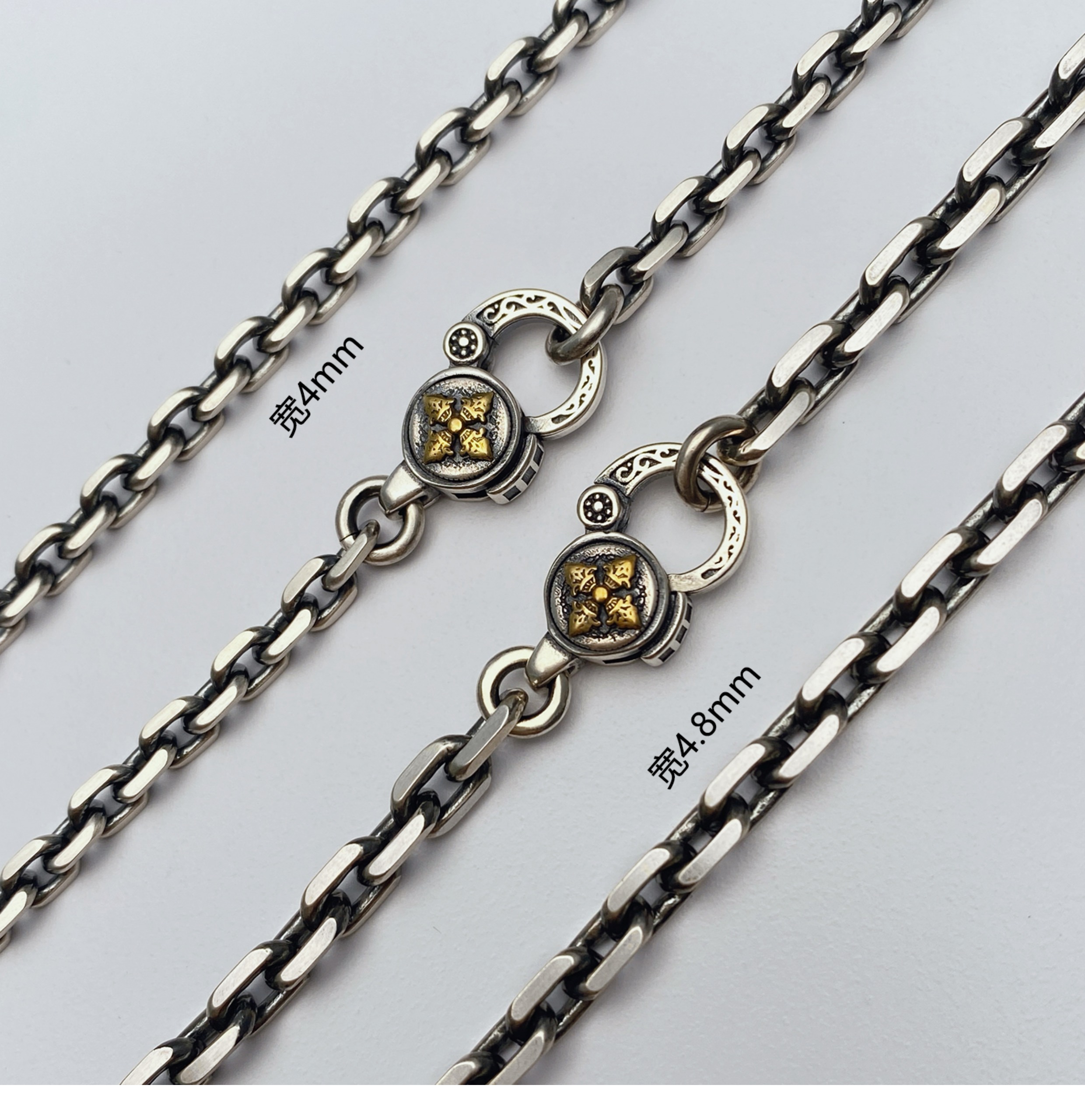 925 Sterling Silver Dzi Bead Chain Vajra Necklace Trendy Men's Necklace Tibetan Vintage Choker Bare Chain Long Necklace