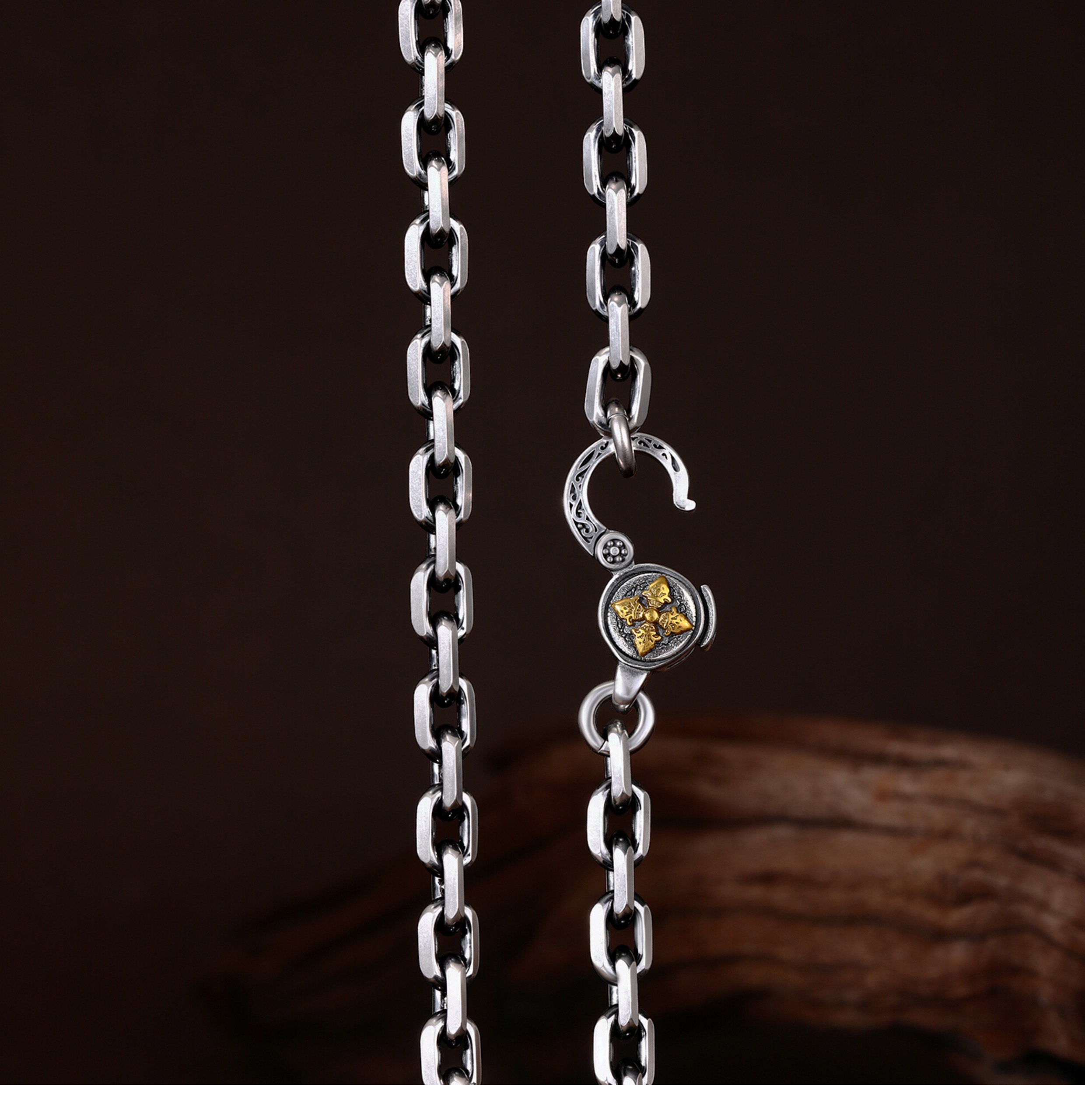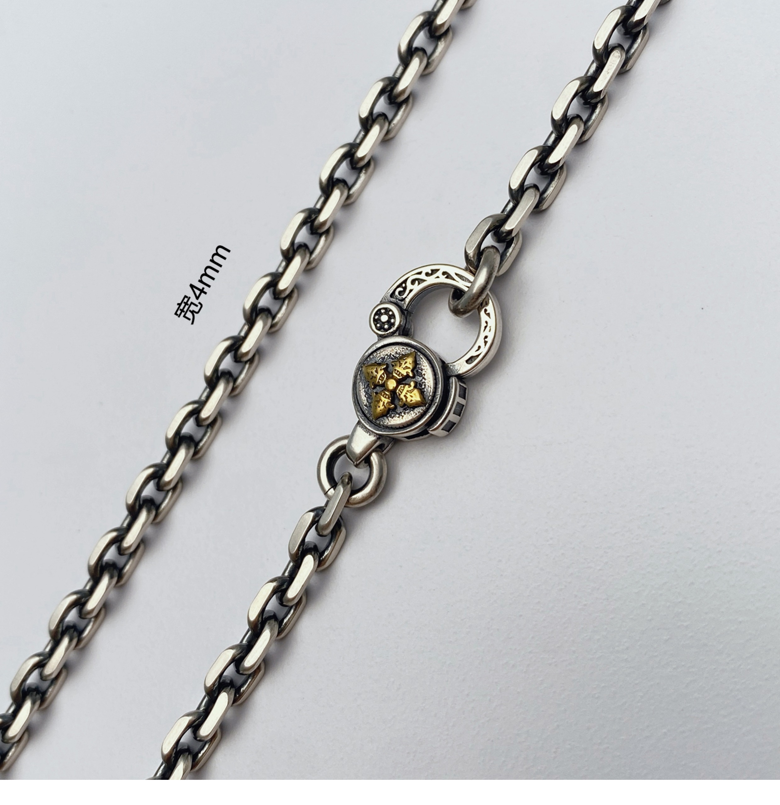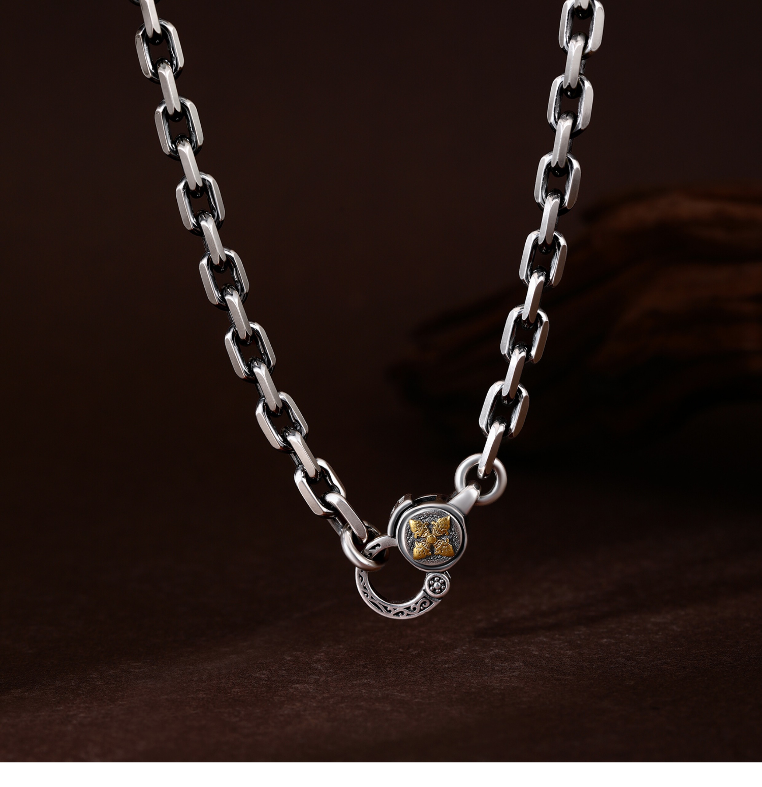 925 Sterling Silver Dzi Bead Chain Vajra Necklace Trendy Men's Necklace Tibetan Vintage Choker Bare Chain Long Necklace