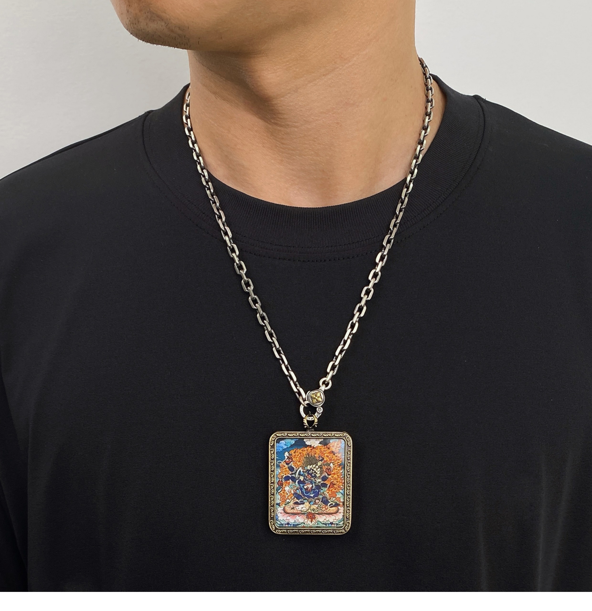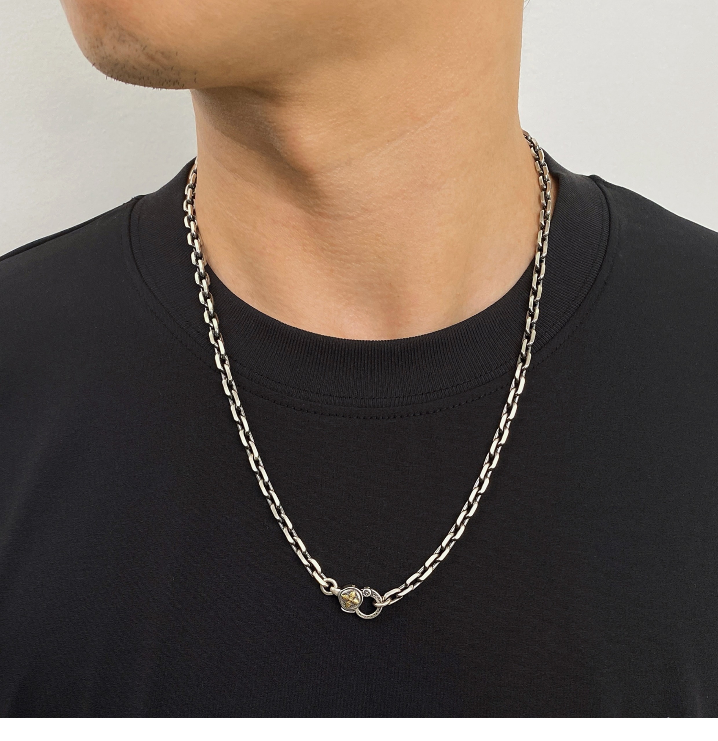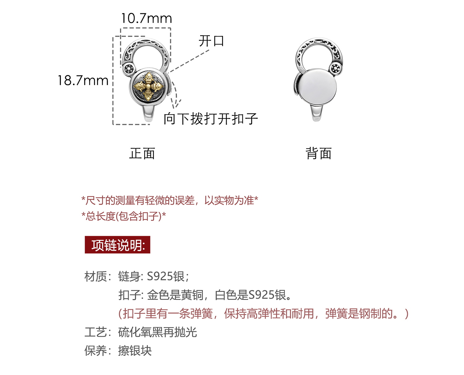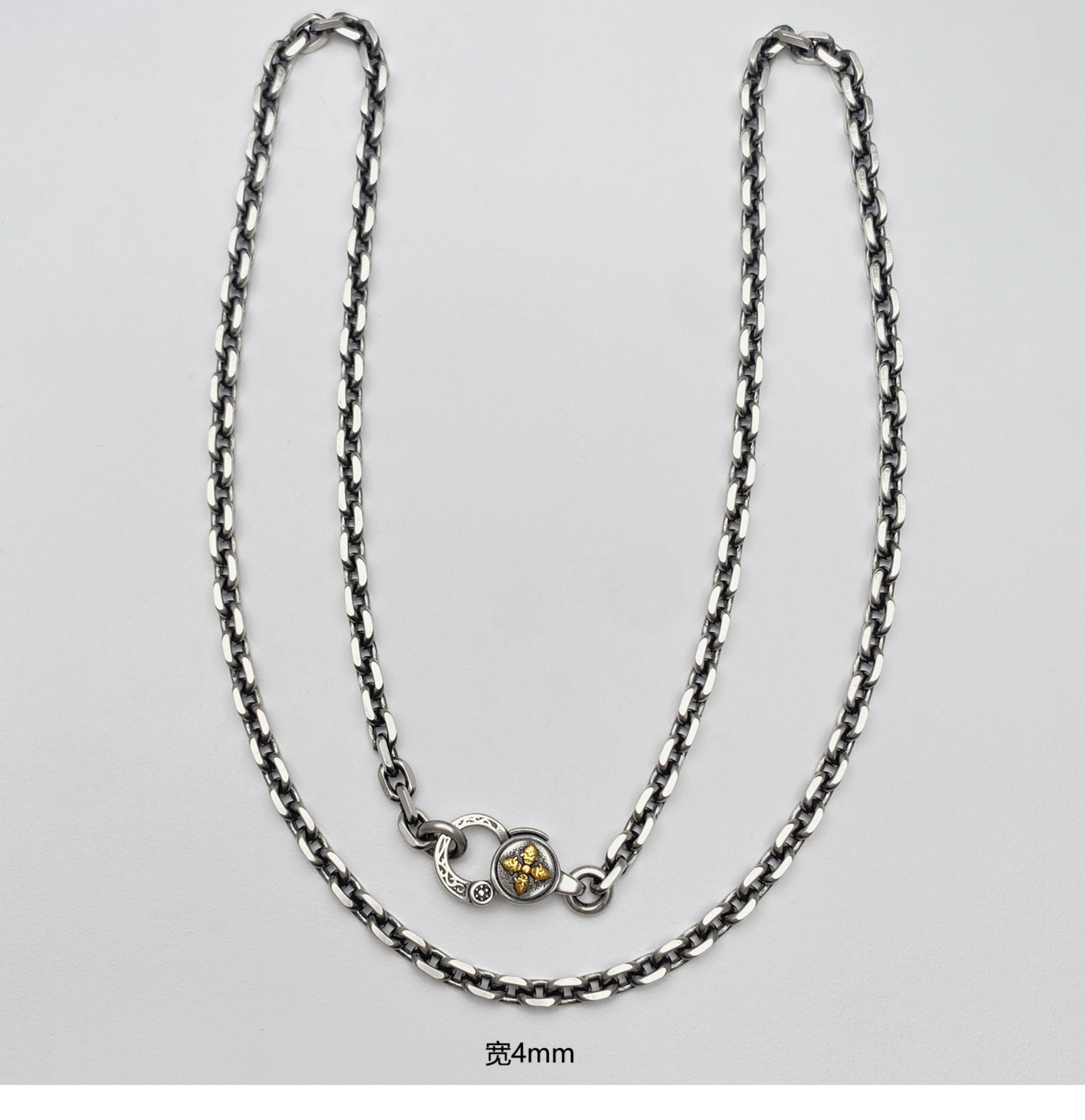 925 Sterling Silver Dzi Bead Chain Vajra Necklace Trendy Men's Necklace Tibetan Vintage Choker Bare Chain Long Necklace