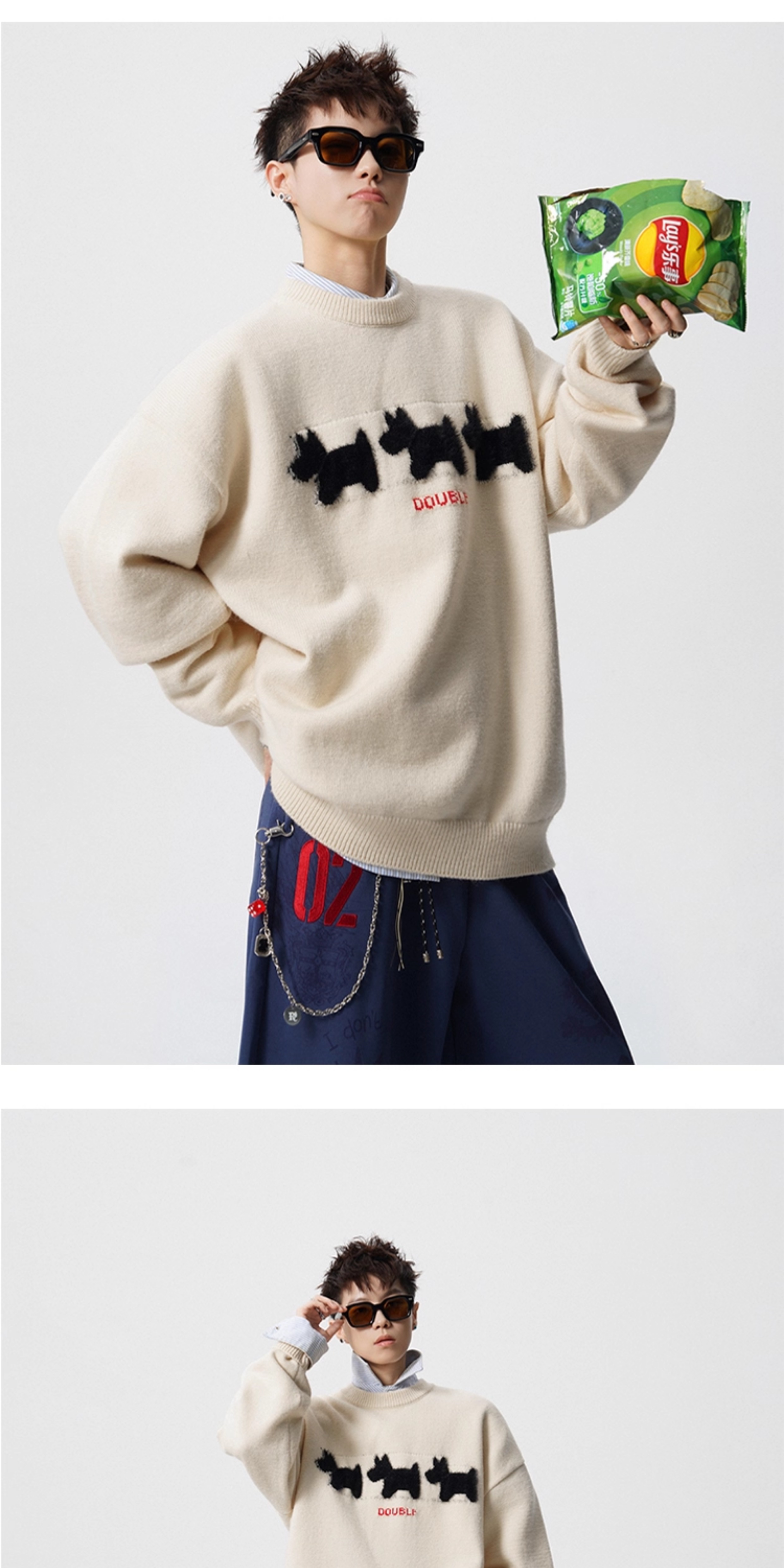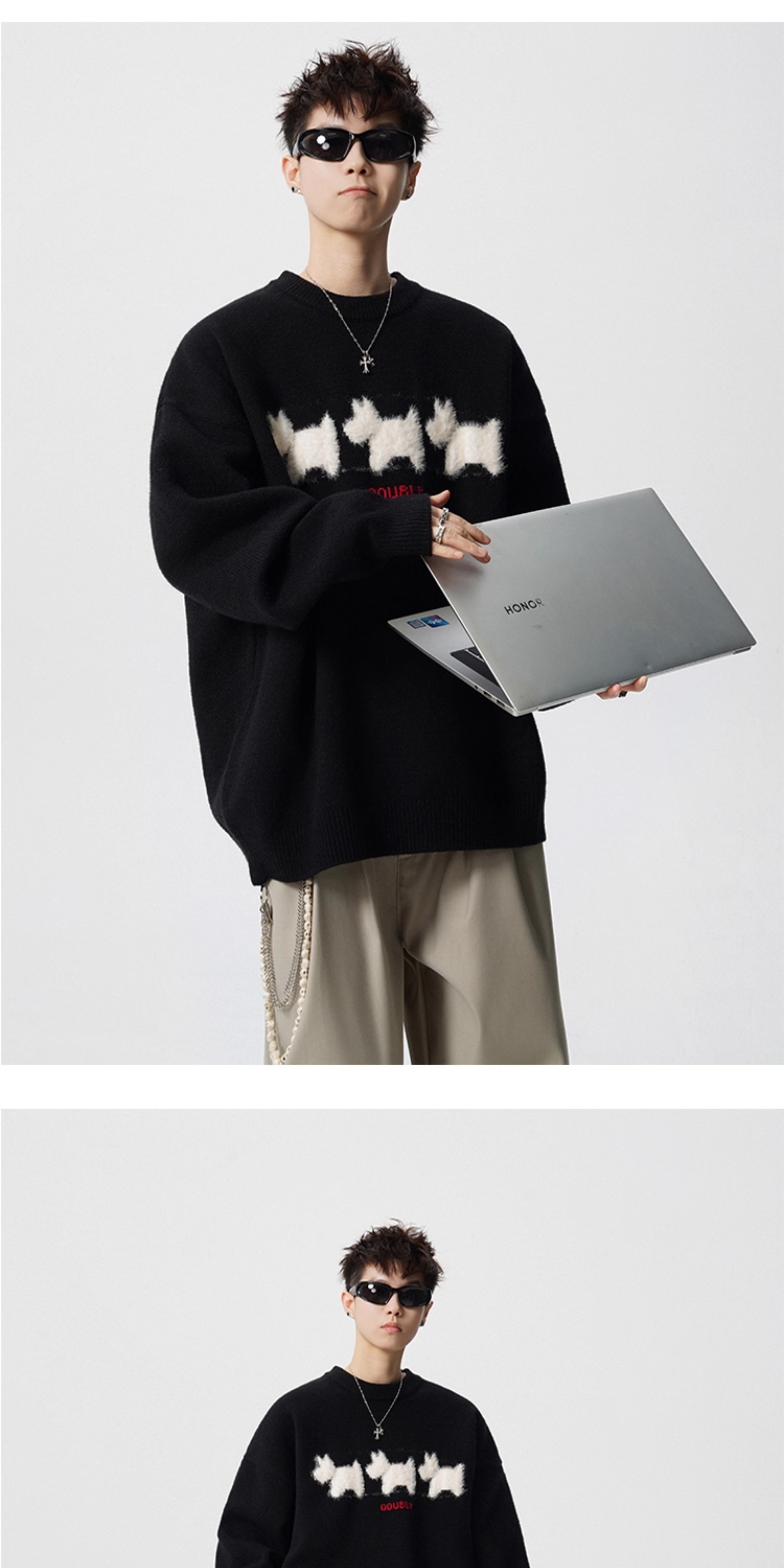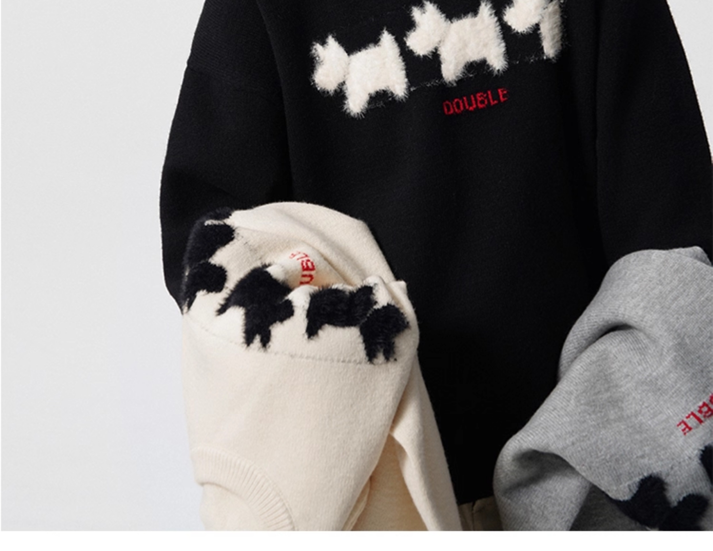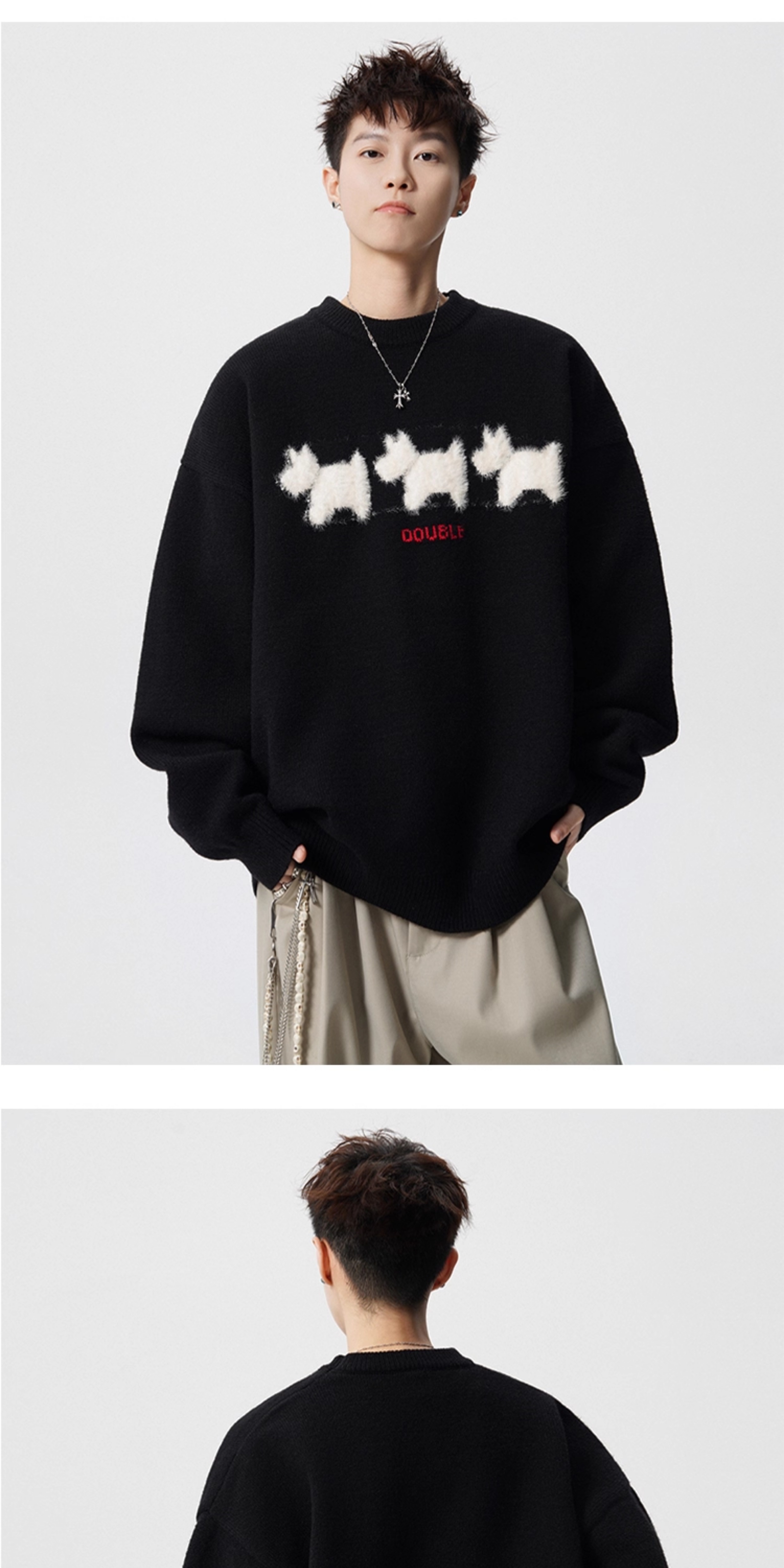 American-Style Puppy Velvet Crew Neck Sweater for Men and Women, New Winter Trendy Brand Loose and Lazy Style Couple Knitwear Top