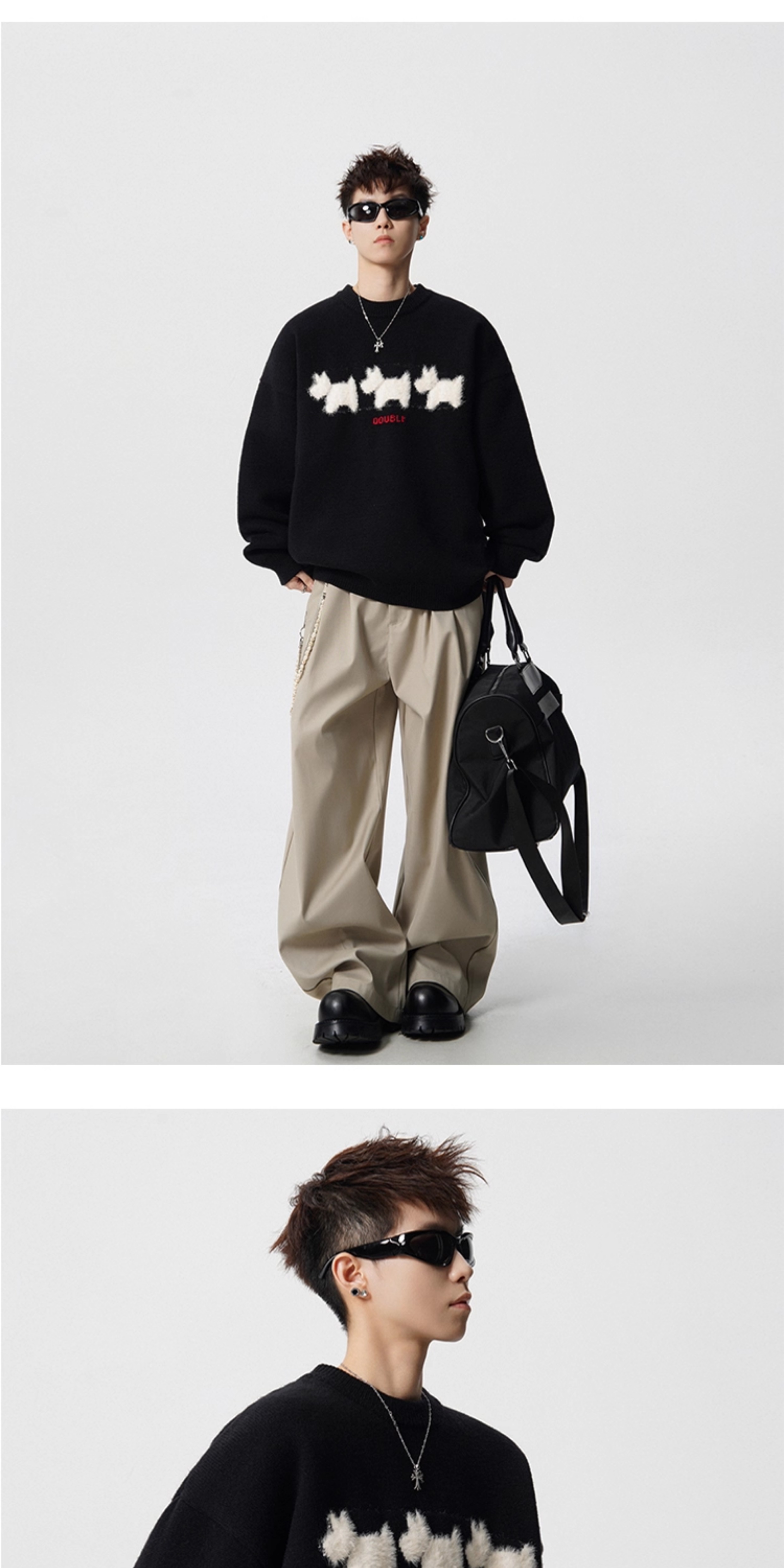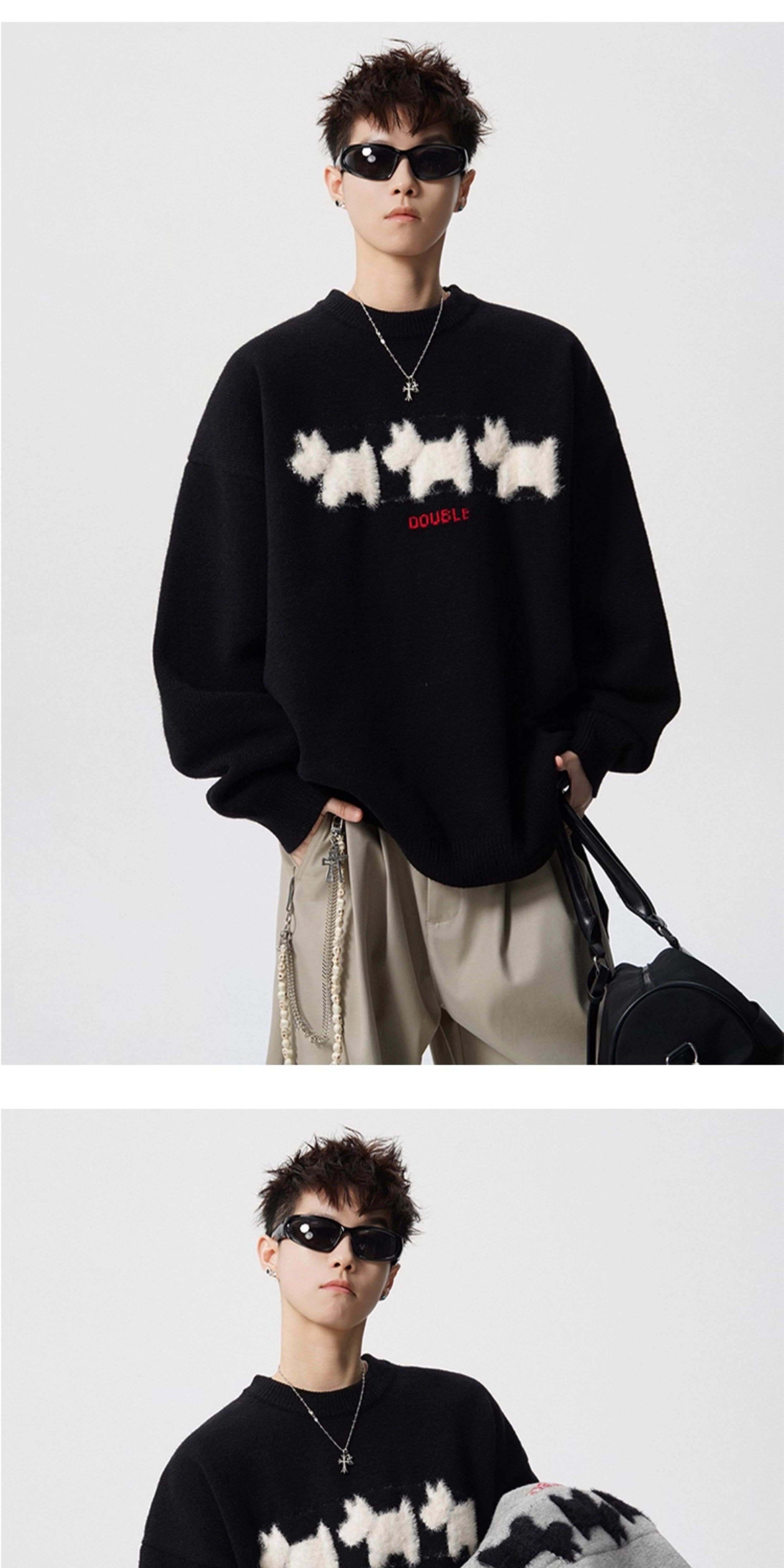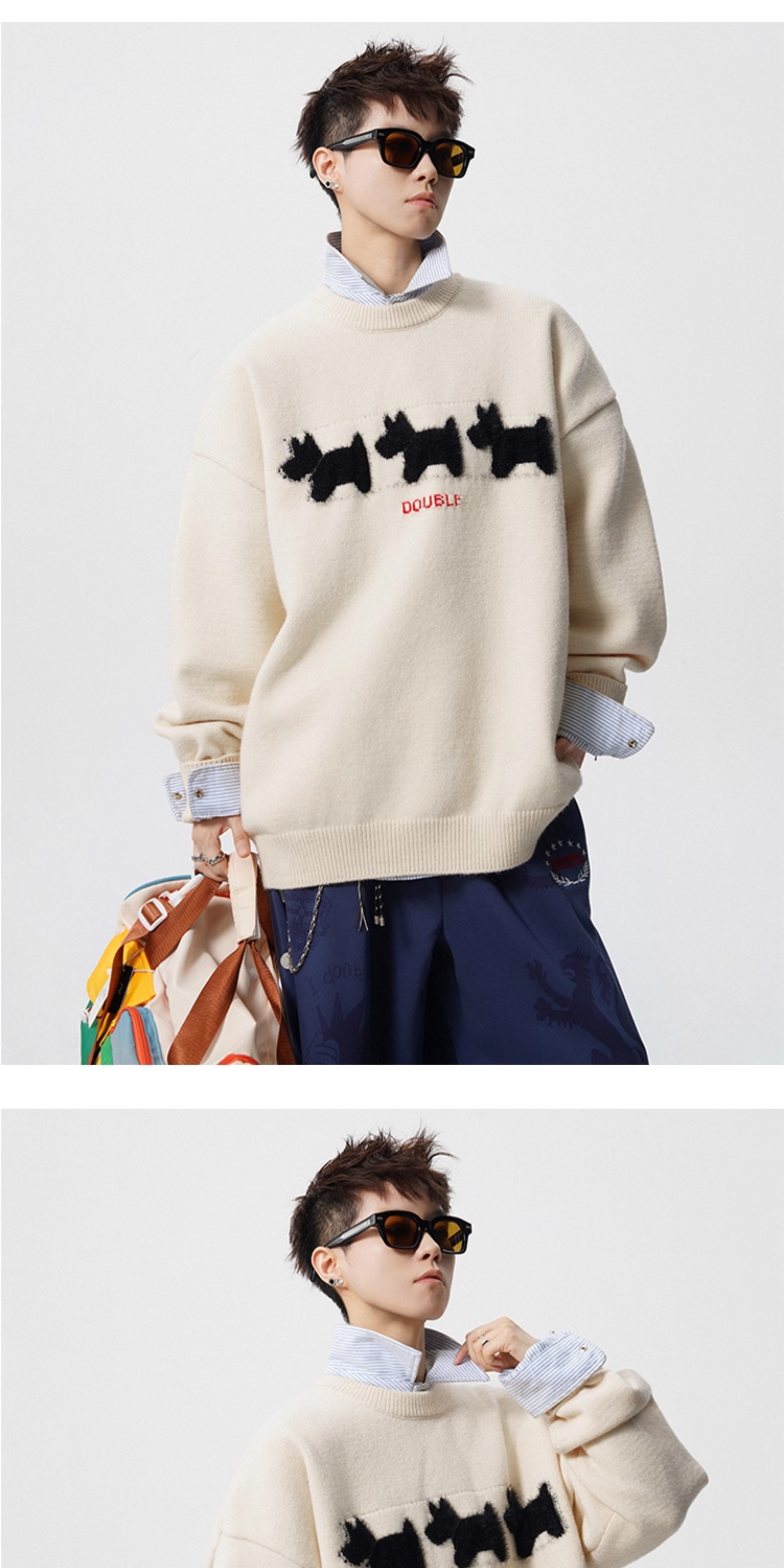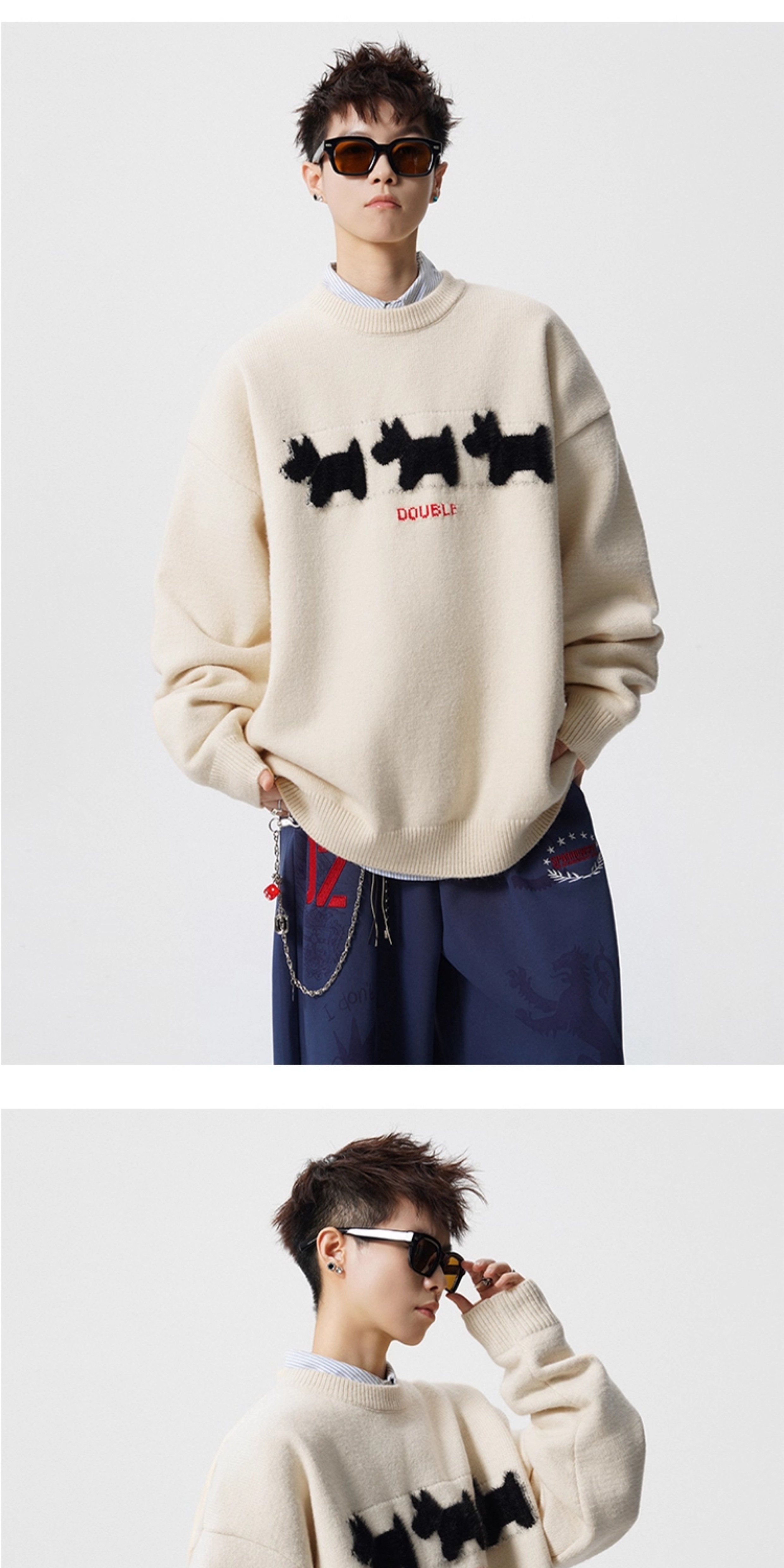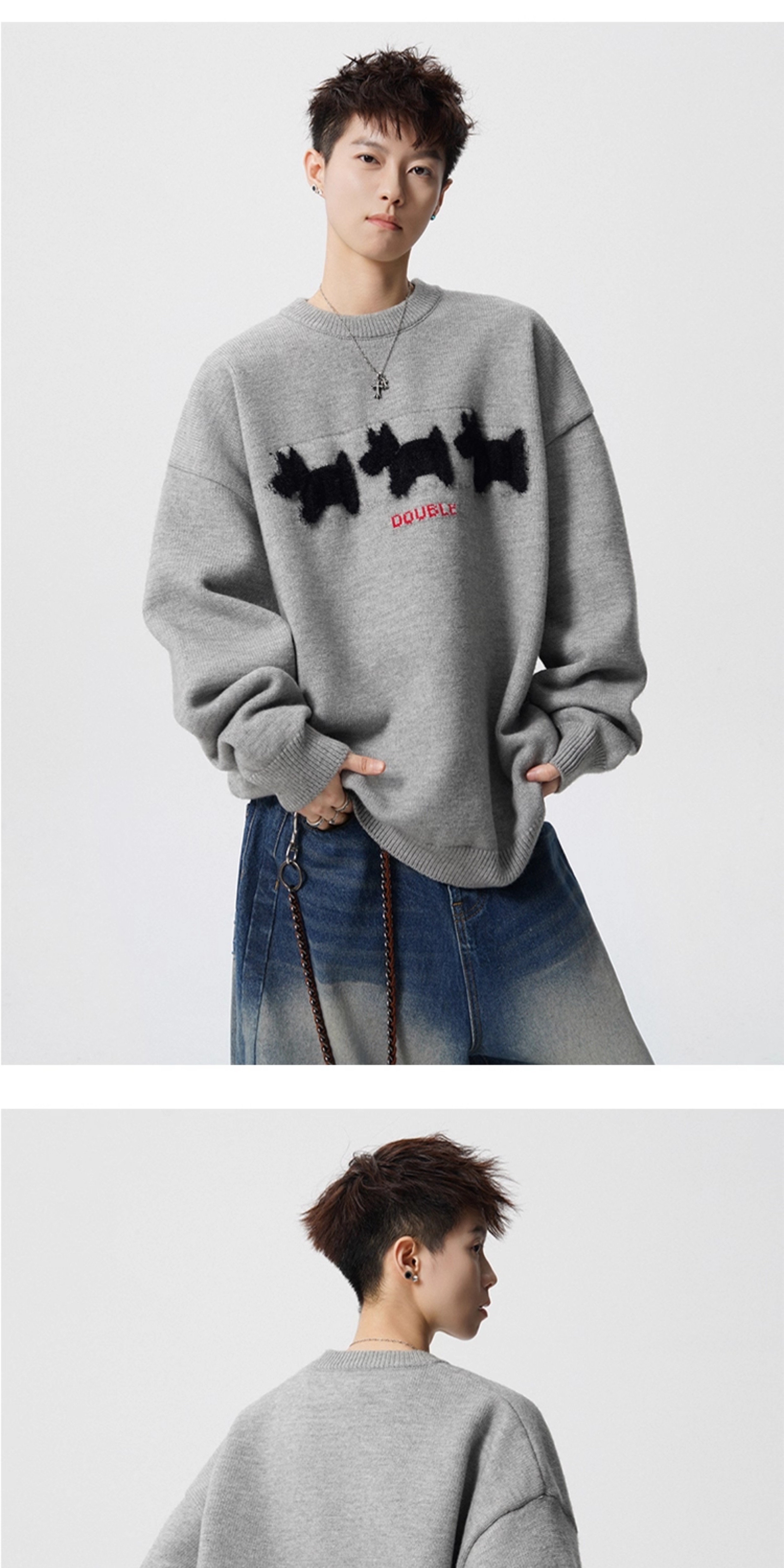 American-Style Puppy Velvet Crew Neck Sweater for Men and Women, New Winter Trendy Brand Loose and Lazy Style Couple Knitwear Top