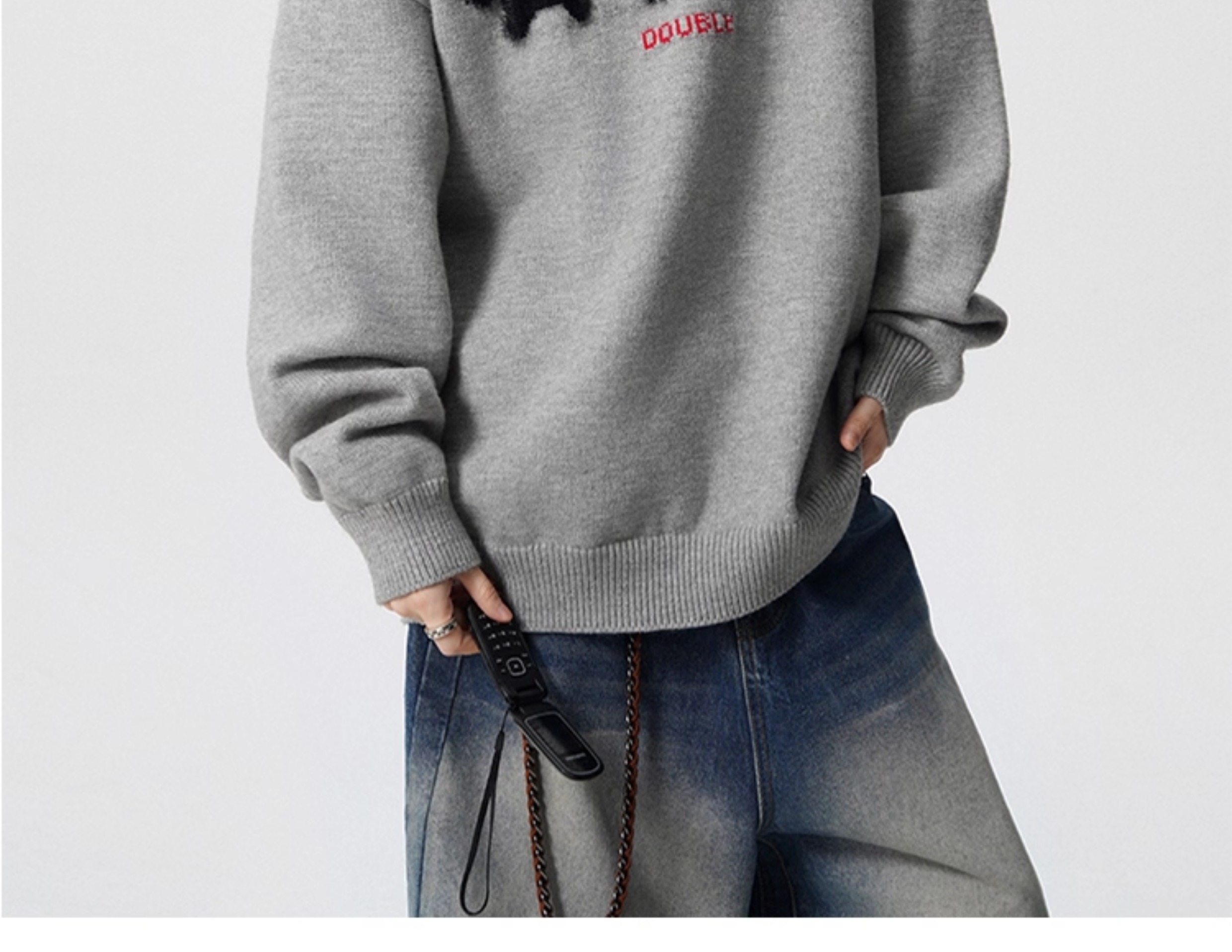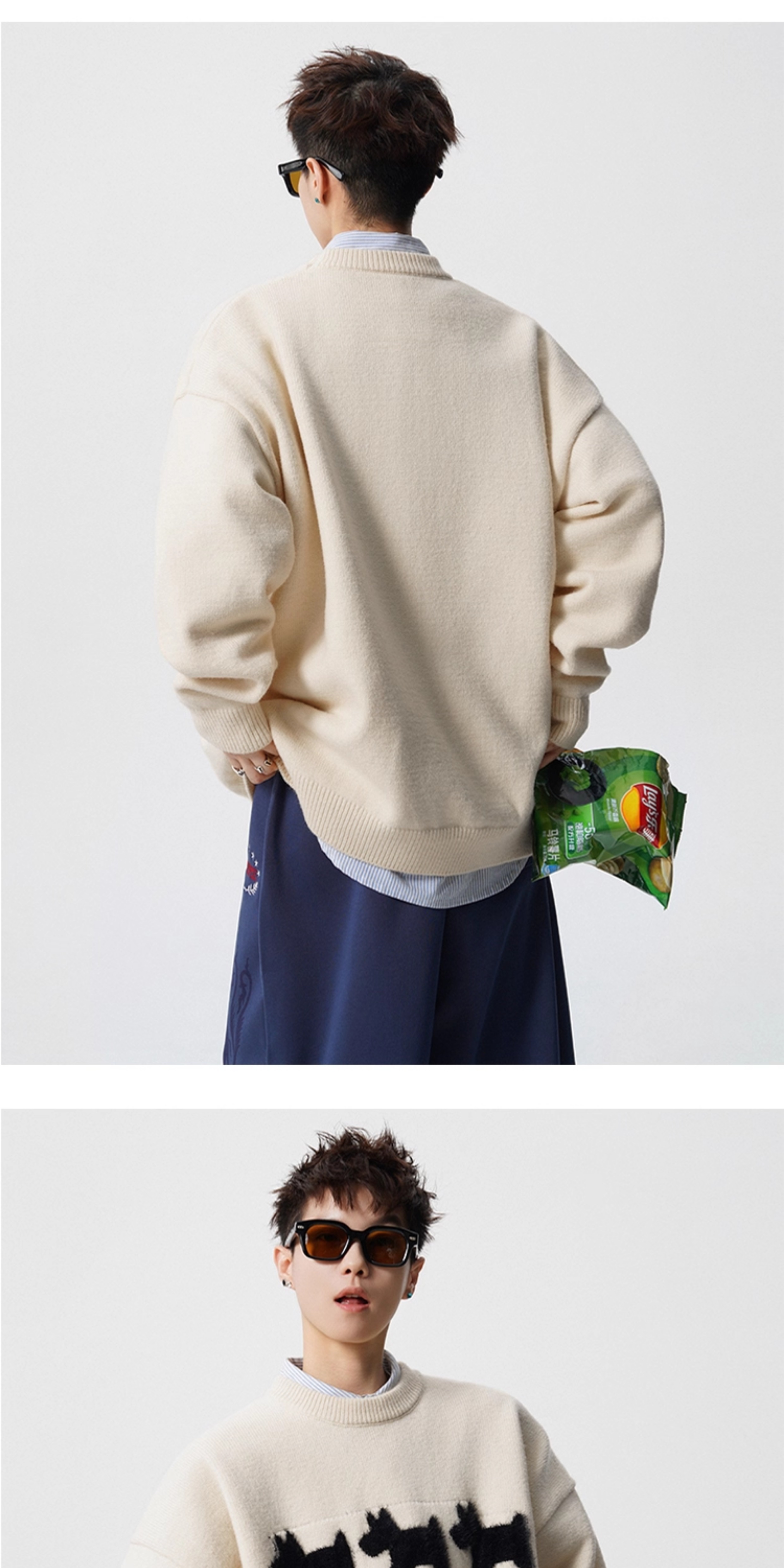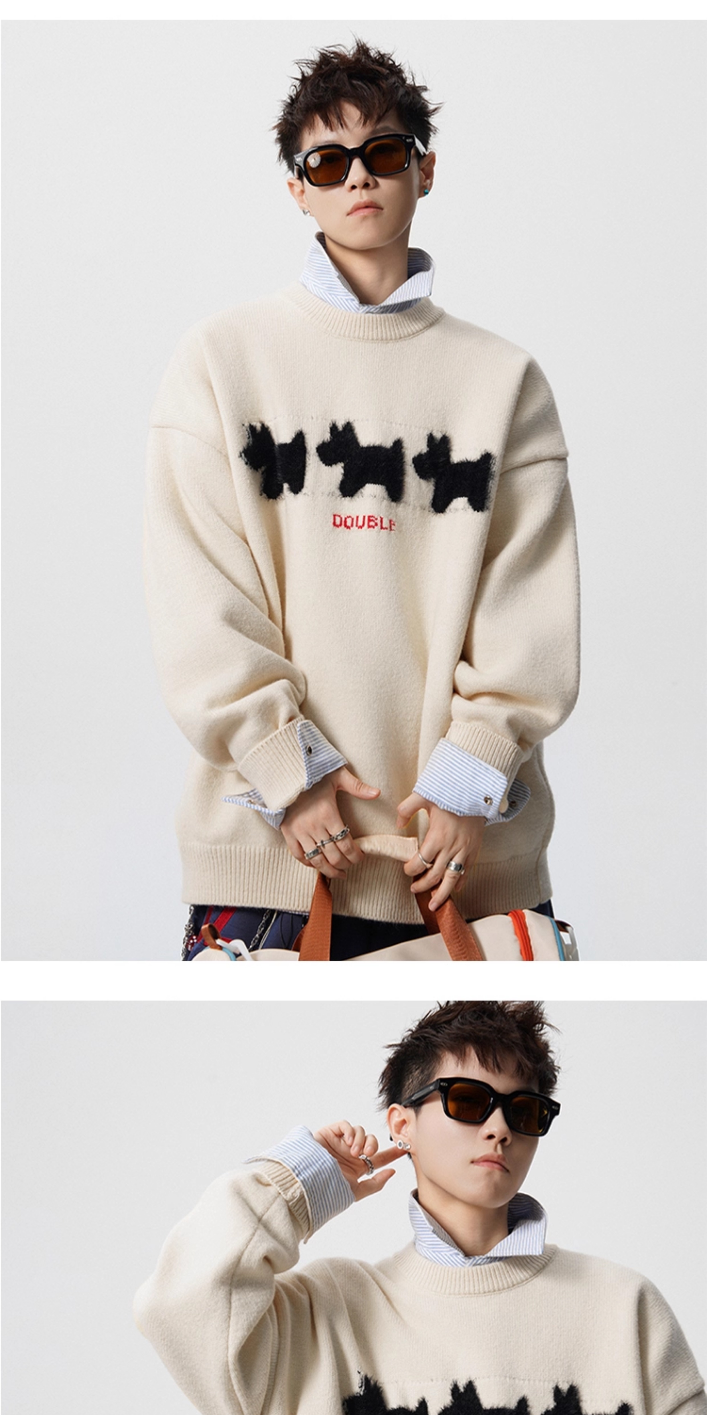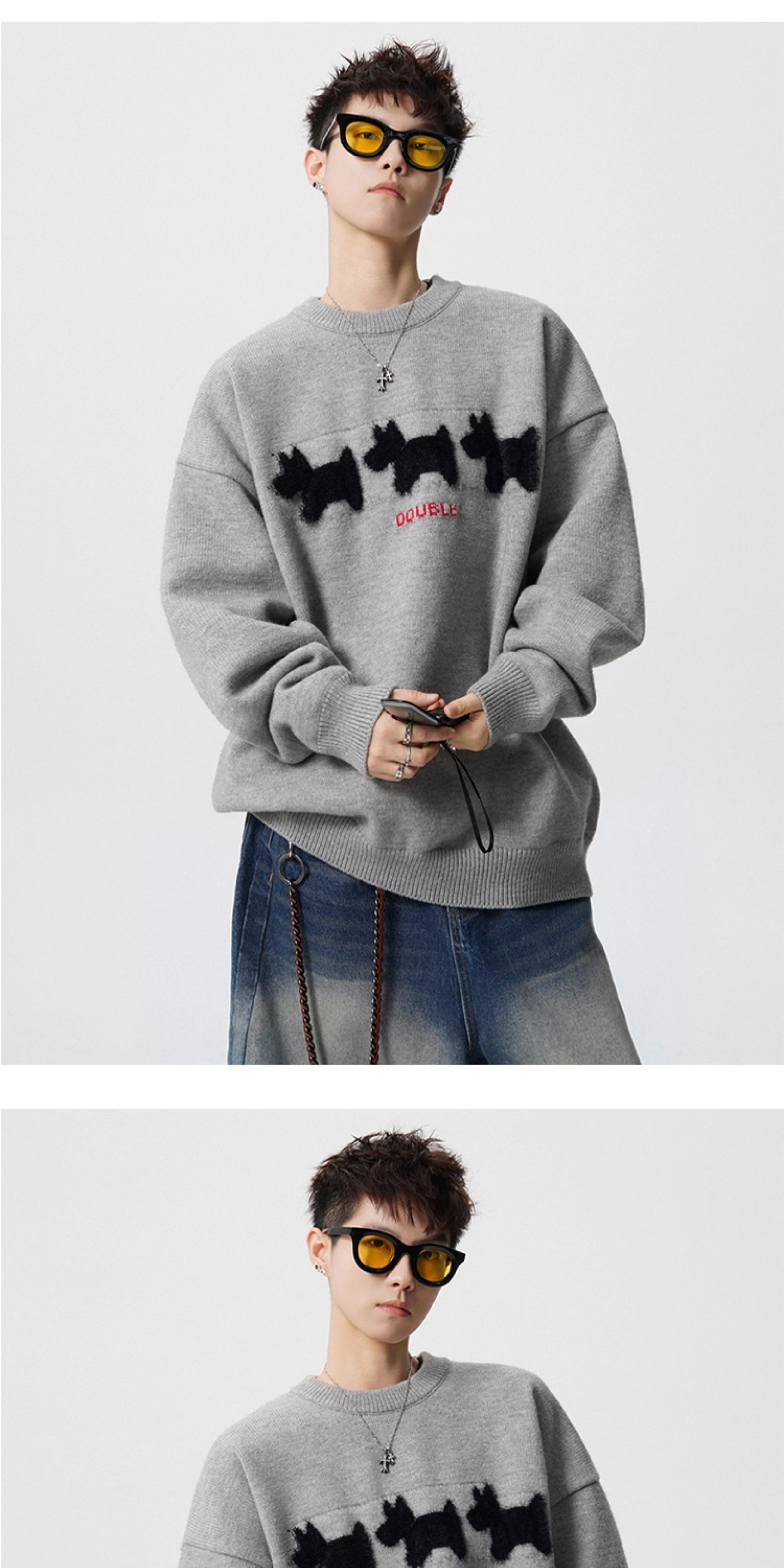 American-Style Puppy Velvet Crew Neck Sweater for Men and Women, New Winter Trendy Brand Loose and Lazy Style Couple Knitwear Top