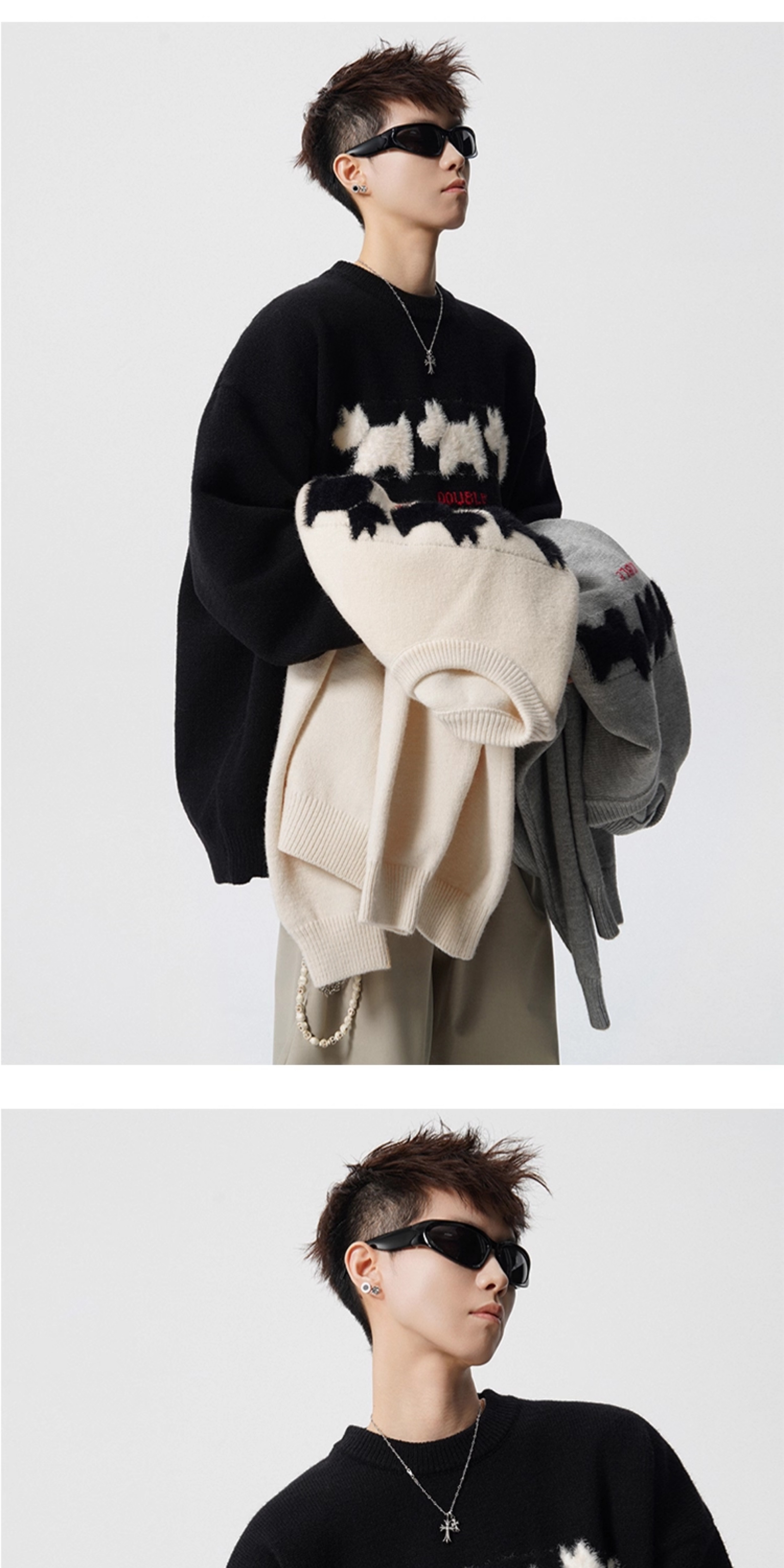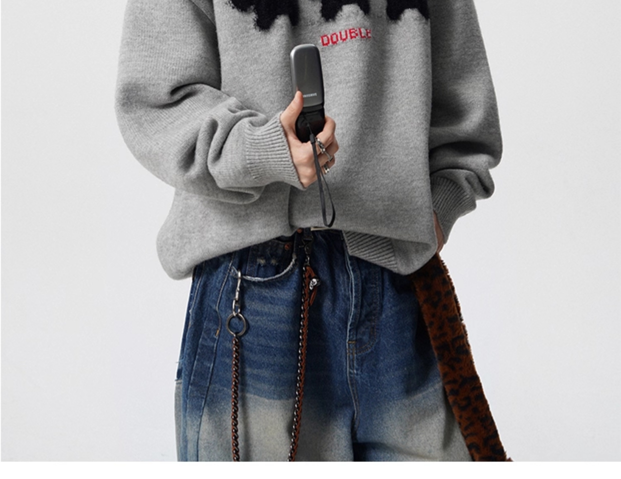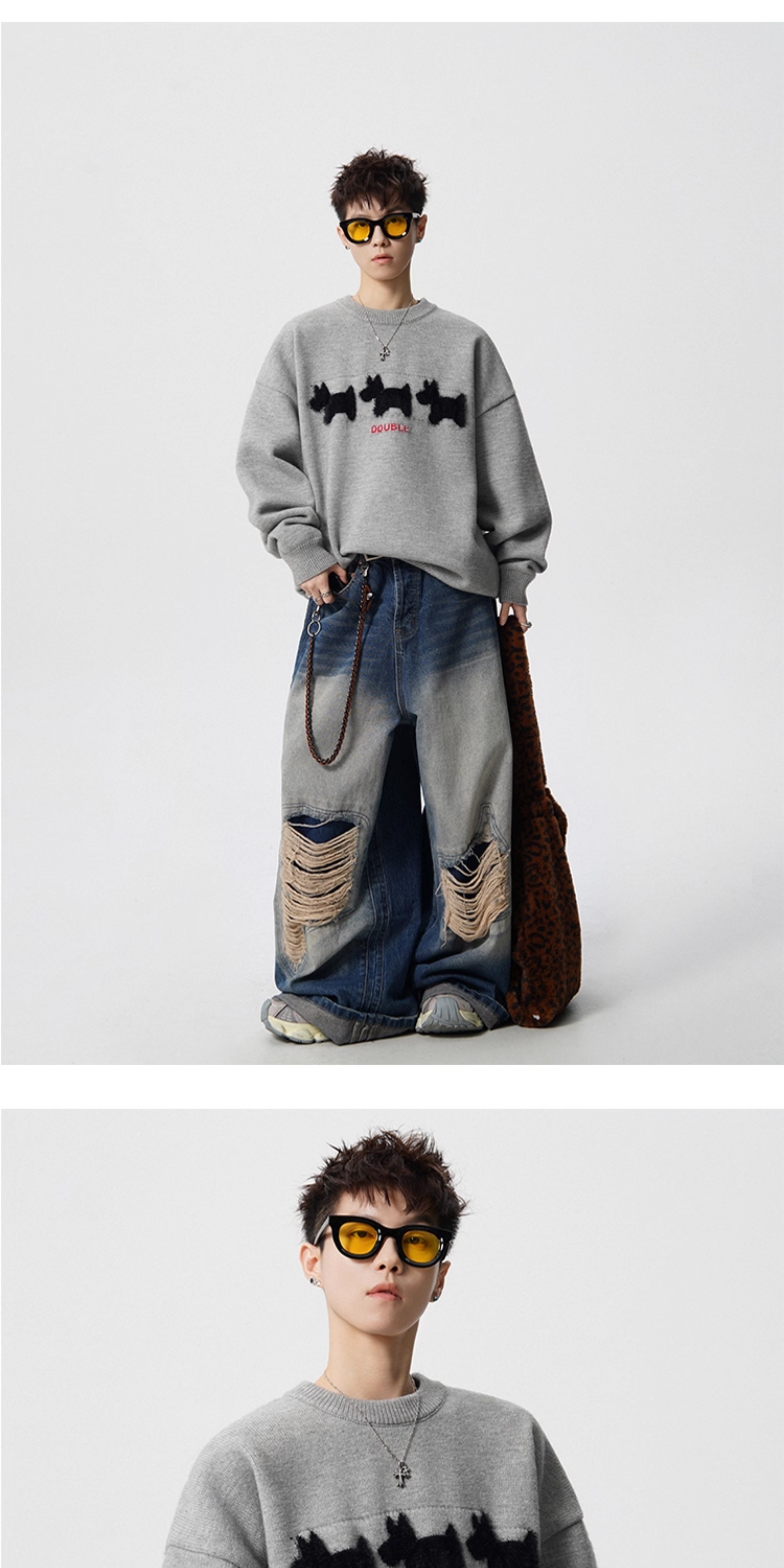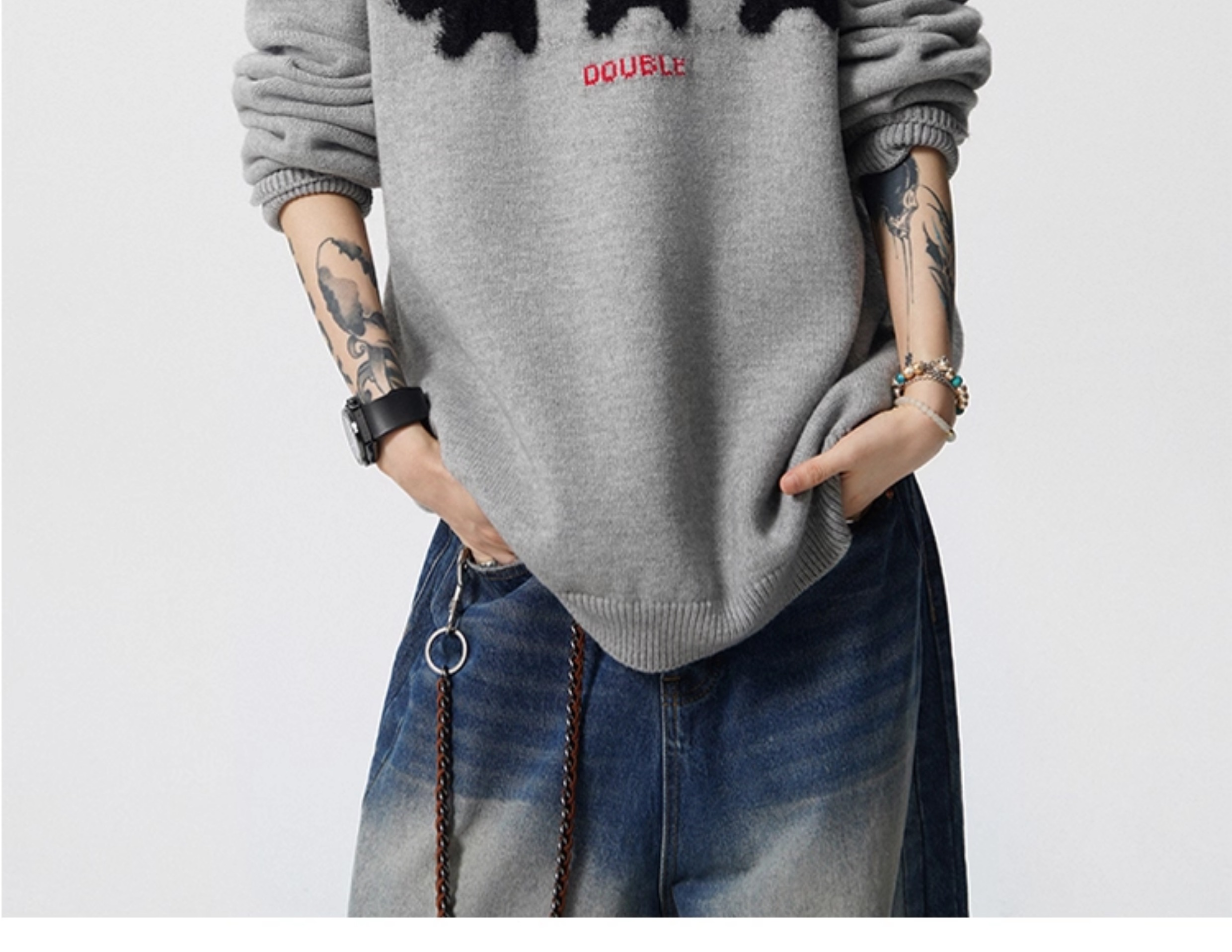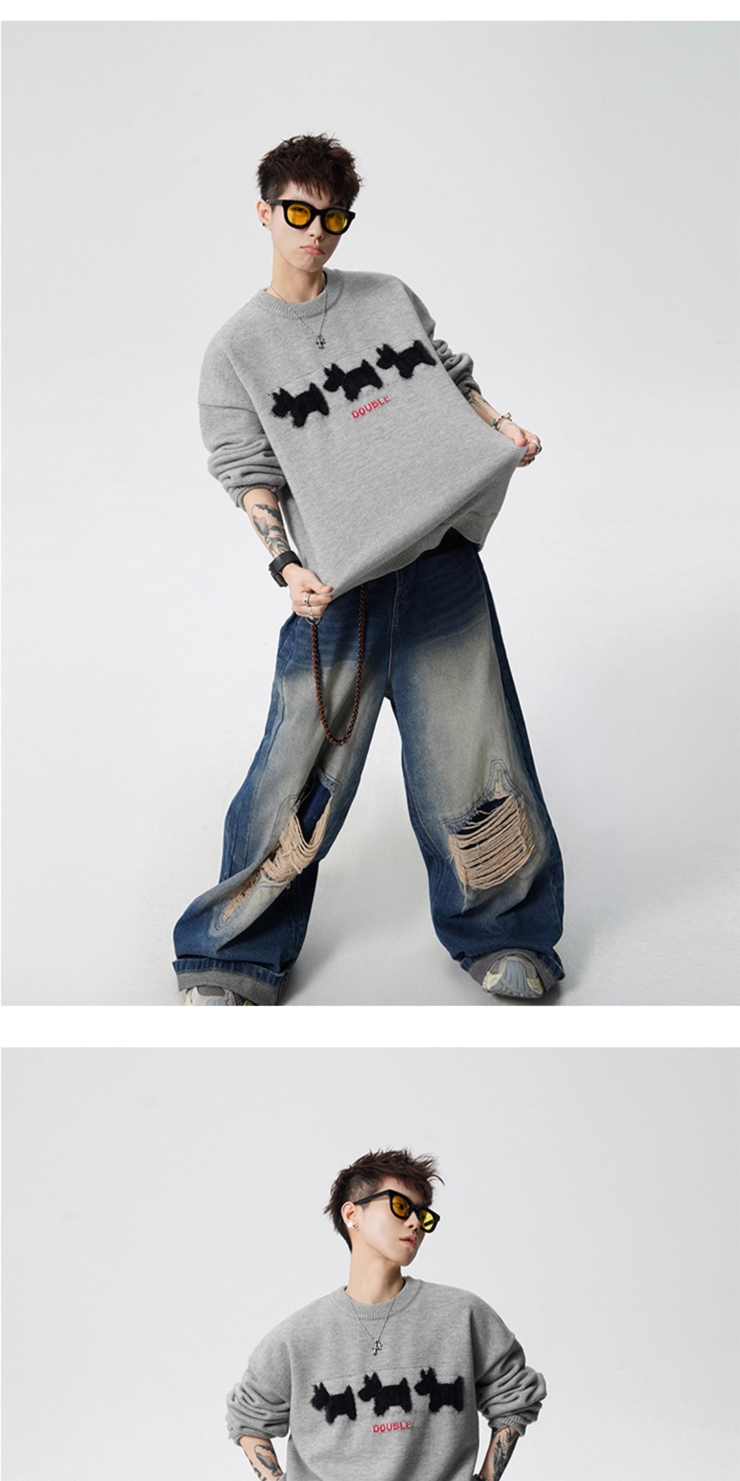 American-Style Puppy Velvet Crew Neck Sweater for Men and Women, New Winter Trendy Brand Loose and Lazy Style Couple Knitwear Top
