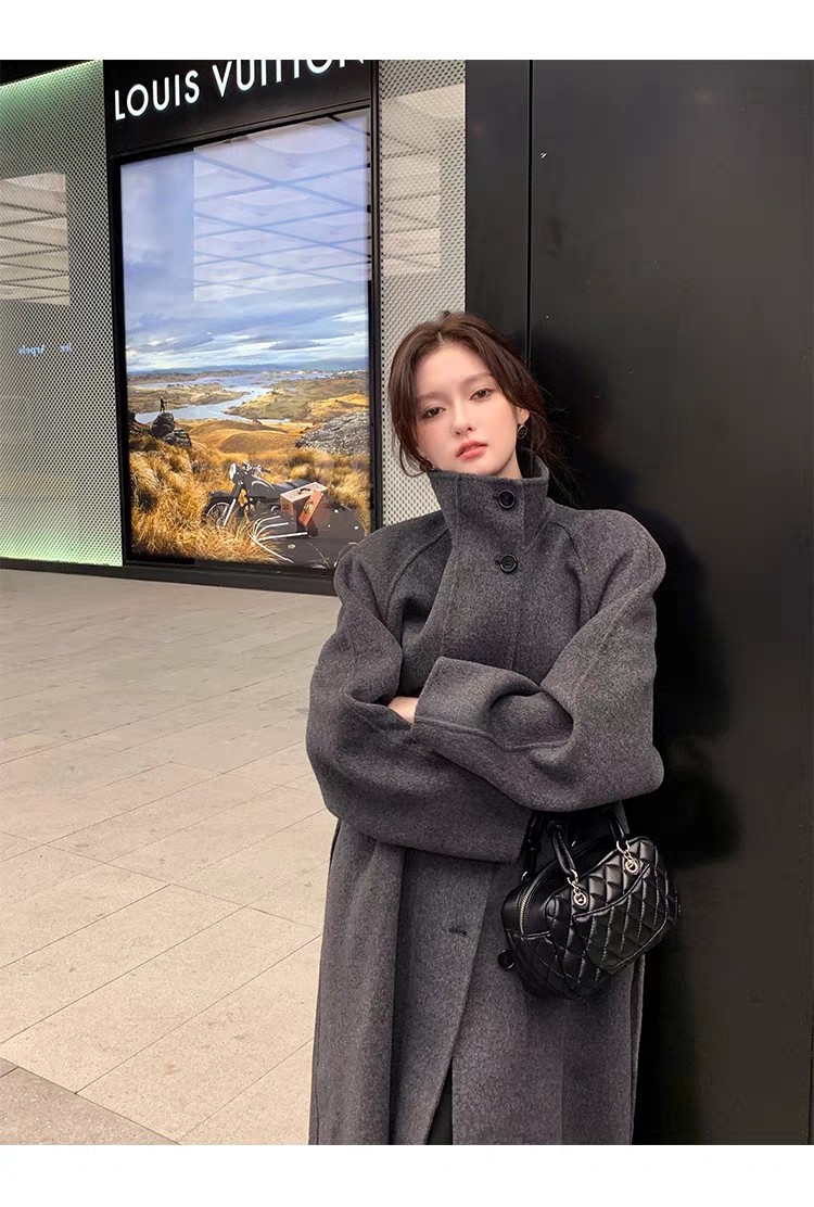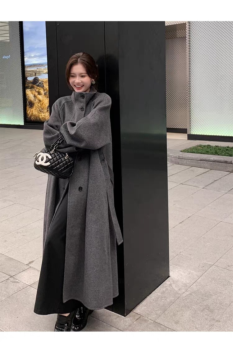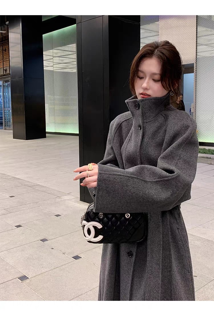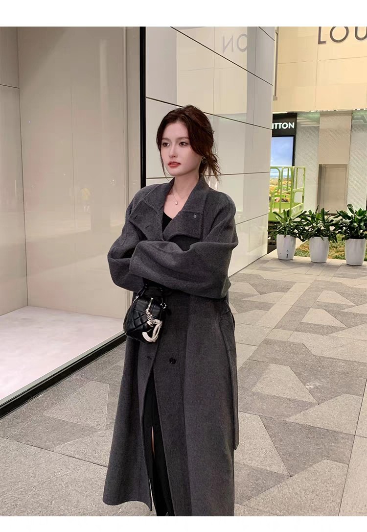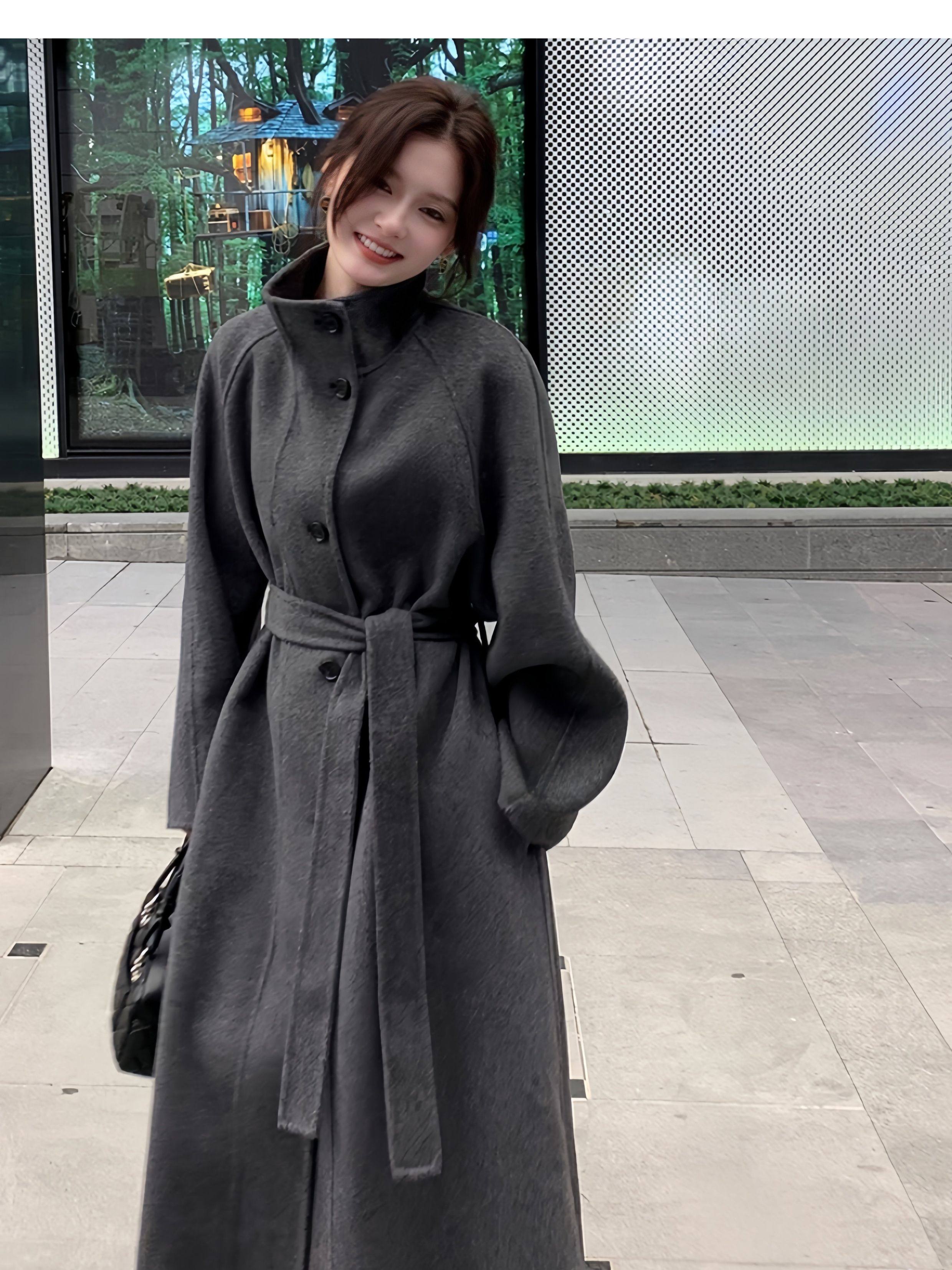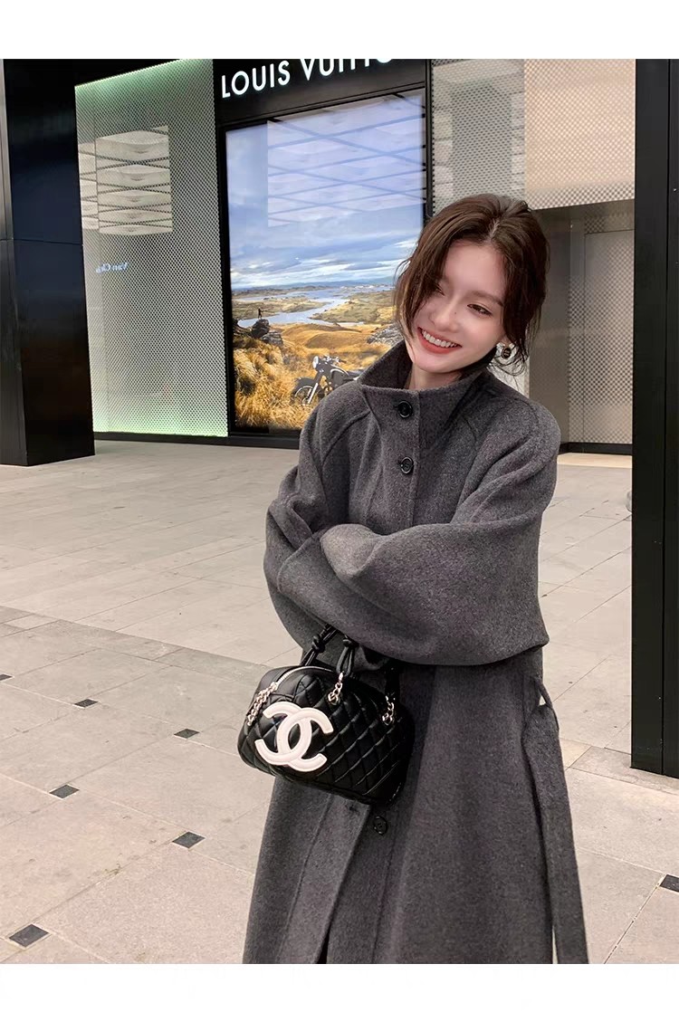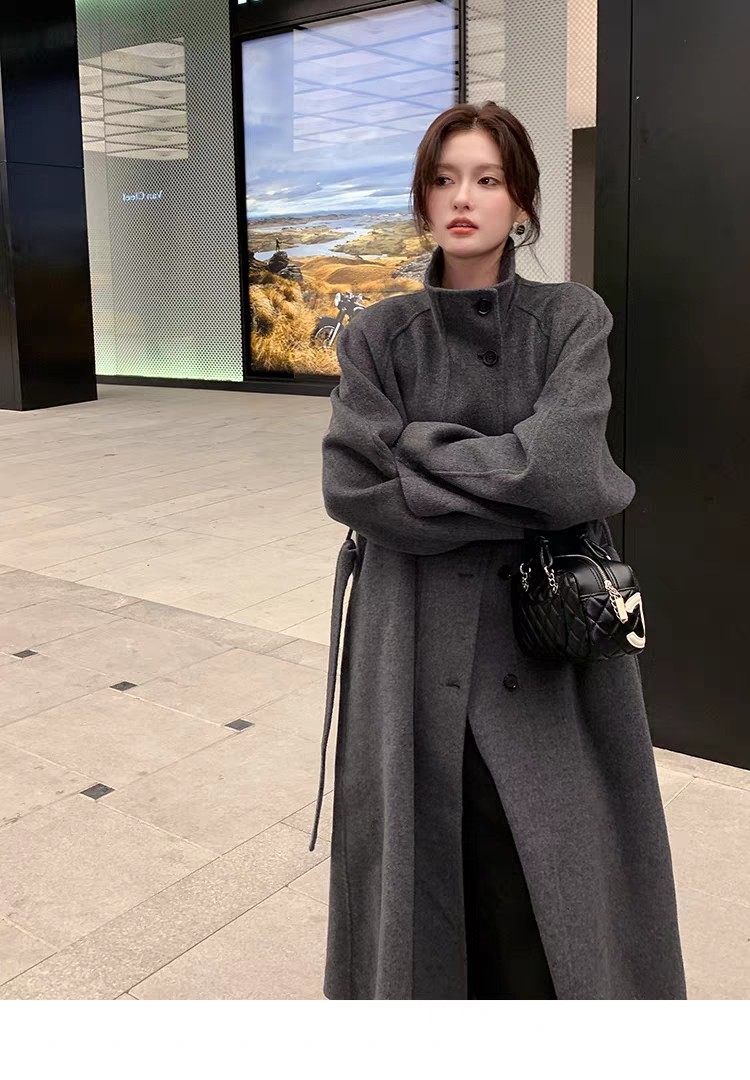 Double-Sided Cashmere Coat for Women 2025 Autumn and Winter New Style High-End Korean Style Stand-Up Collar Lace-Up Mid-Length Woolen Coat