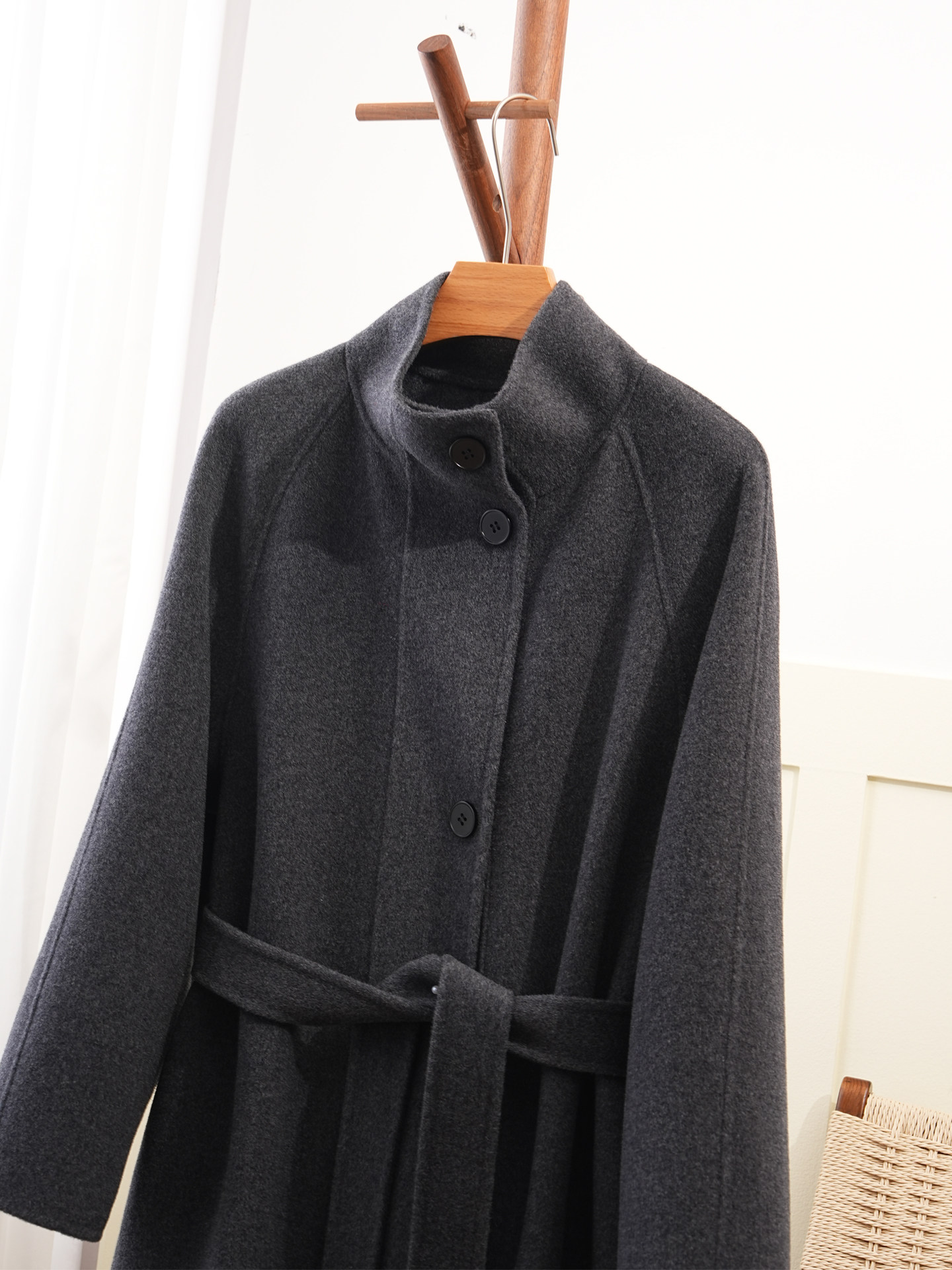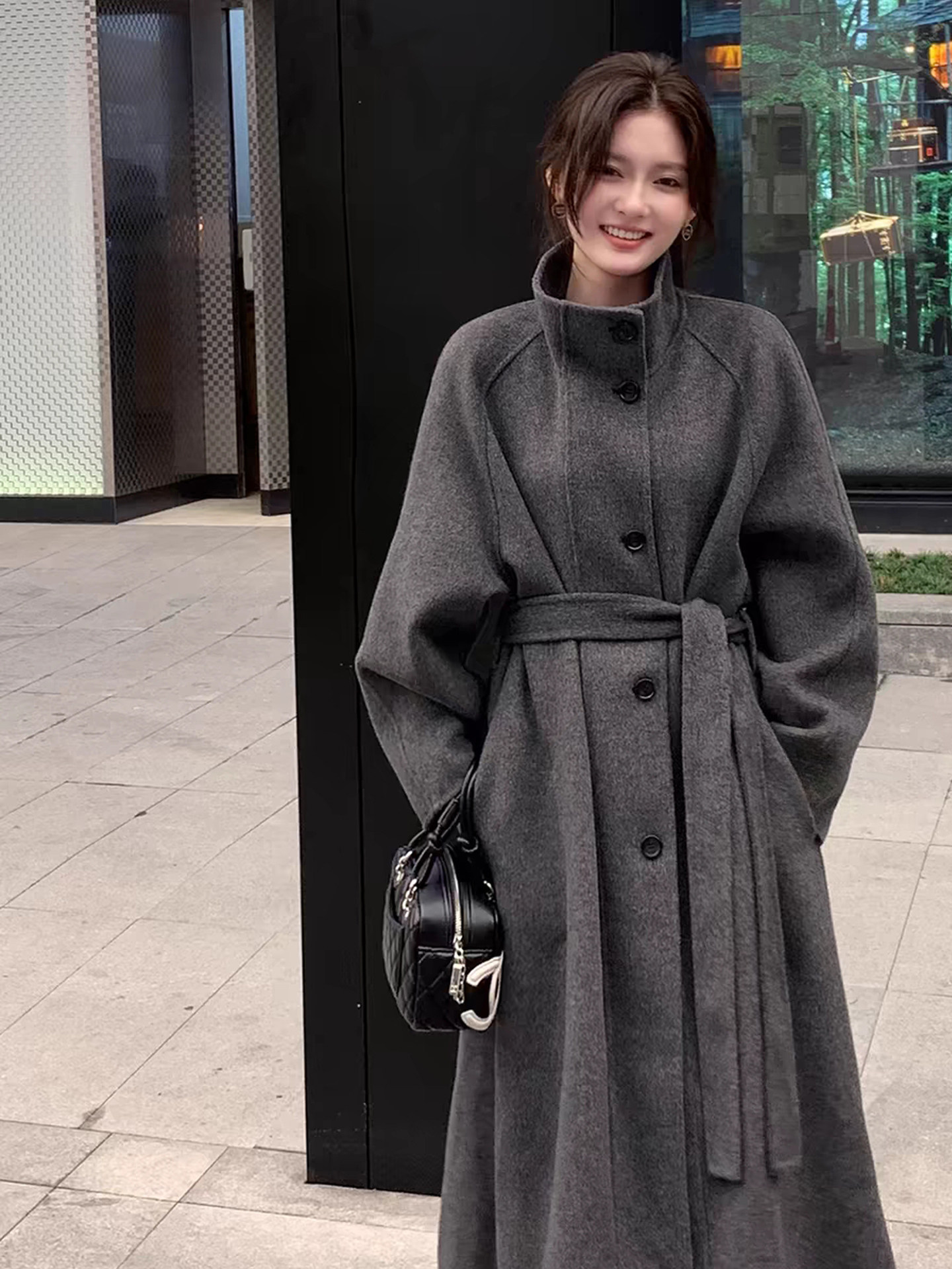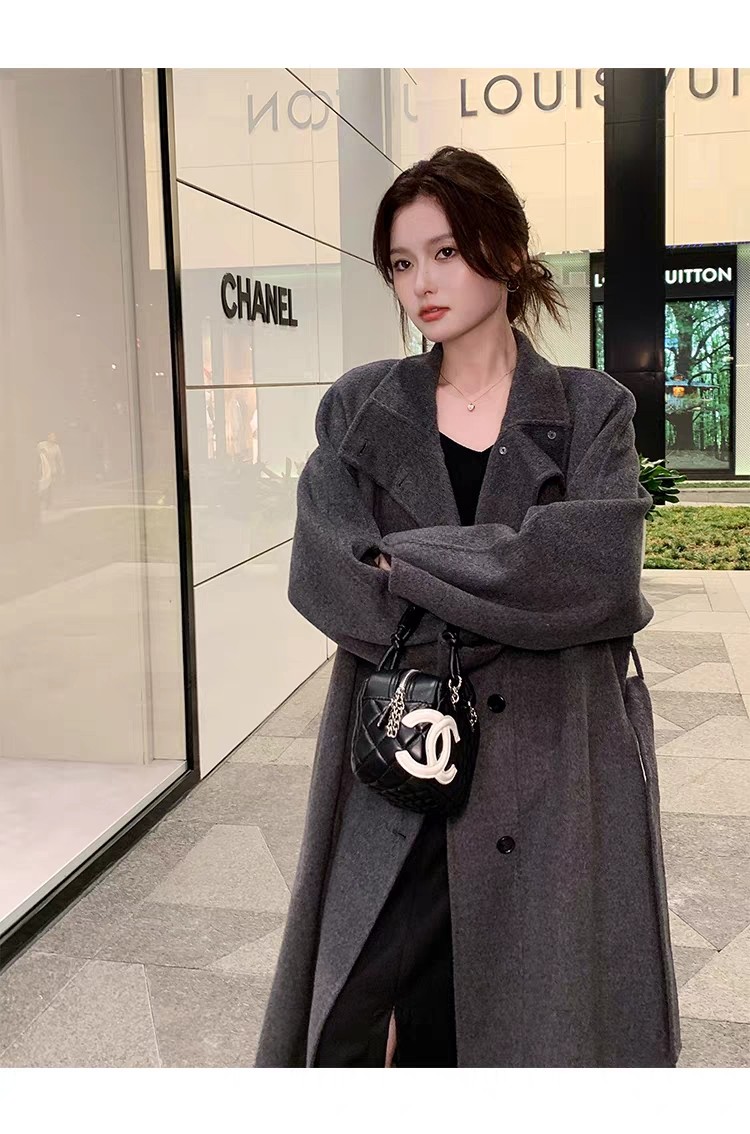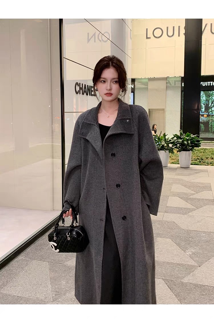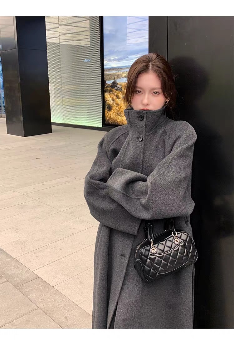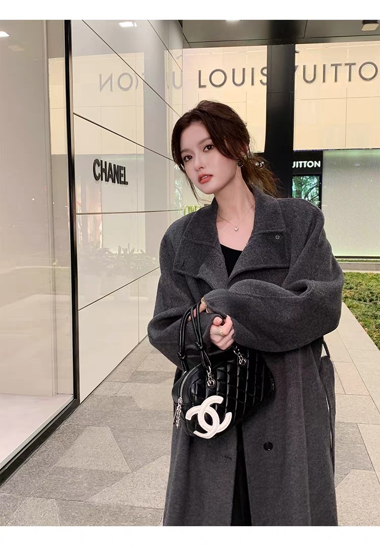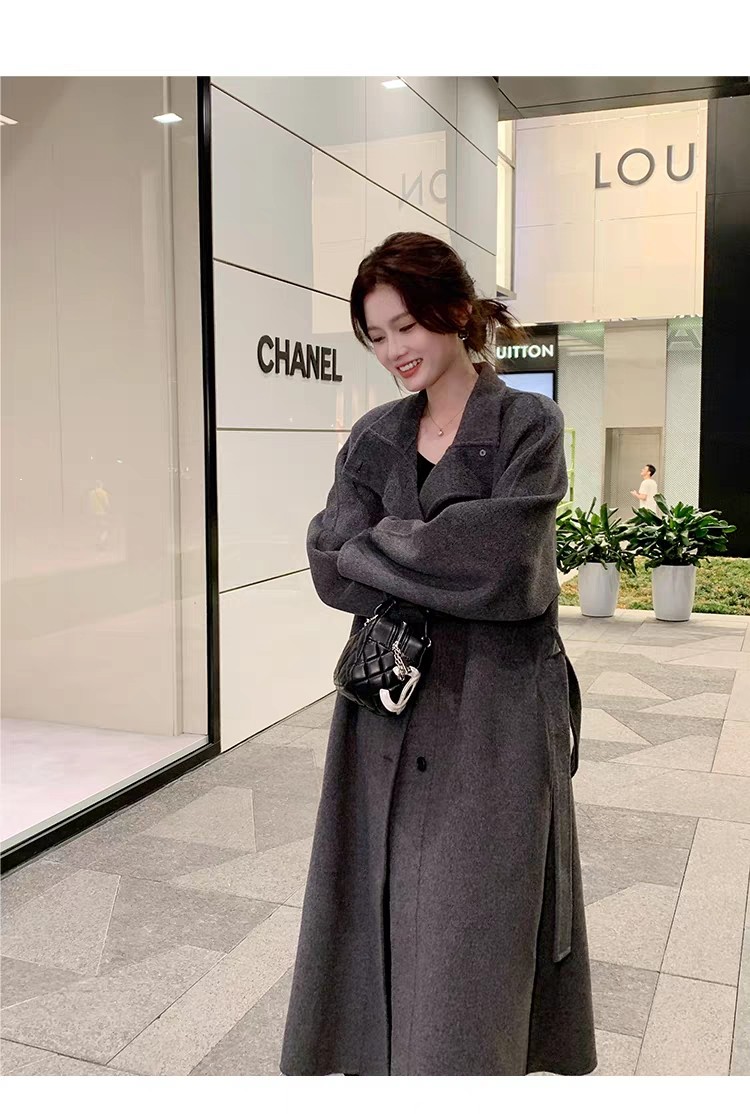 Double-Sided Cashmere Coat for Women 2025 Autumn and Winter New Style High-End Korean Style Stand-Up Collar Lace-Up Mid-Length Woolen Coat