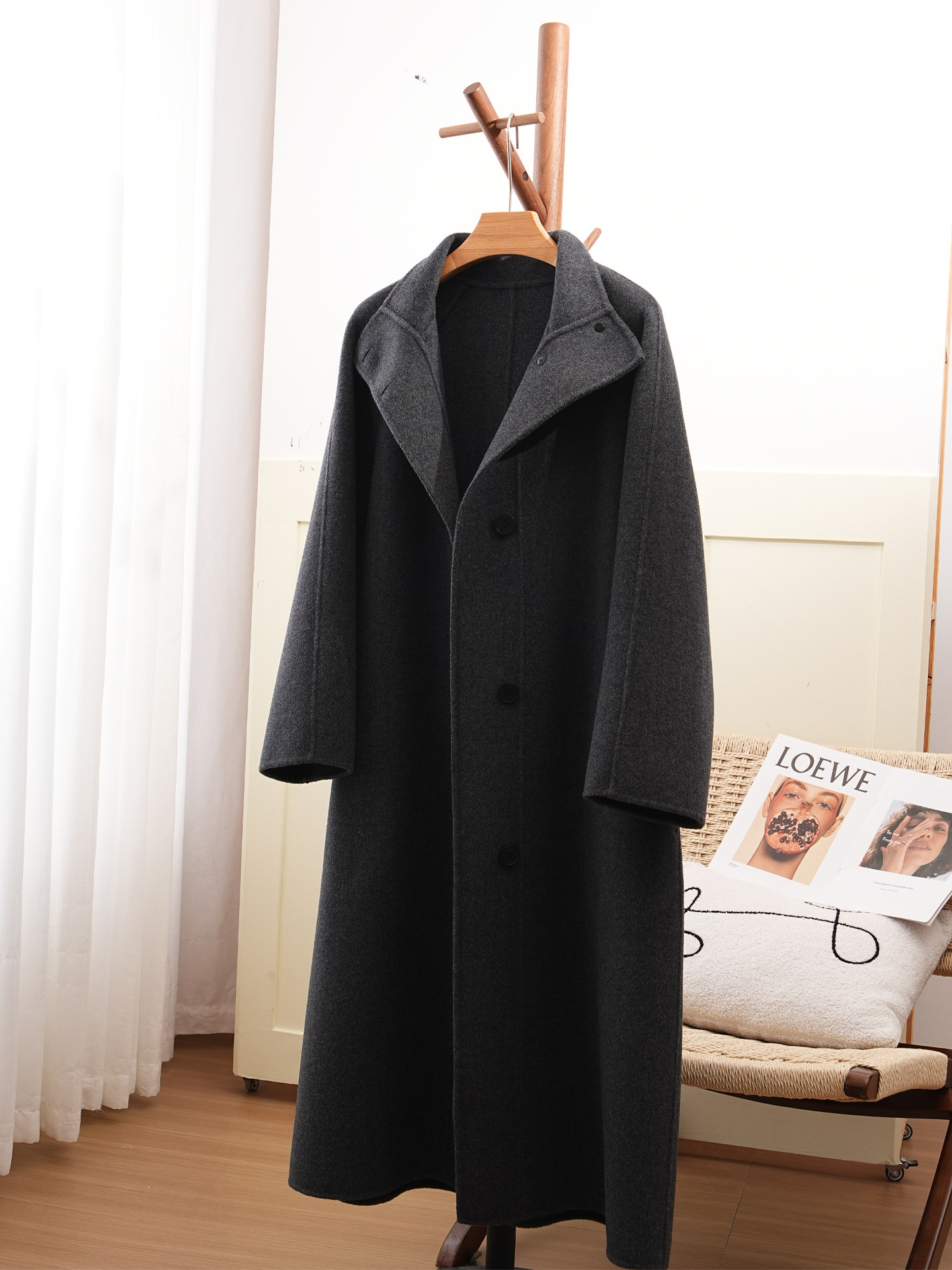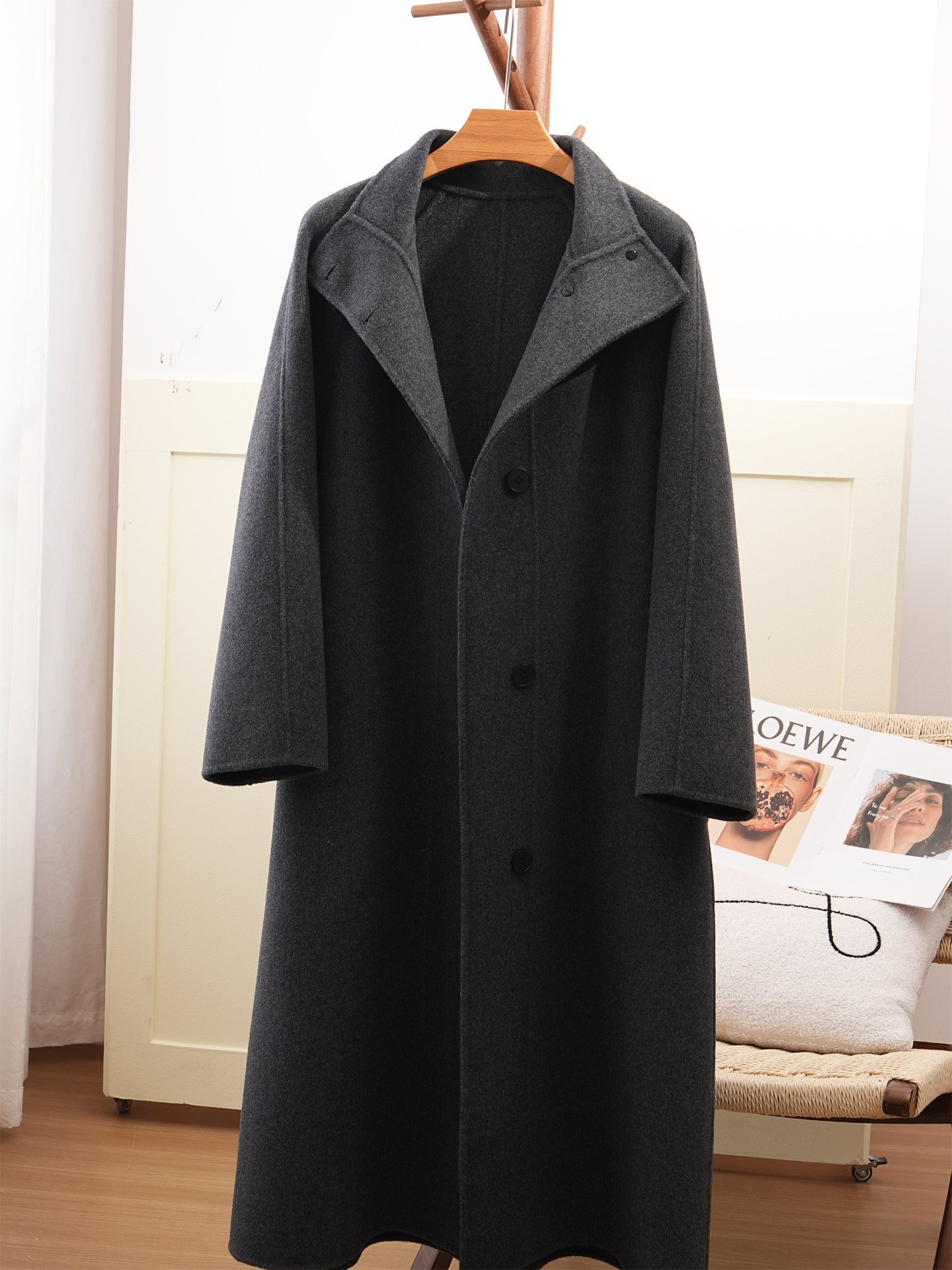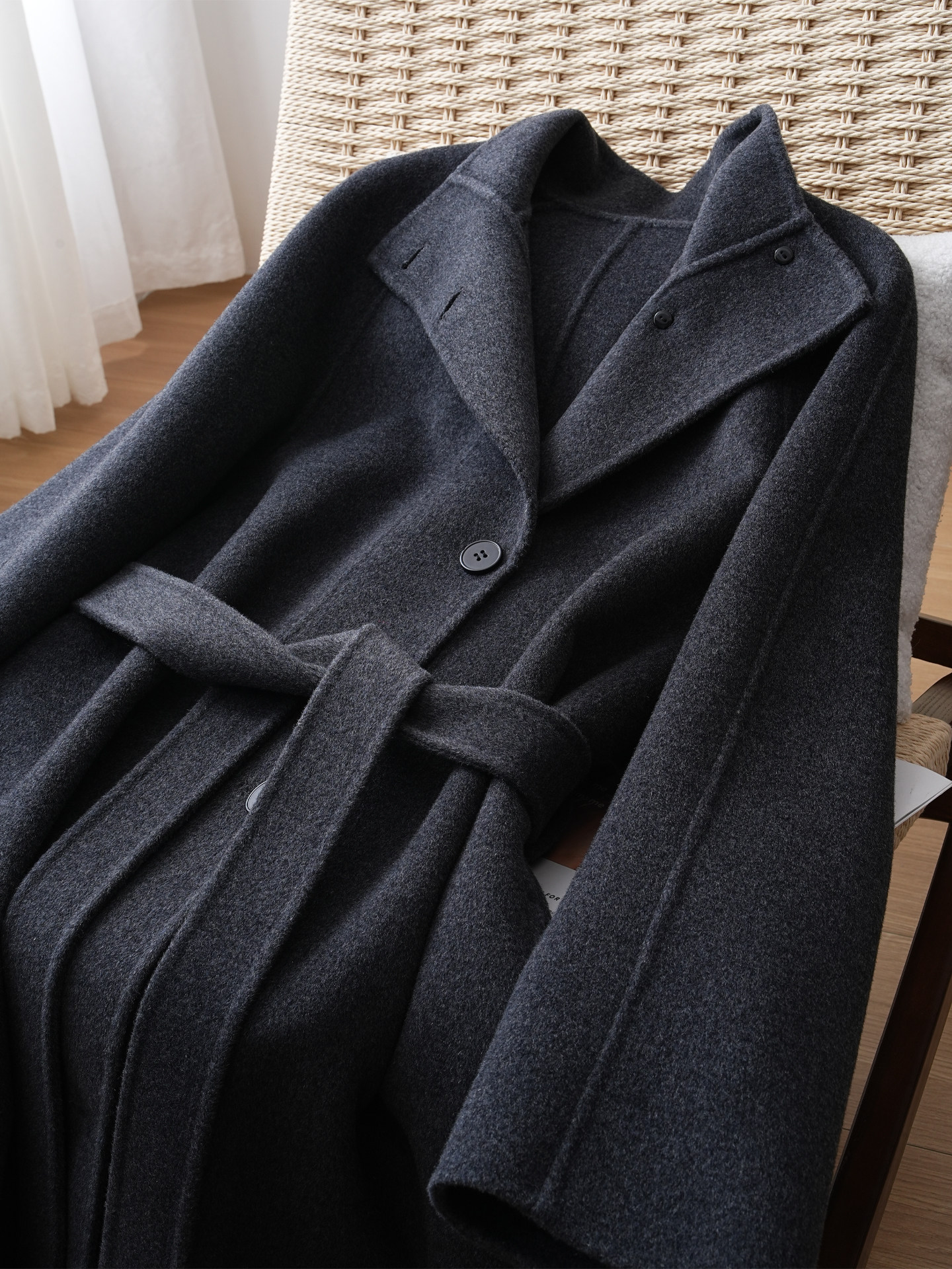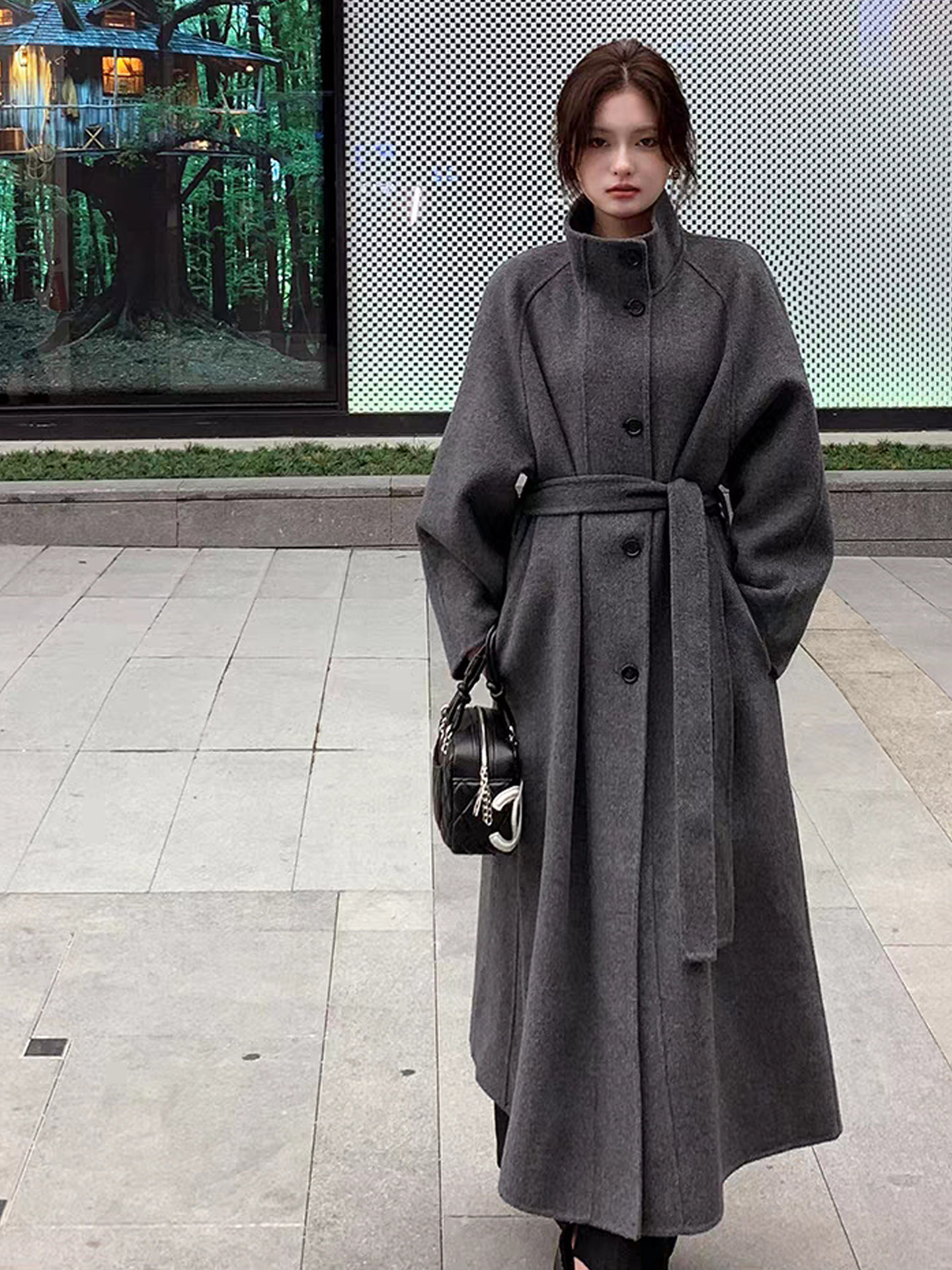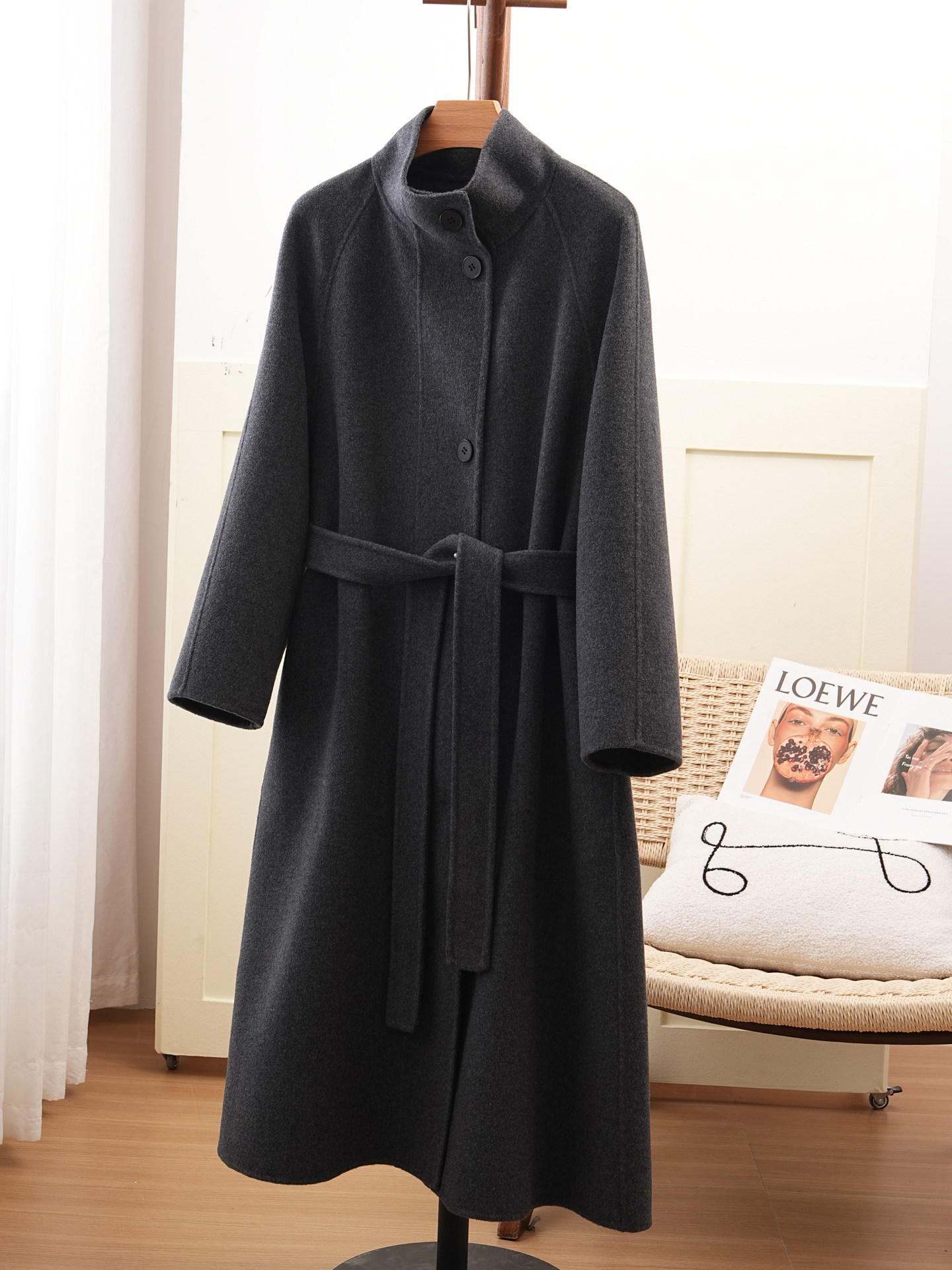 Double-Sided Cashmere Coat for Women 2025 Autumn and Winter New Style High-End Korean Style Stand-Up Collar Lace-Up Mid-Length Woolen Coat