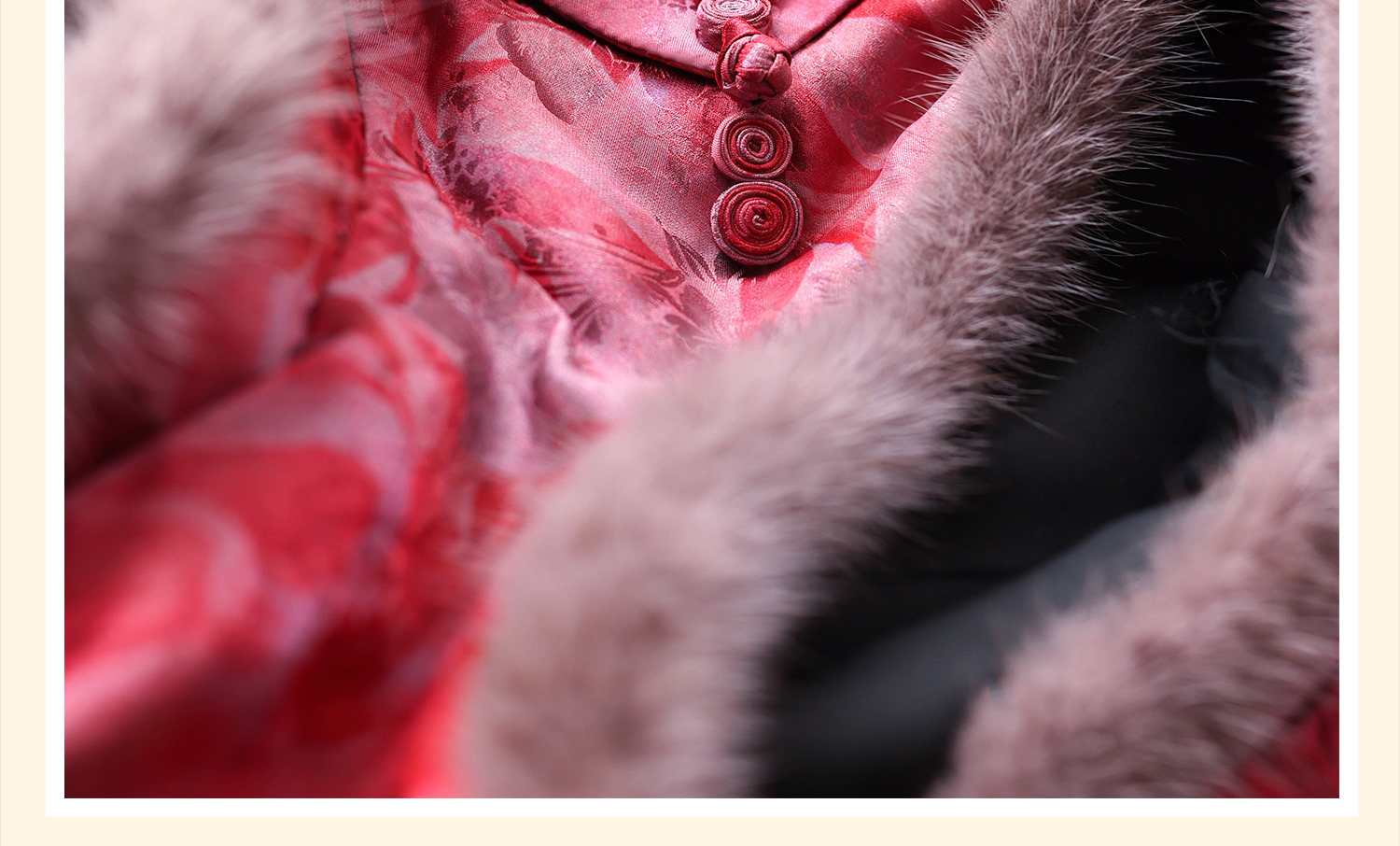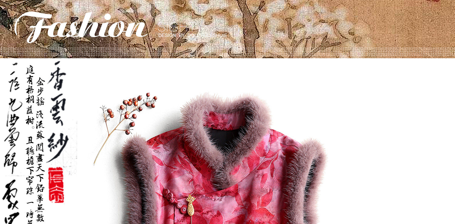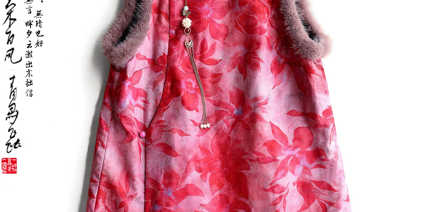 Yunshu Original Interwoven Fragrant Cloud Silk New Chinese Style National Wind Mink Fur Stand Collar Floral Button Padded Vest Dress for Winter