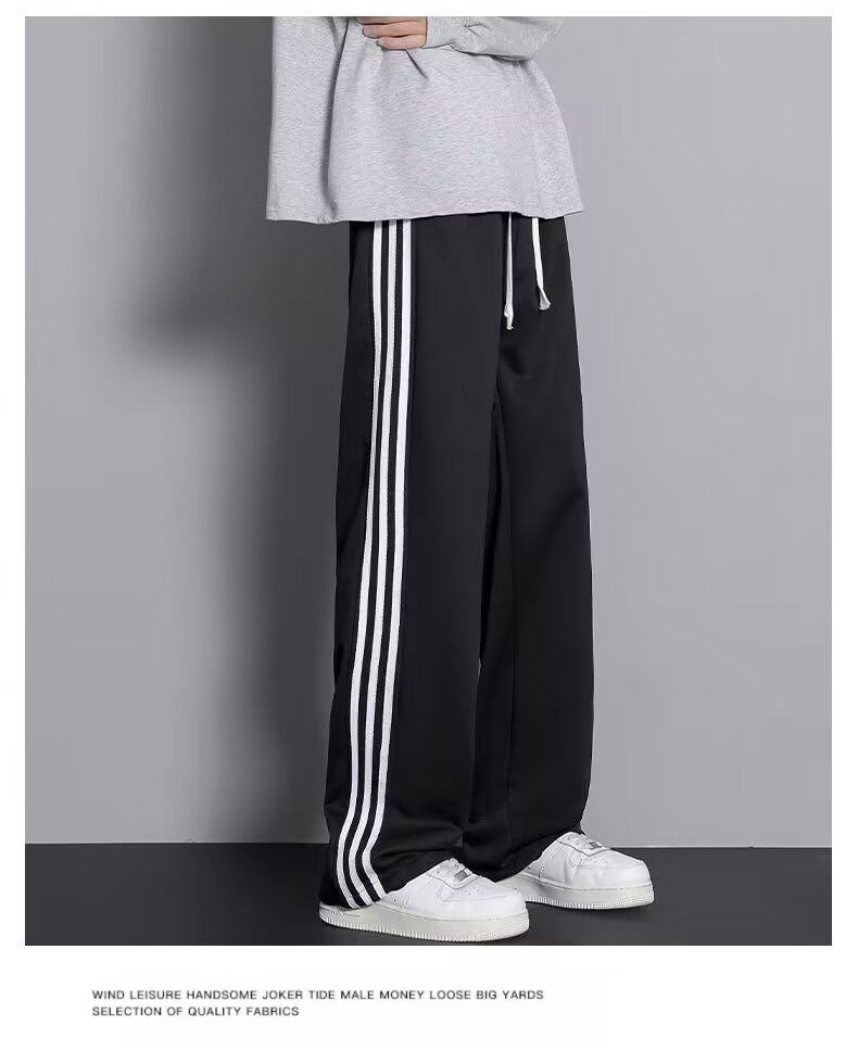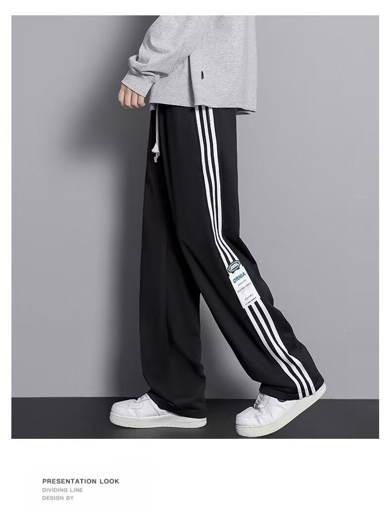 Japanese-Style Side-Striped Sports Sweatpants for Men, Spring and Summer Thin Striped Straight-Leg Pants, Drapey Wide-Leg Casual Pants