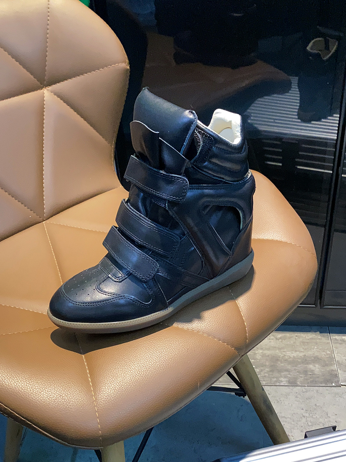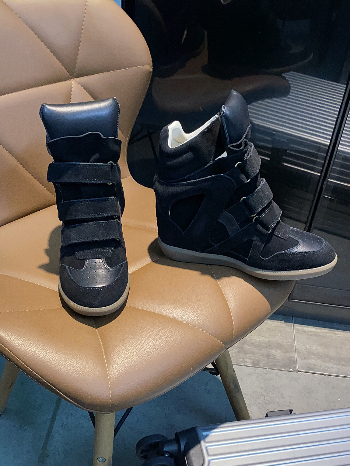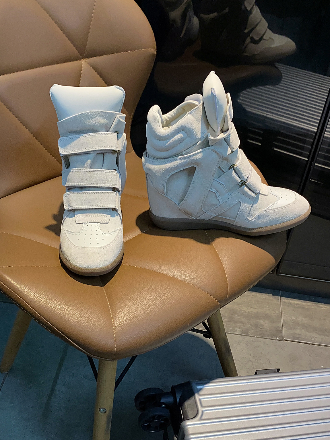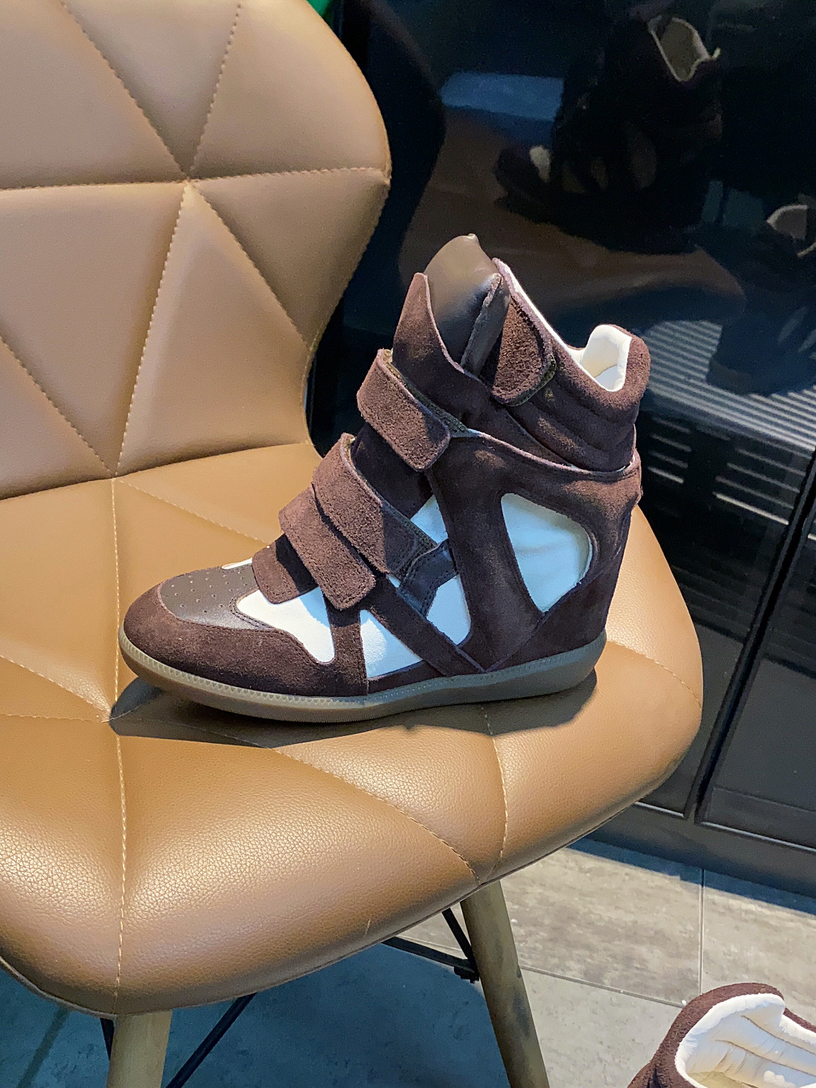 European and American Classic Genuine Leather Velcro Color-Block High-Top Shoes for Women, Thick-Soled Height-Increasing Casual Sneakers, Dad Shoes