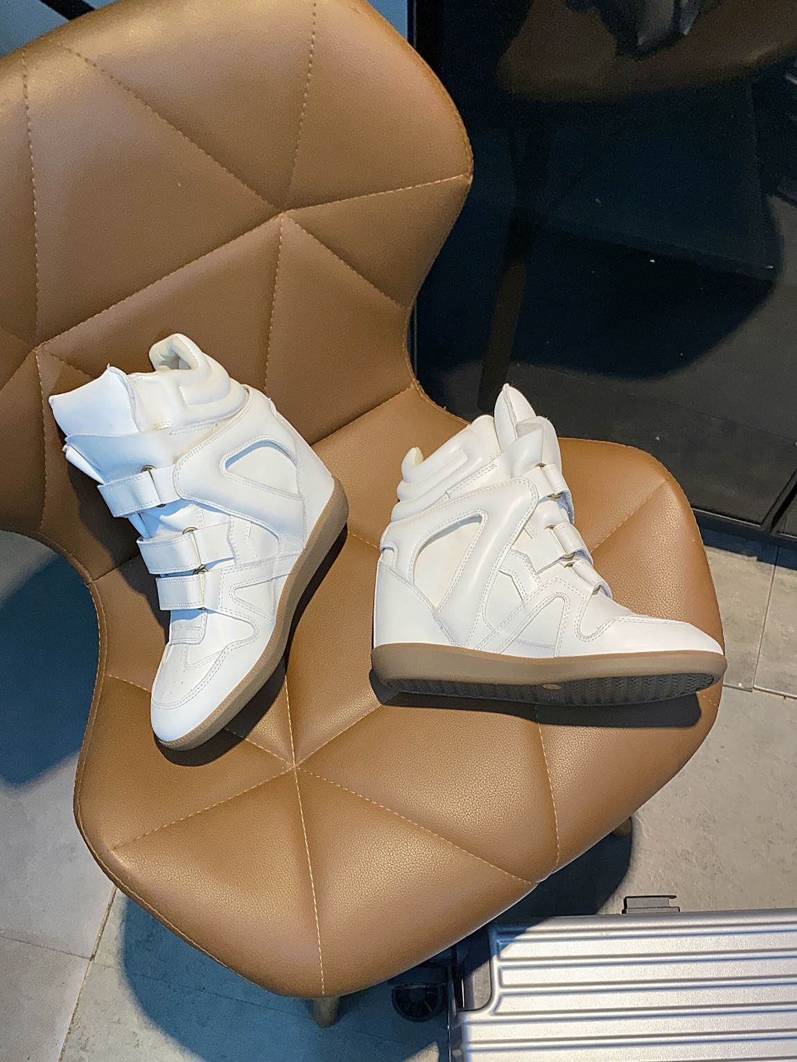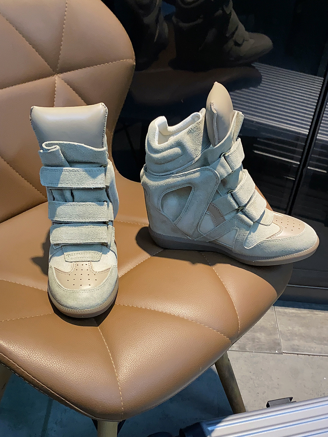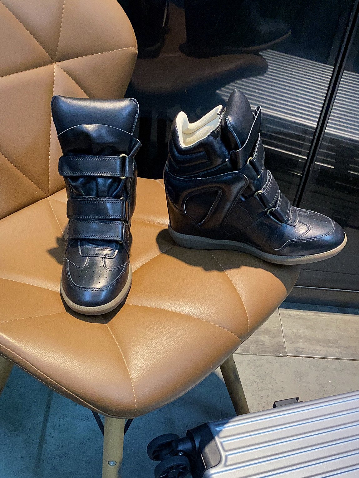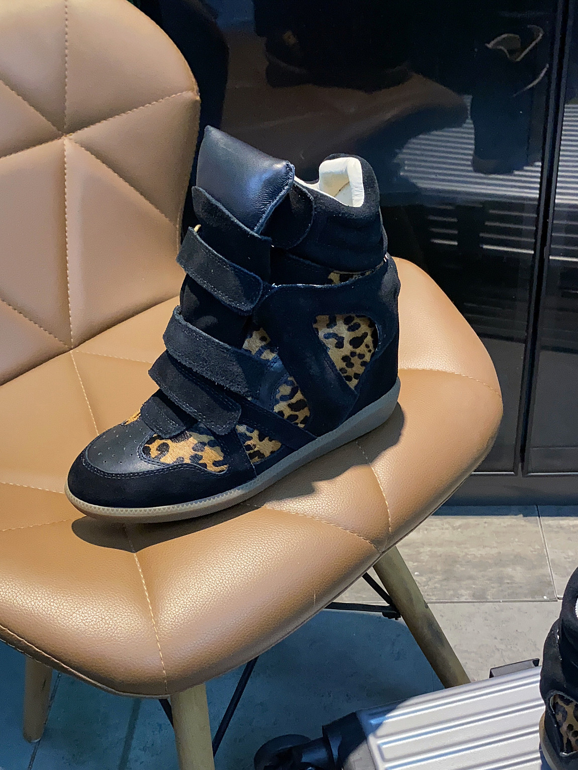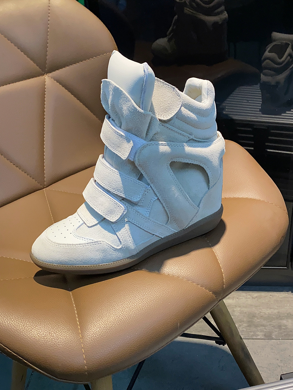 European and American Classic Genuine Leather Velcro Color-Block High-Top Shoes for Women, Thick-Soled Height-Increasing Casual Sneakers, Dad Shoes