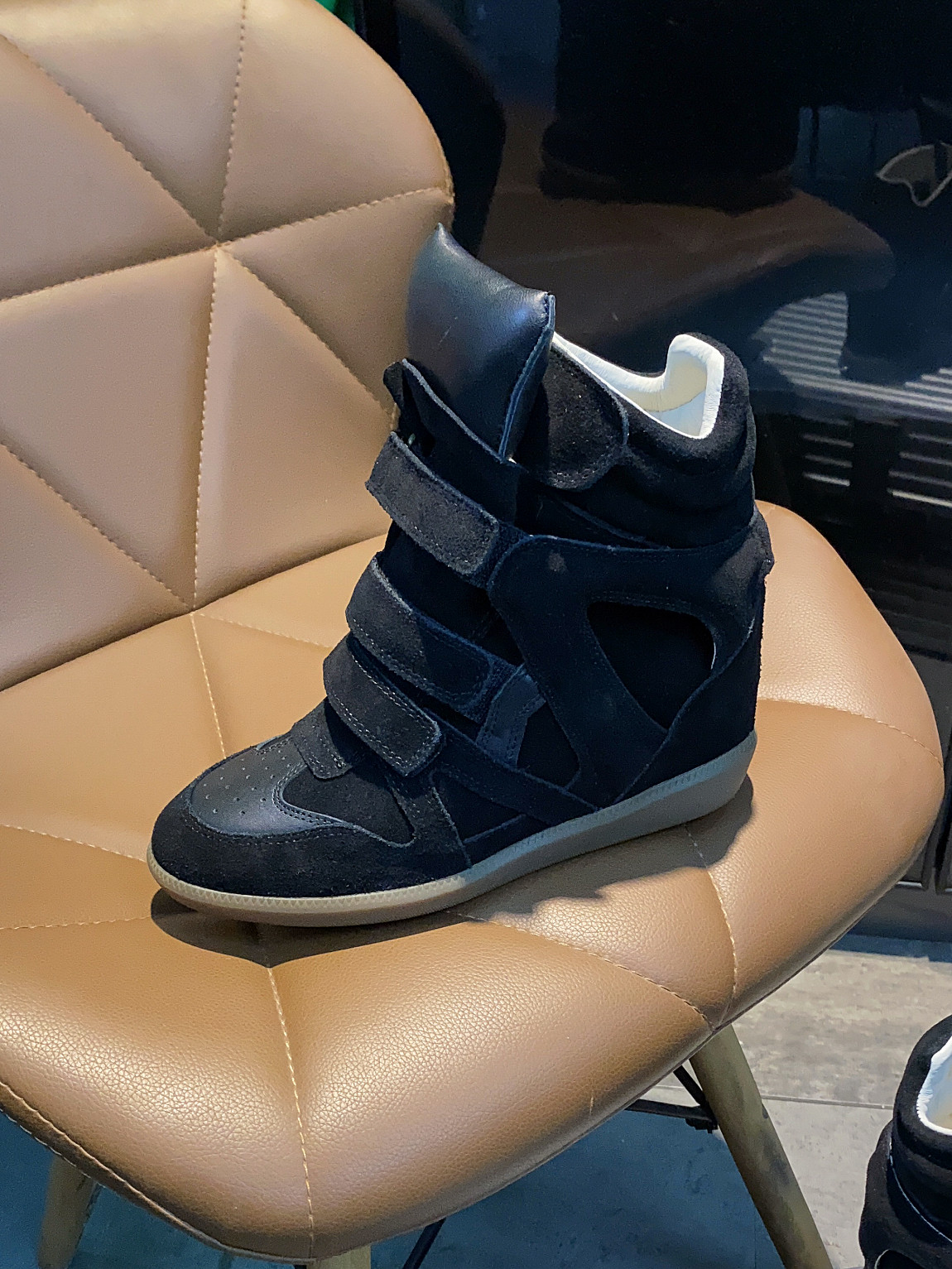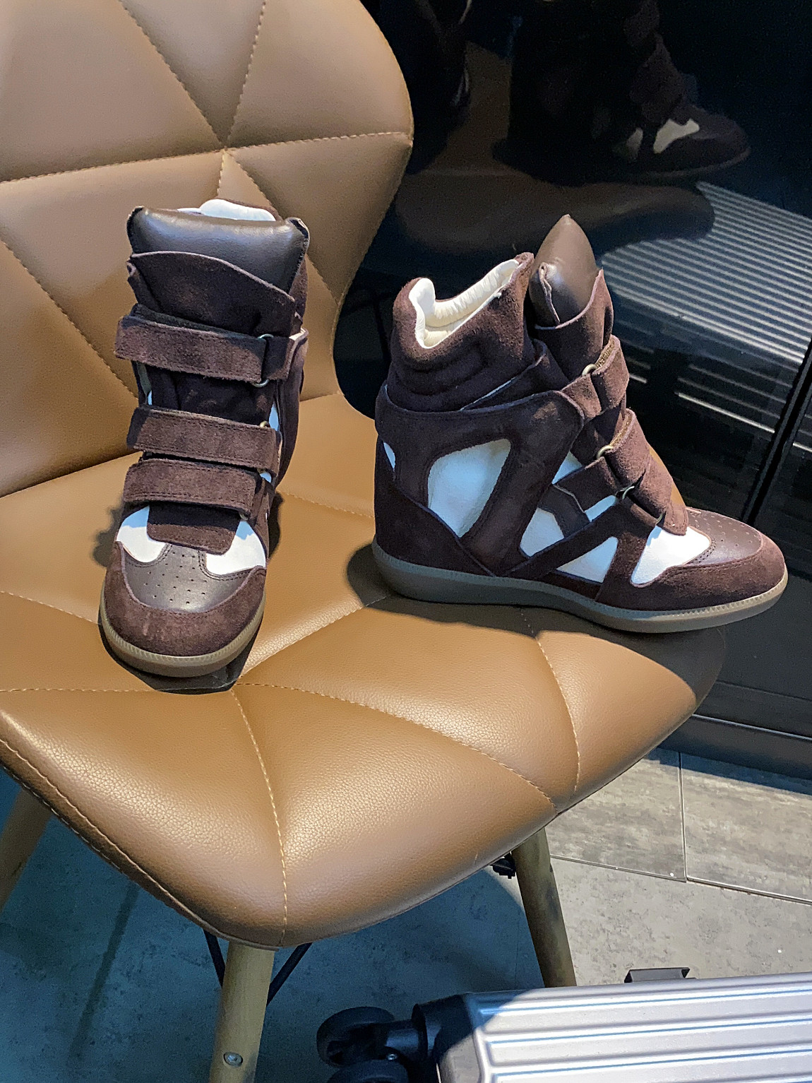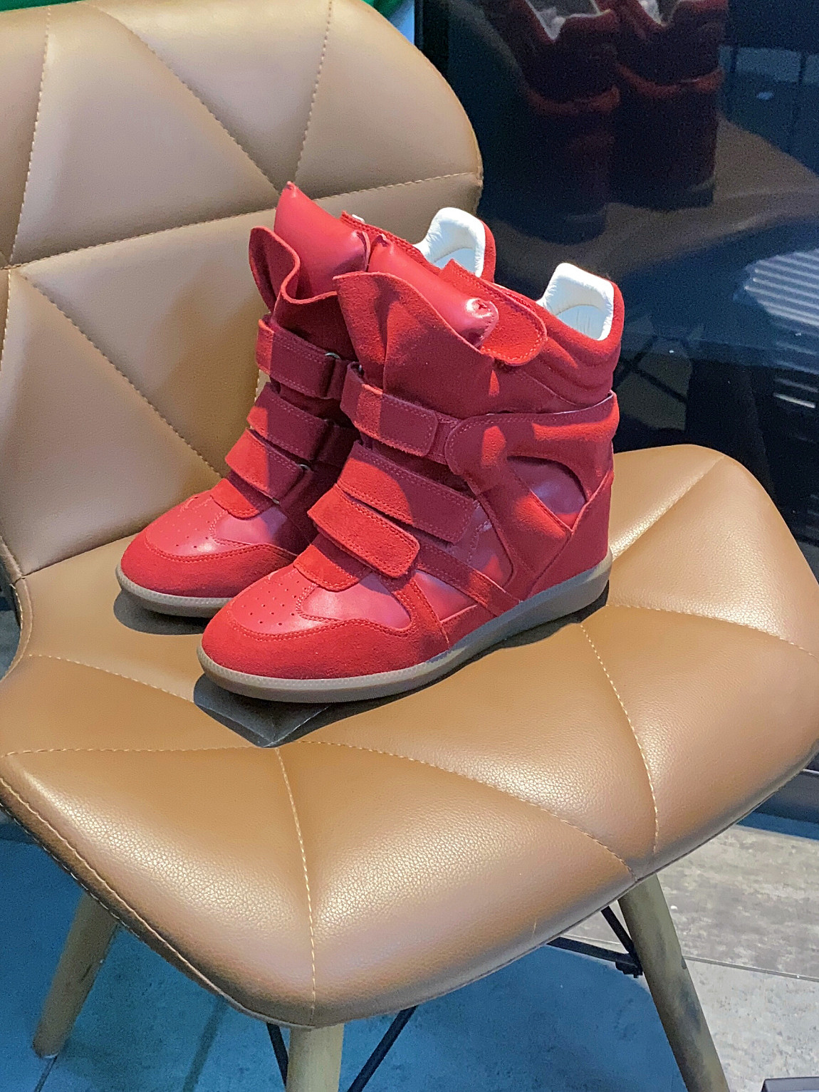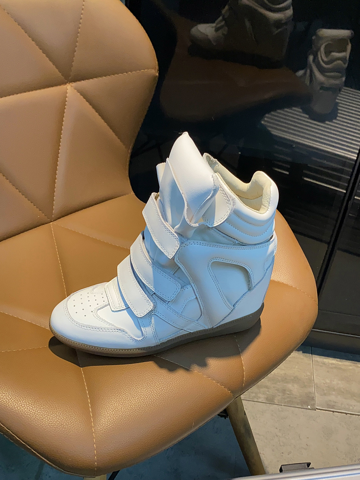 European and American Classic Genuine Leather Velcro Color-Block High-Top Shoes for Women, Thick-Soled Height-Increasing Casual Sneakers, Dad Shoes