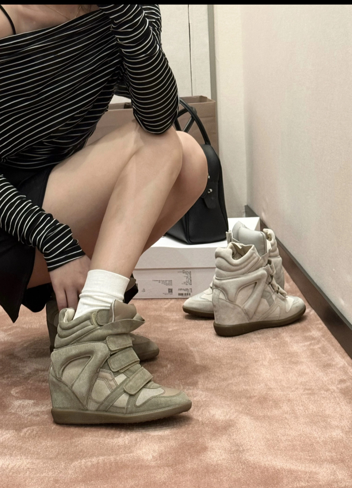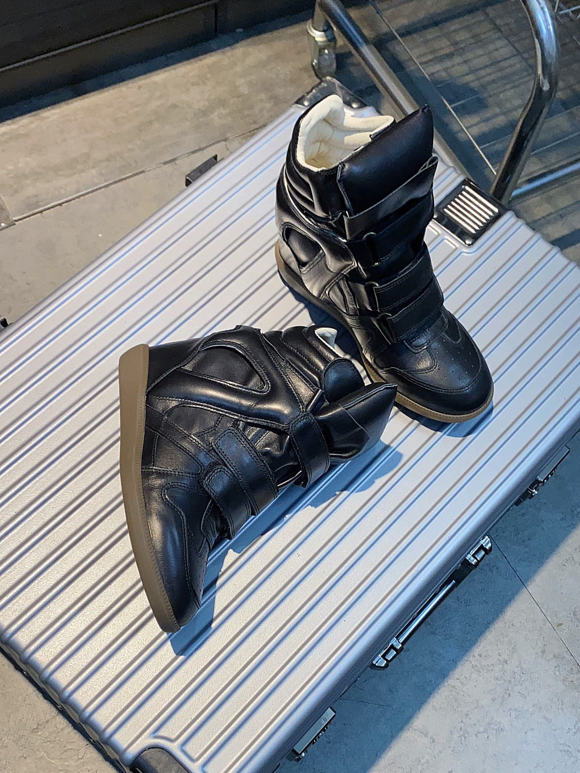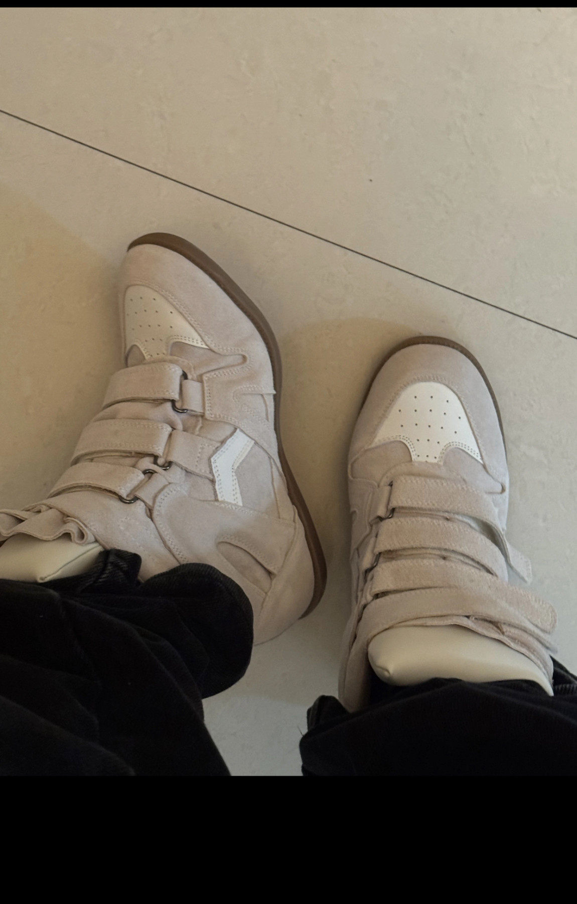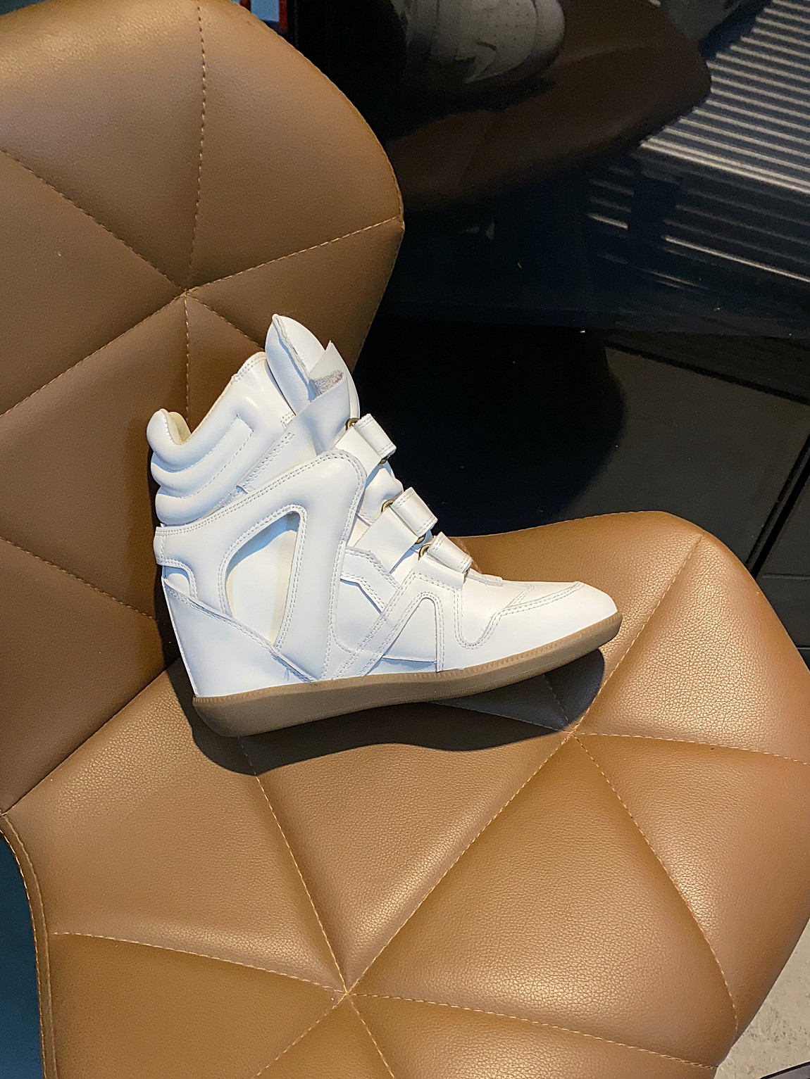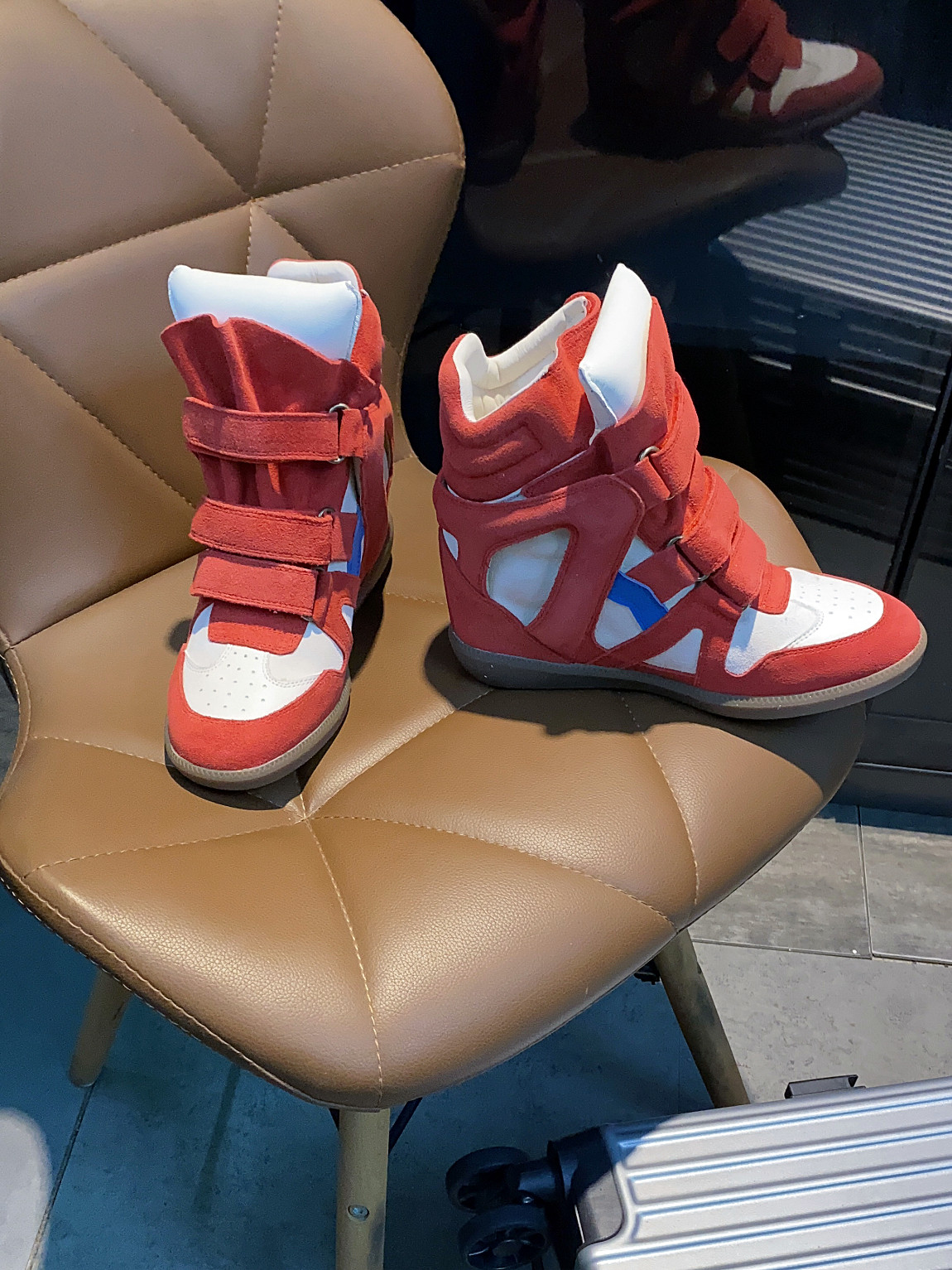 European and American Classic Genuine Leather Velcro Color-Block High-Top Shoes for Women, Thick-Soled Height-Increasing Casual Sneakers, Dad Shoes