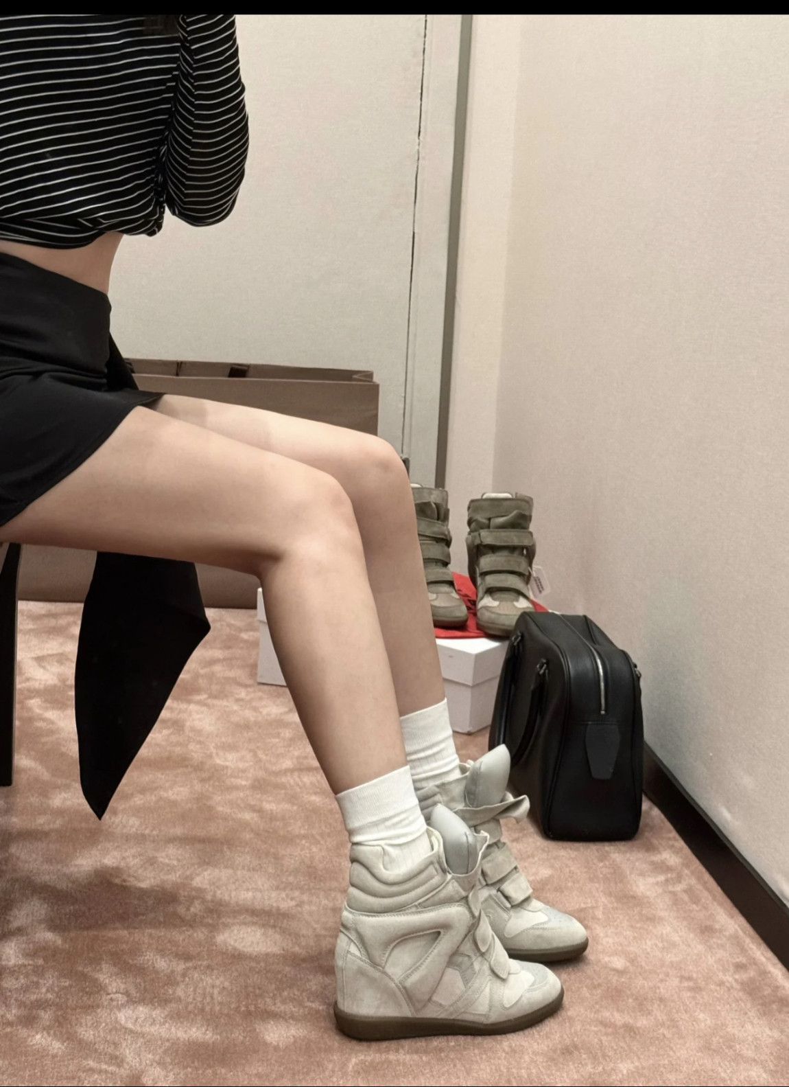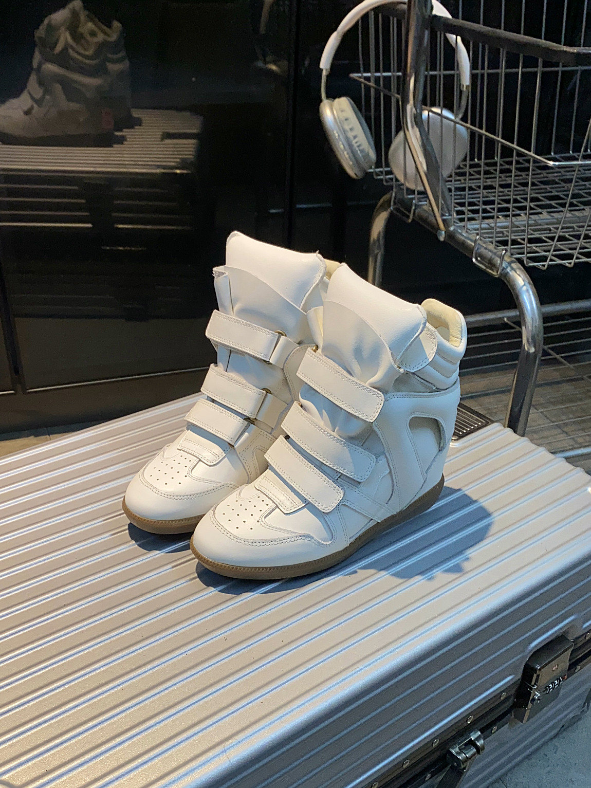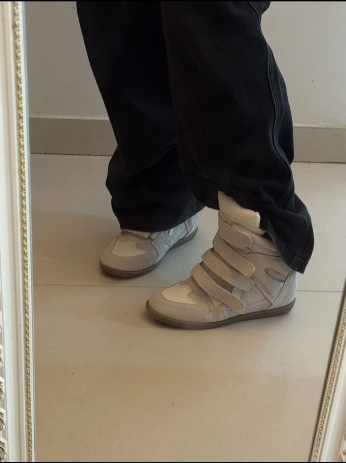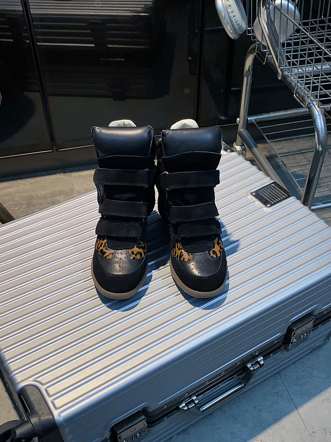 European and American Classic Genuine Leather Velcro Color-Block High-Top Shoes for Women, Thick-Soled Height-Increasing Casual Sneakers, Dad Shoes