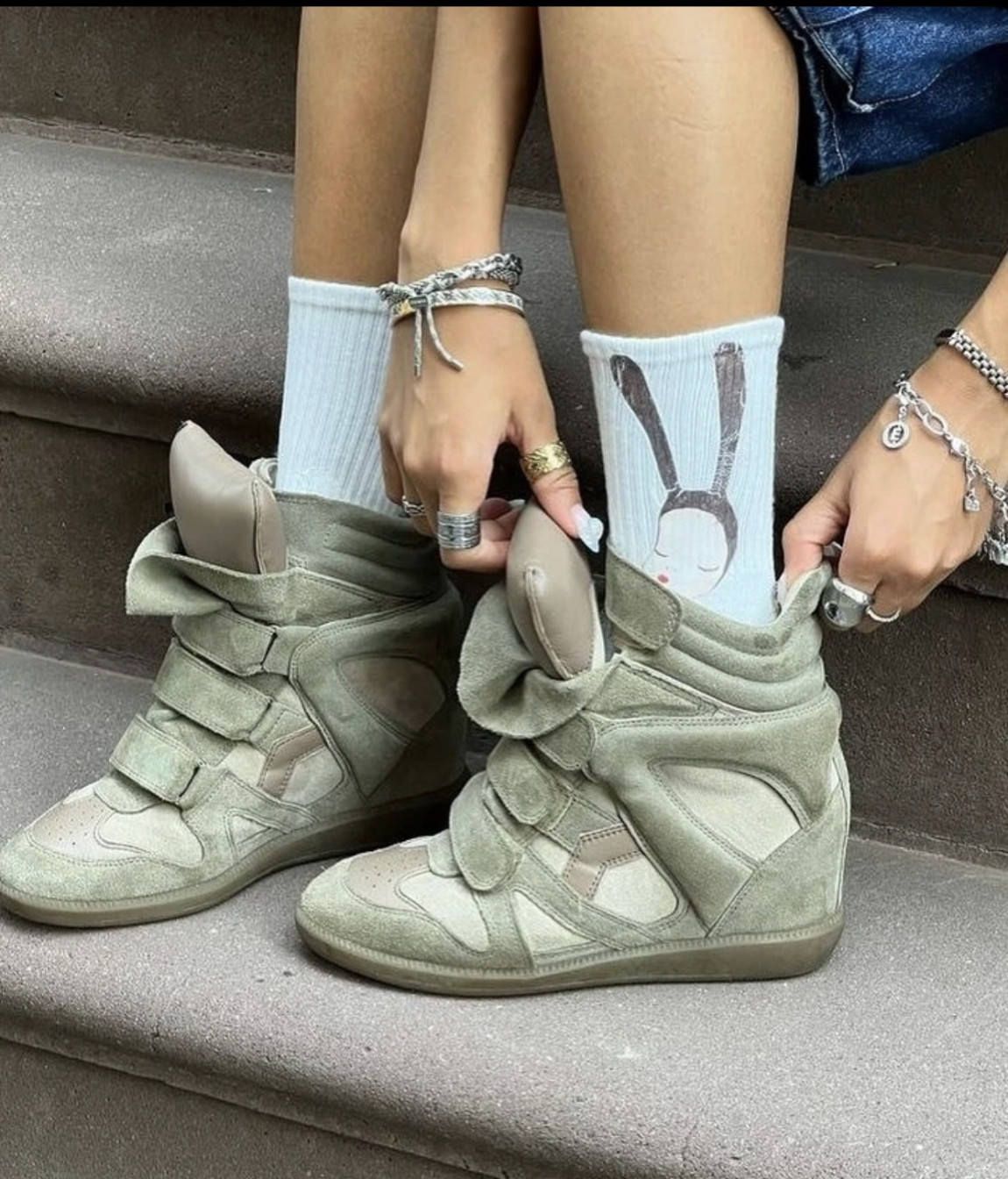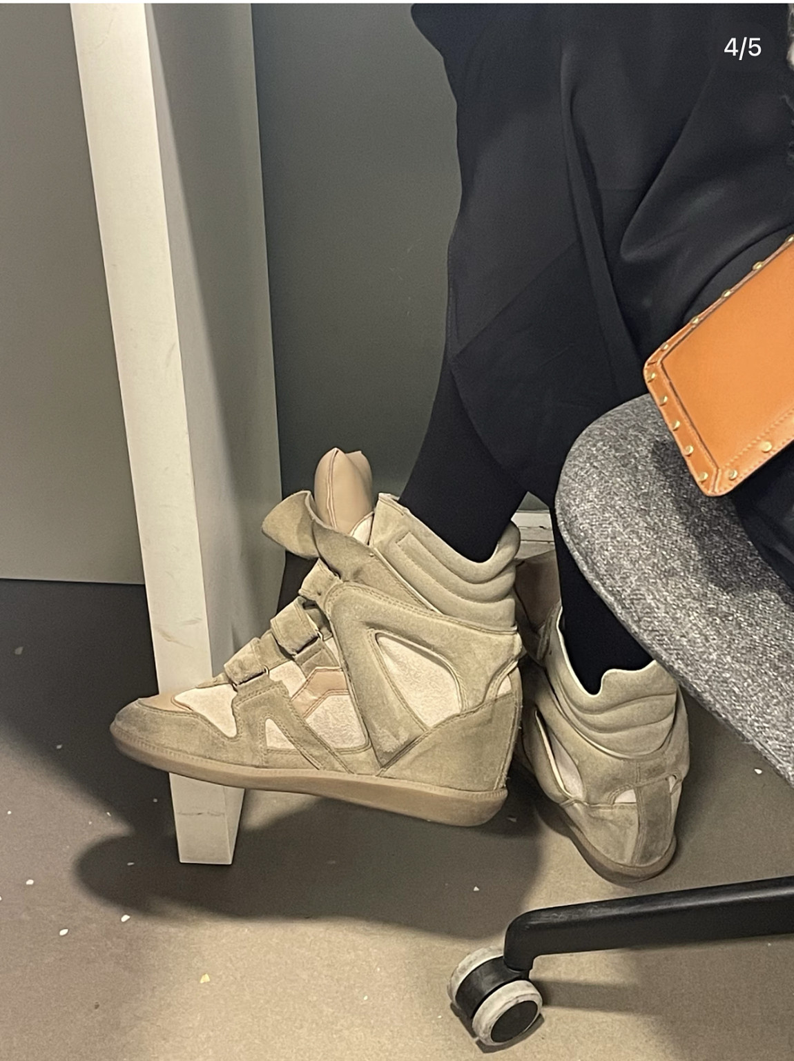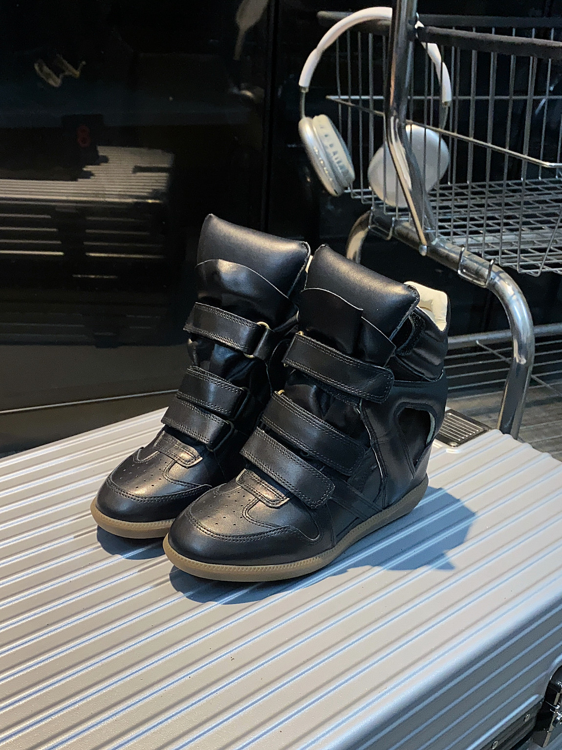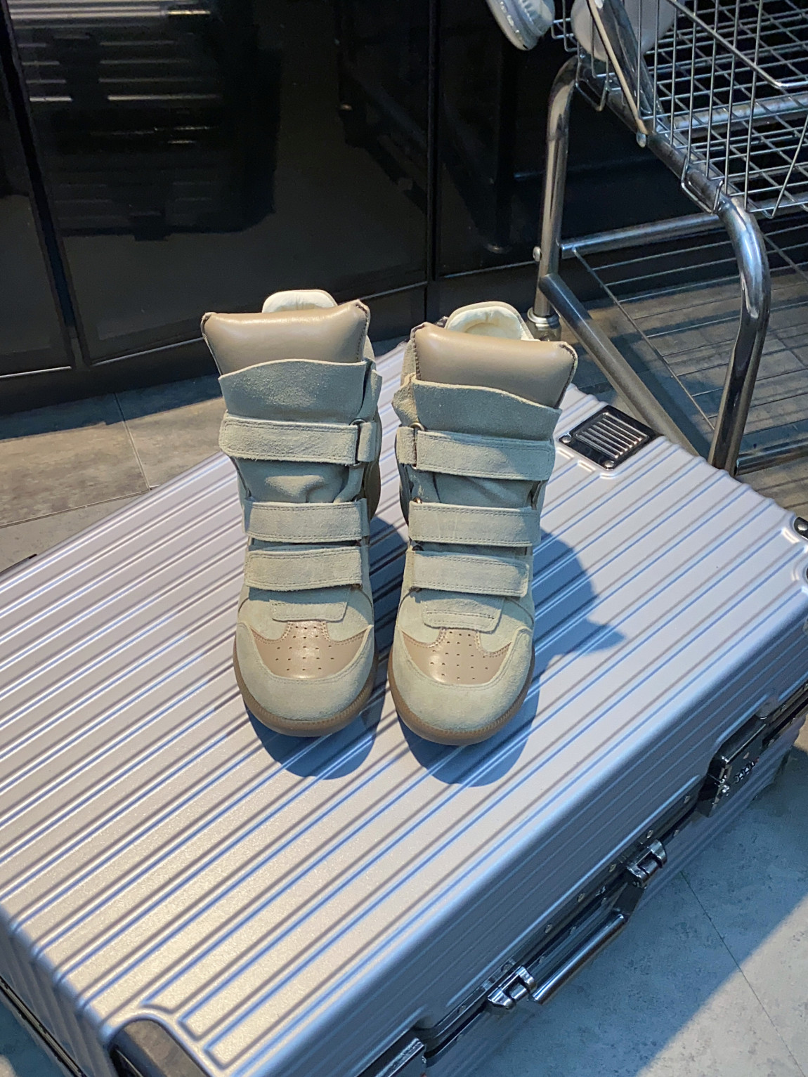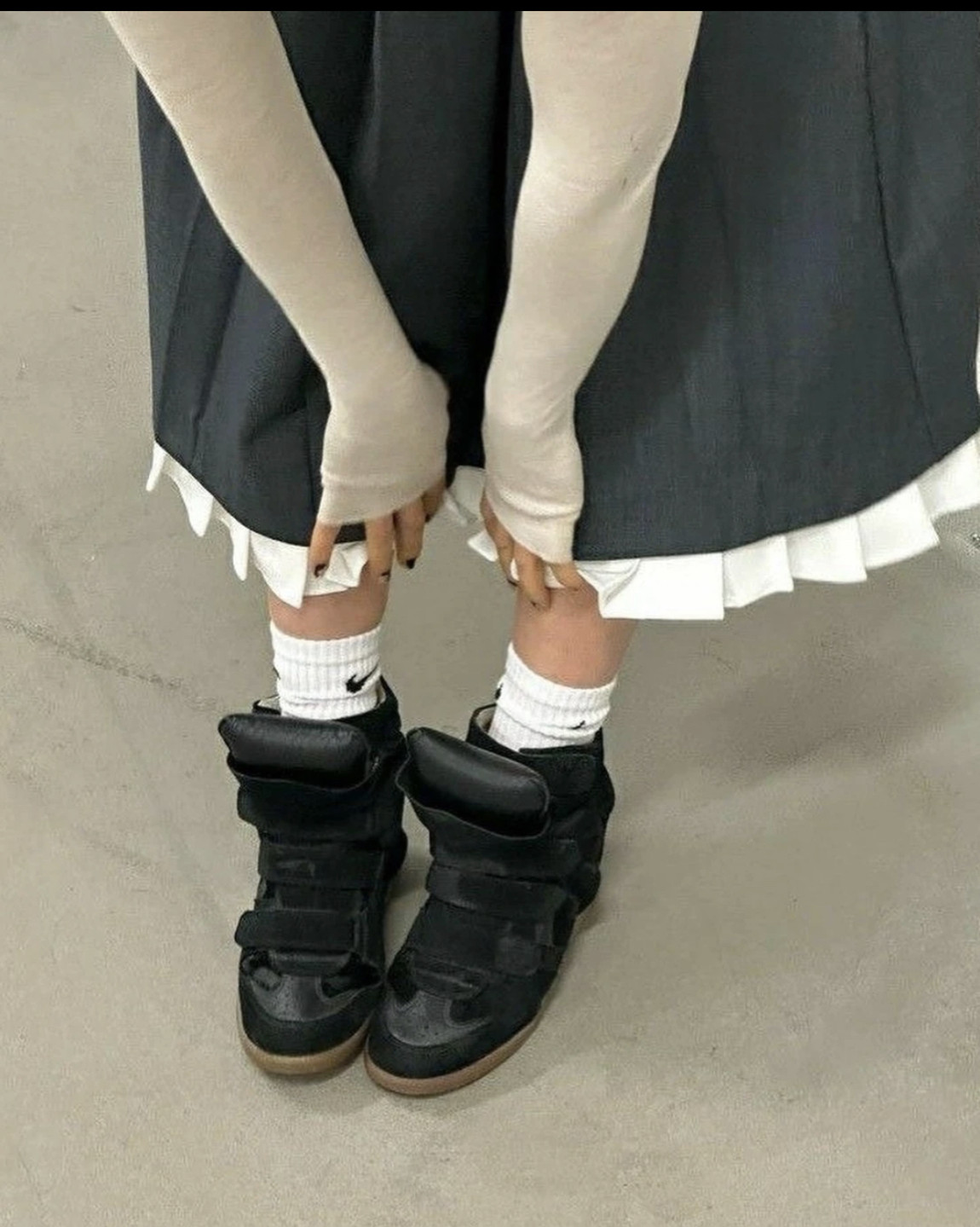 European and American Classic Genuine Leather Velcro Color-Block High-Top Shoes for Women, Thick-Soled Height-Increasing Casual Sneakers, Dad Shoes