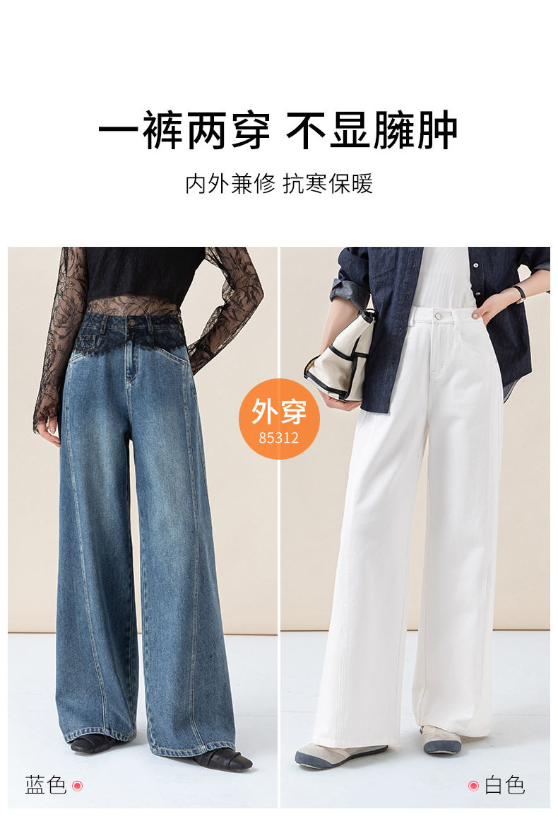 Detachable down Pants for Women, Winter 2025 New Style, High-Waisted, Fleece-Lined, Thickened Duck down Cotton Pants, Wide-Leg Straight Jeans