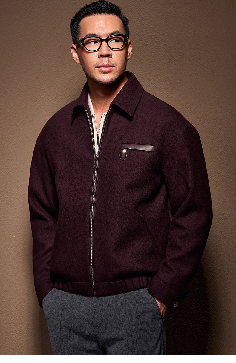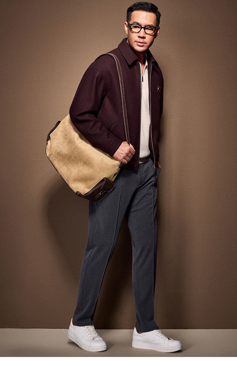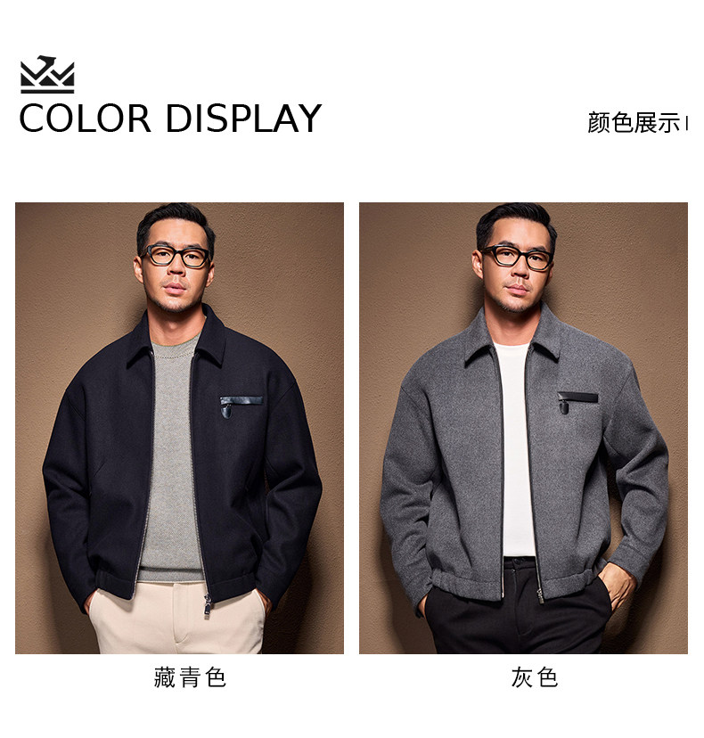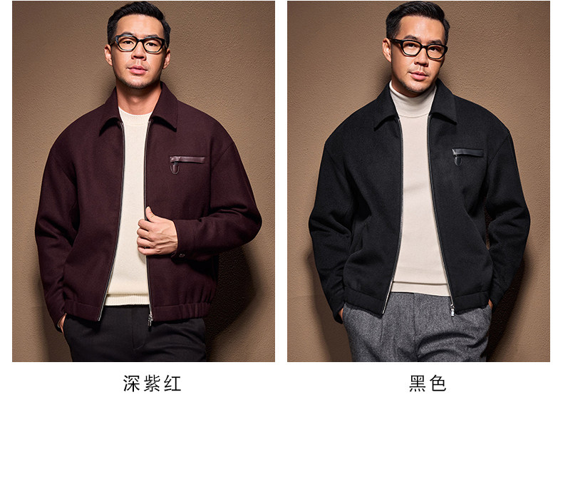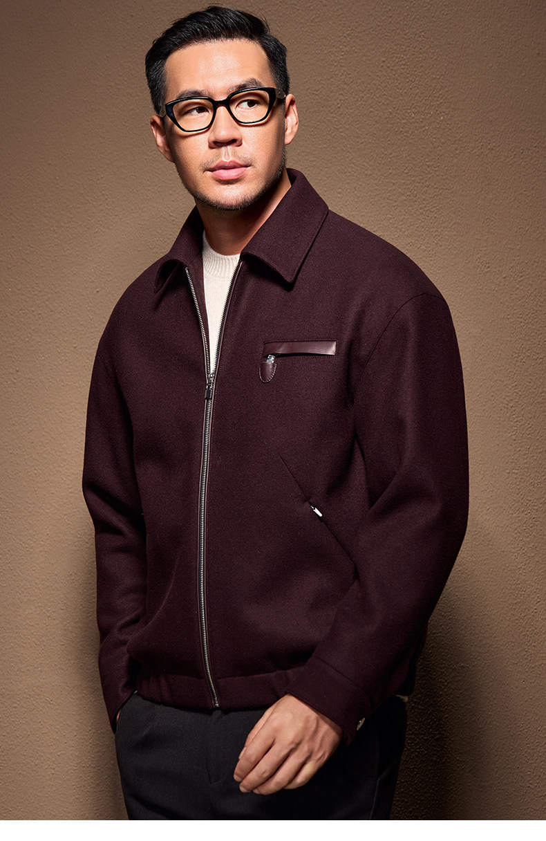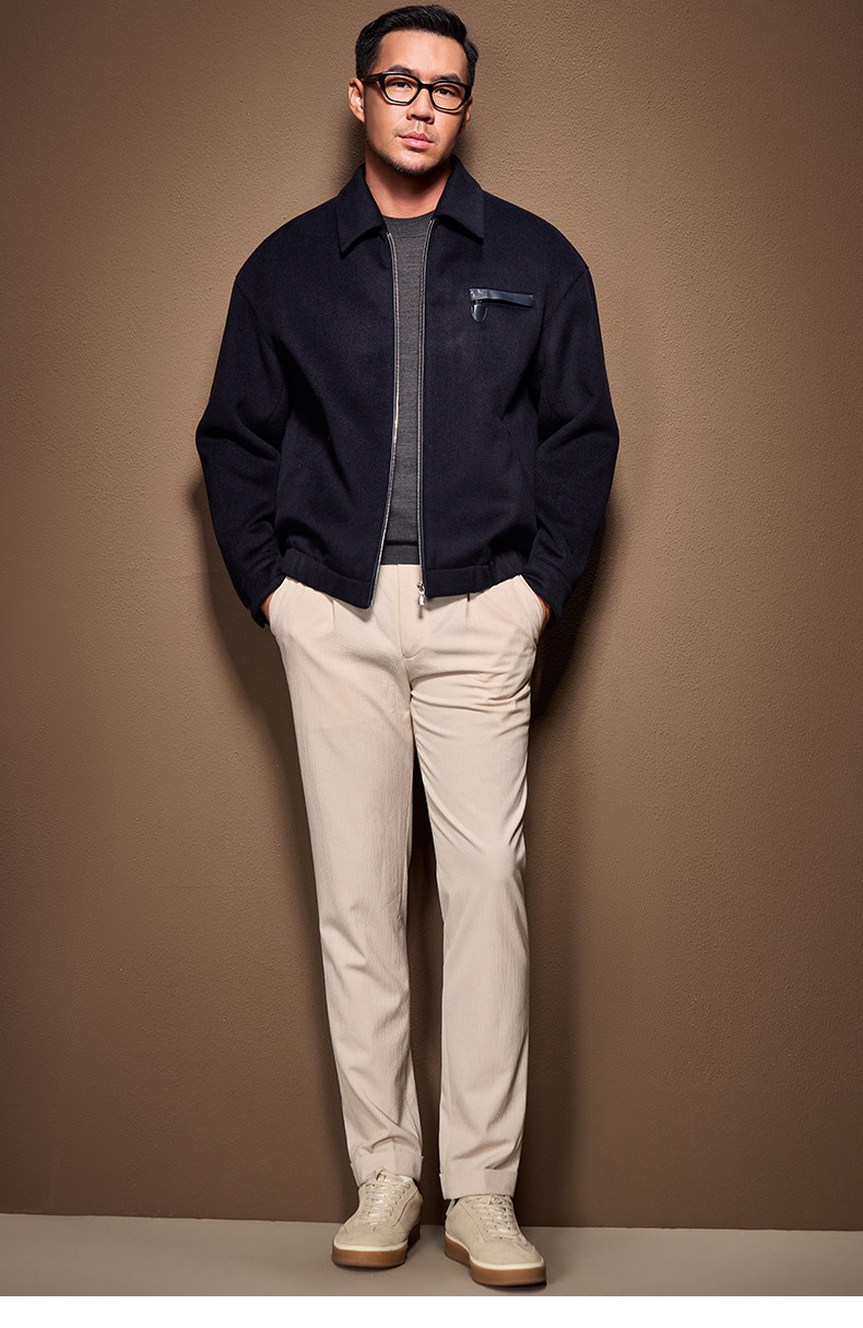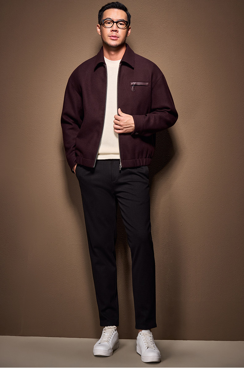 Men's Thick Woolen Coat with Mulberry Silk, Genuine Leather Patchwork Jacket, Autumn and Winter Turn-Down Collar Loose Woolen Overcoat