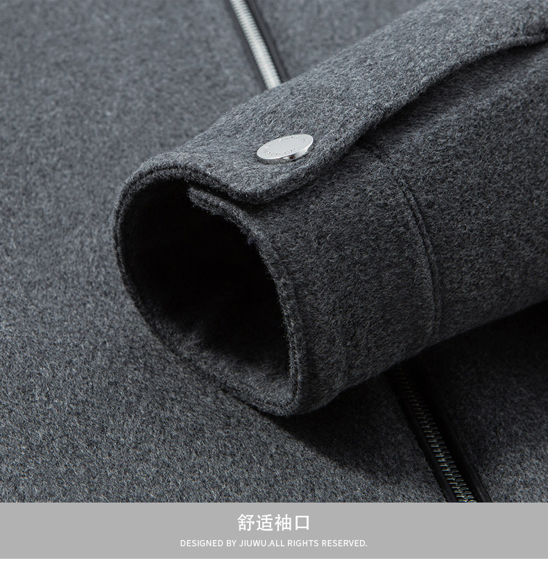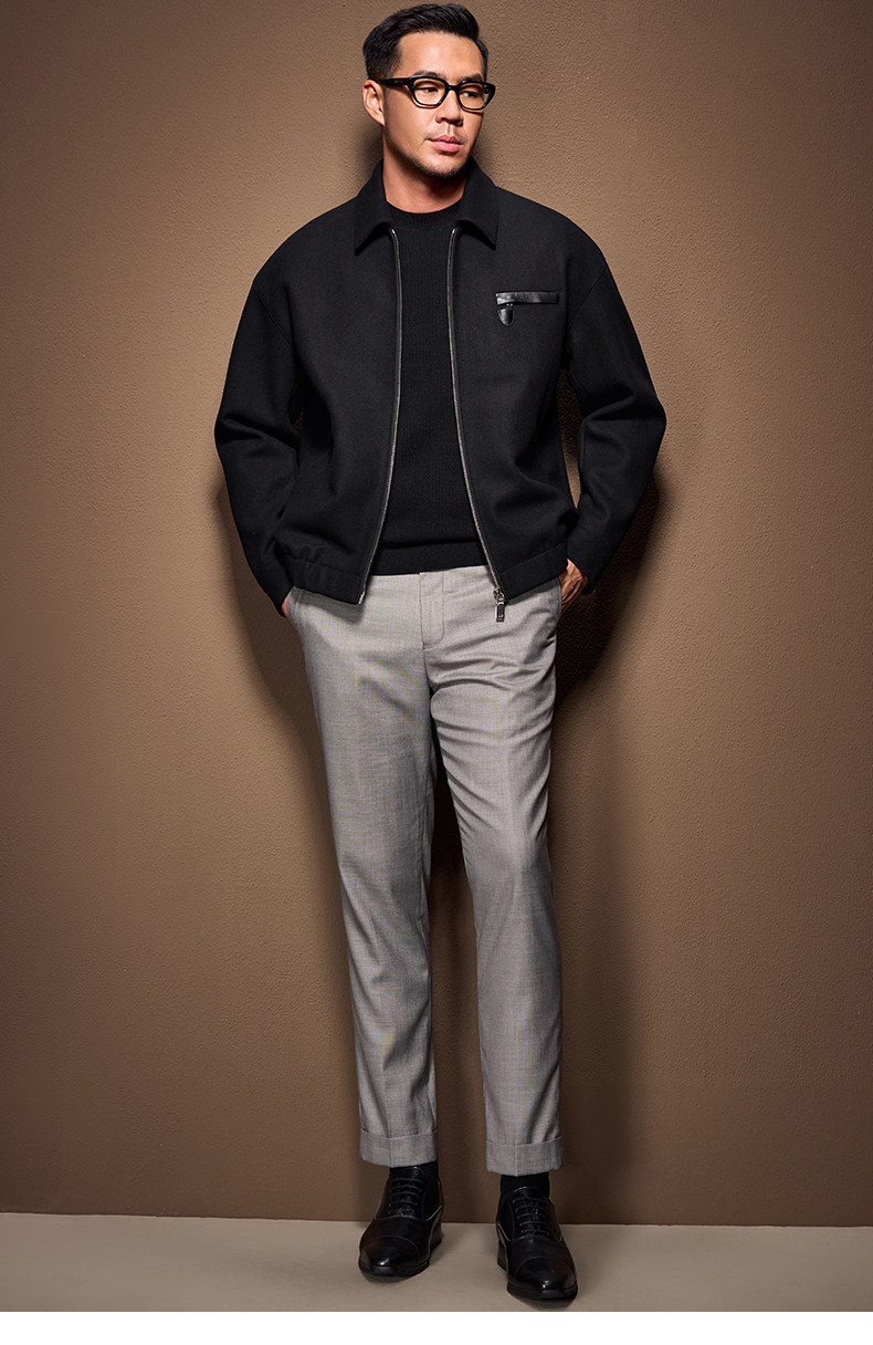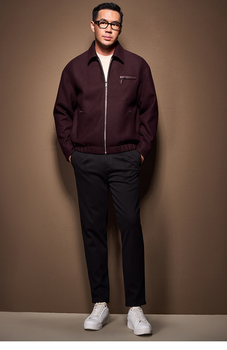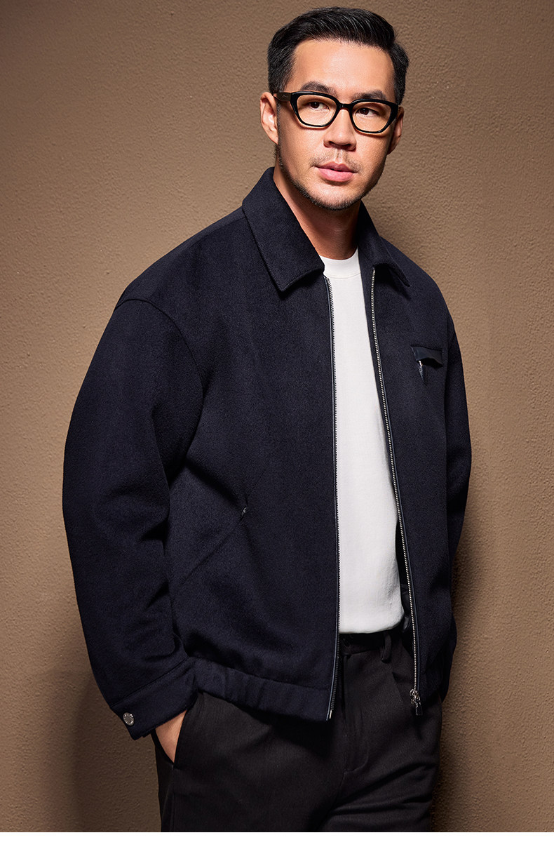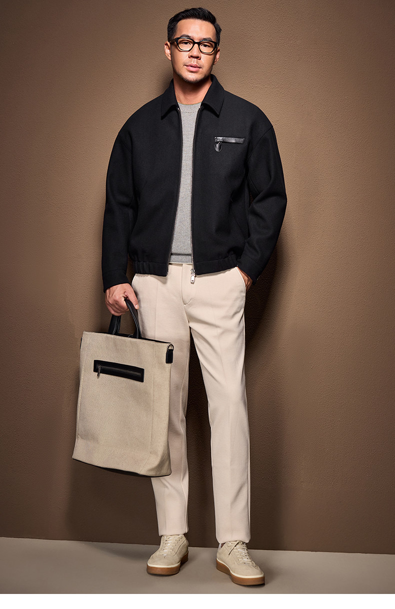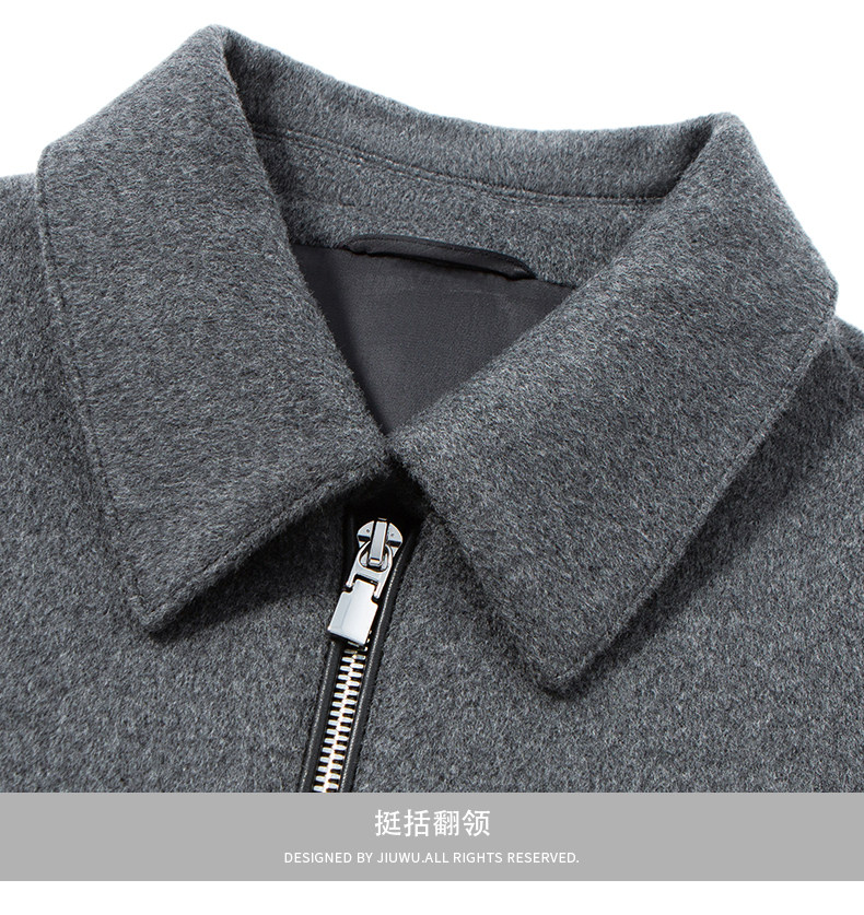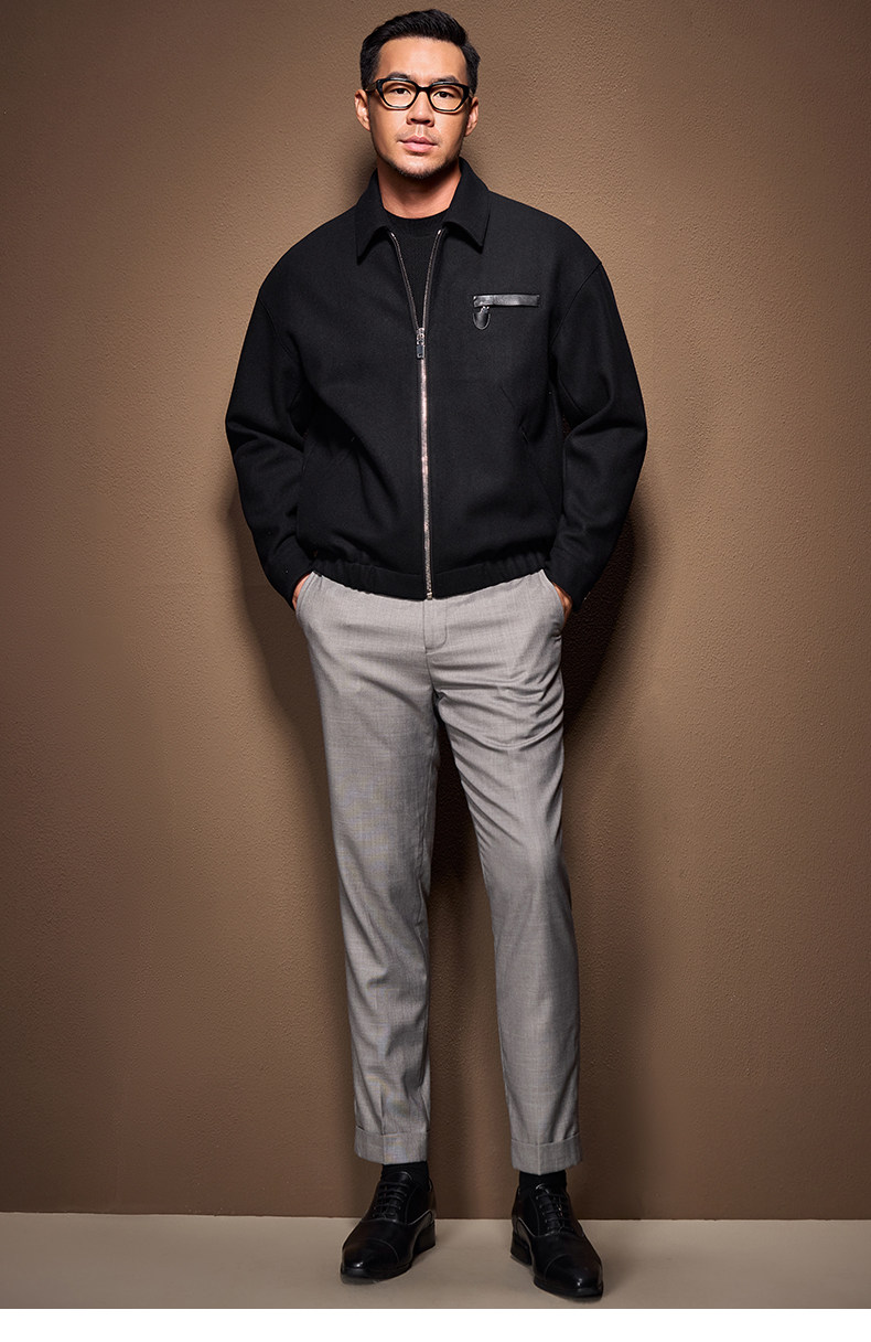 Men's Thick Woolen Coat with Mulberry Silk, Genuine Leather Patchwork Jacket, Autumn and Winter Turn-Down Collar Loose Woolen Overcoat