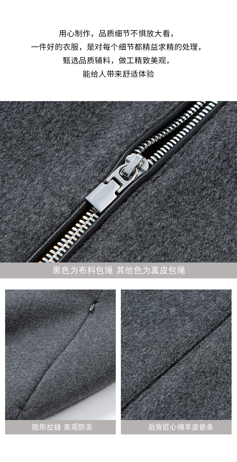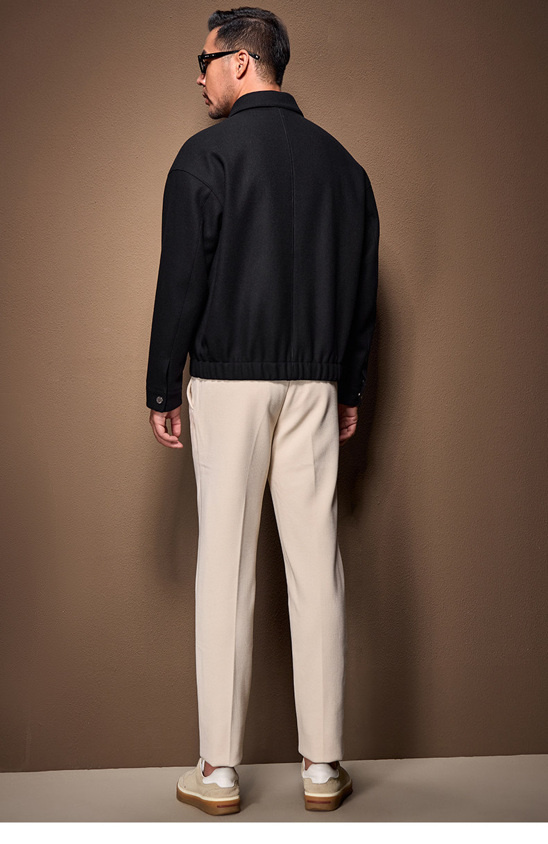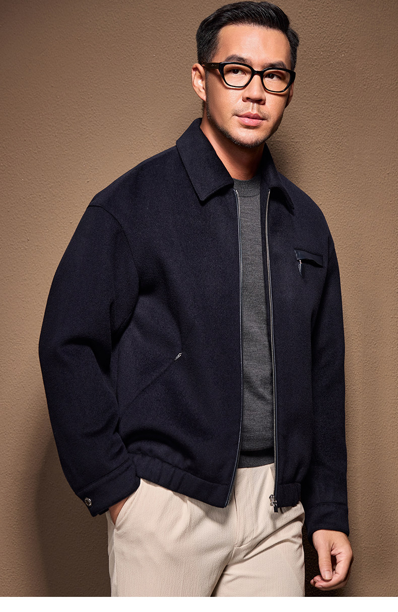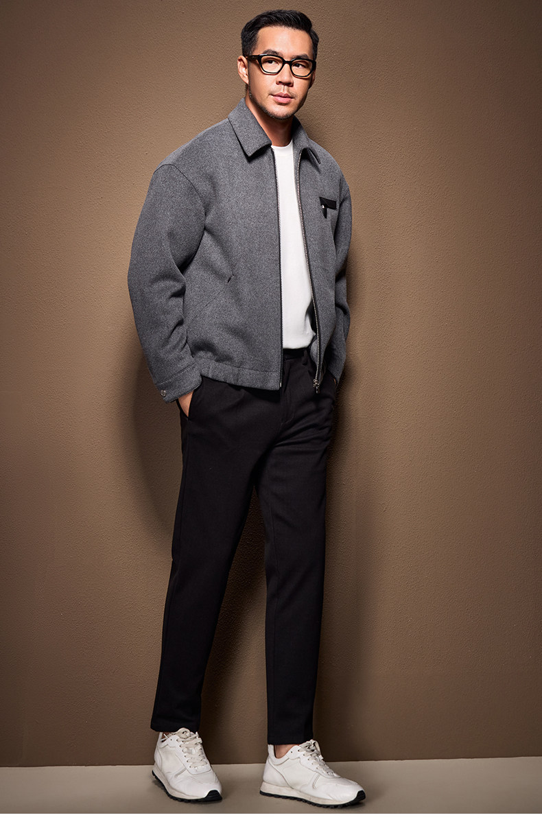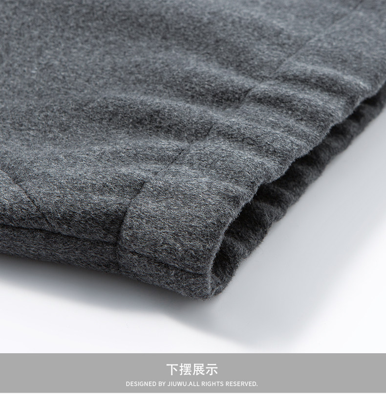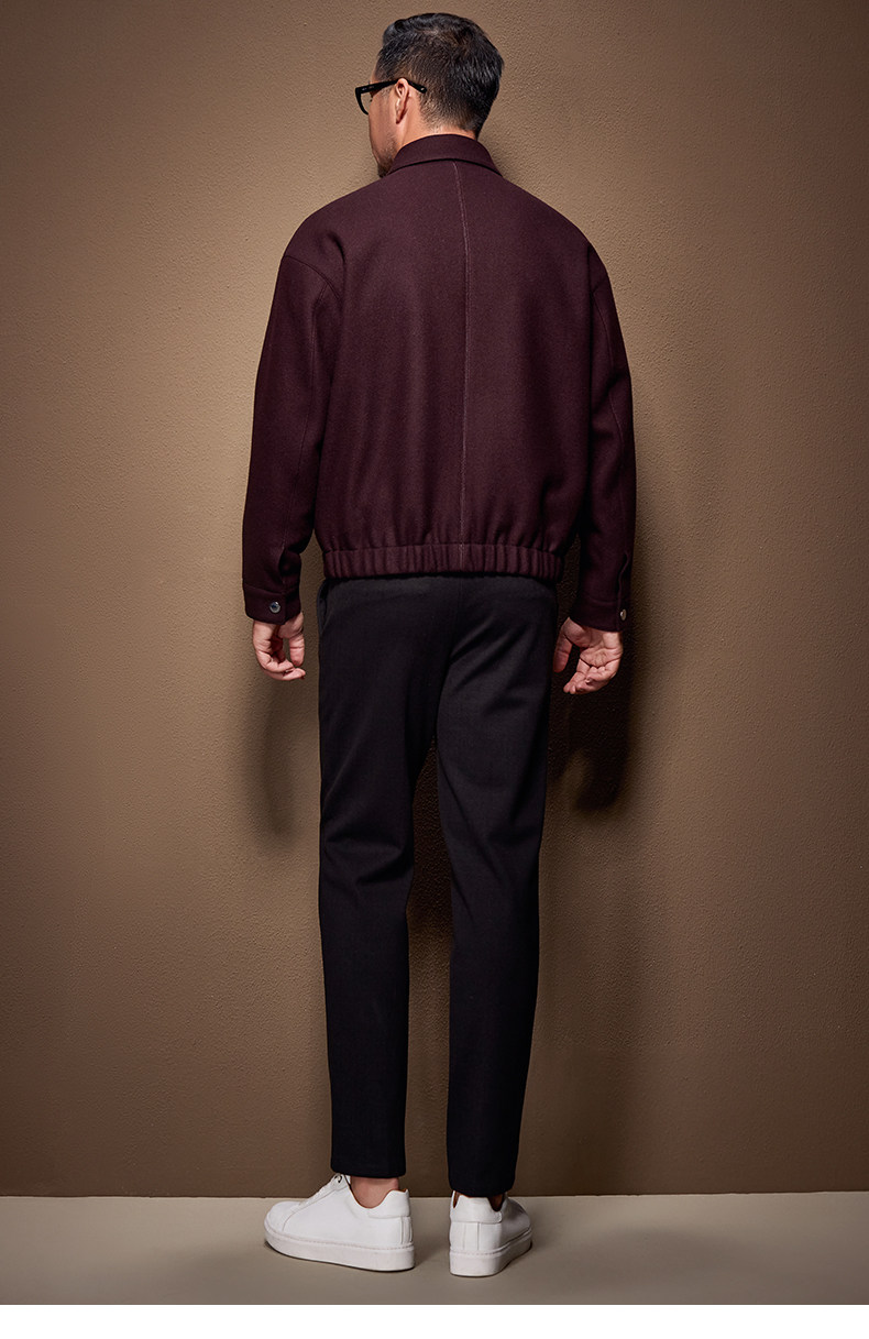 Men's Thick Woolen Coat with Mulberry Silk, Genuine Leather Patchwork Jacket, Autumn and Winter Turn-Down Collar Loose Woolen Overcoat