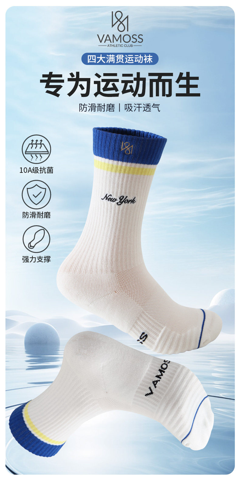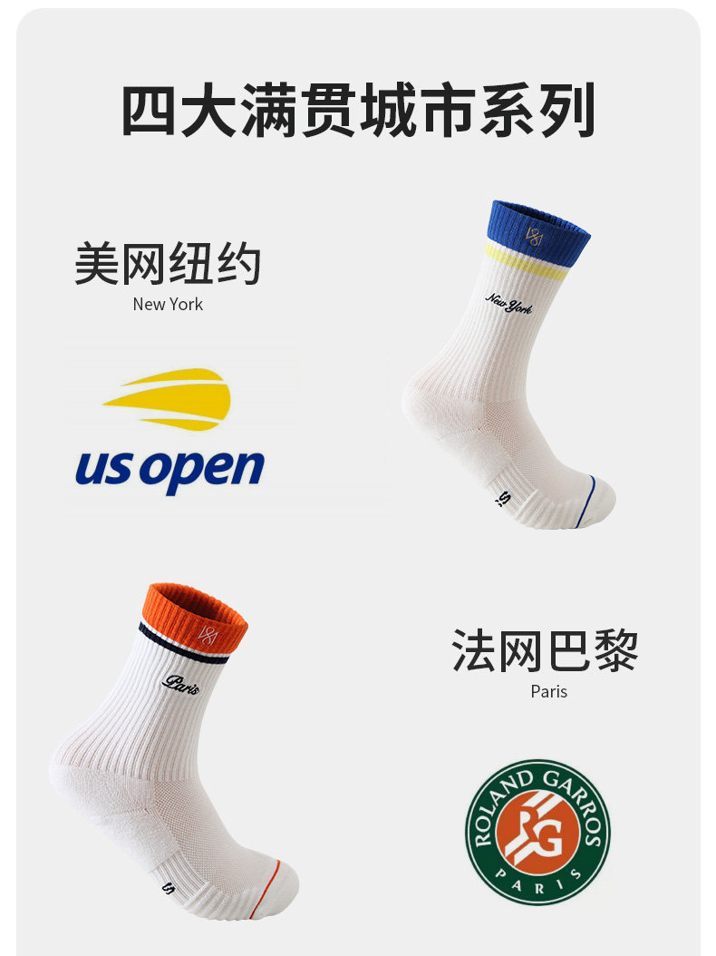 Original Embroidered Old Money Style Four Grand Slam Antibacterial Deodorant Strong Support Unisex Professional Tennis Socks