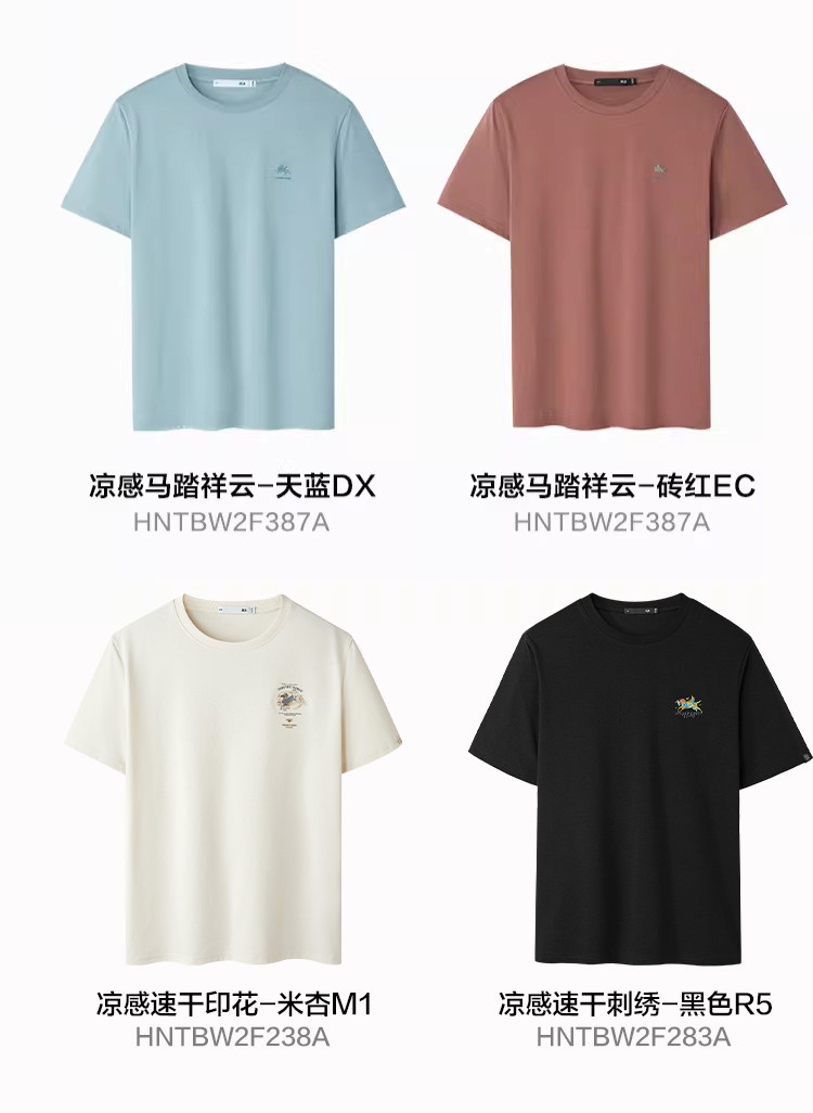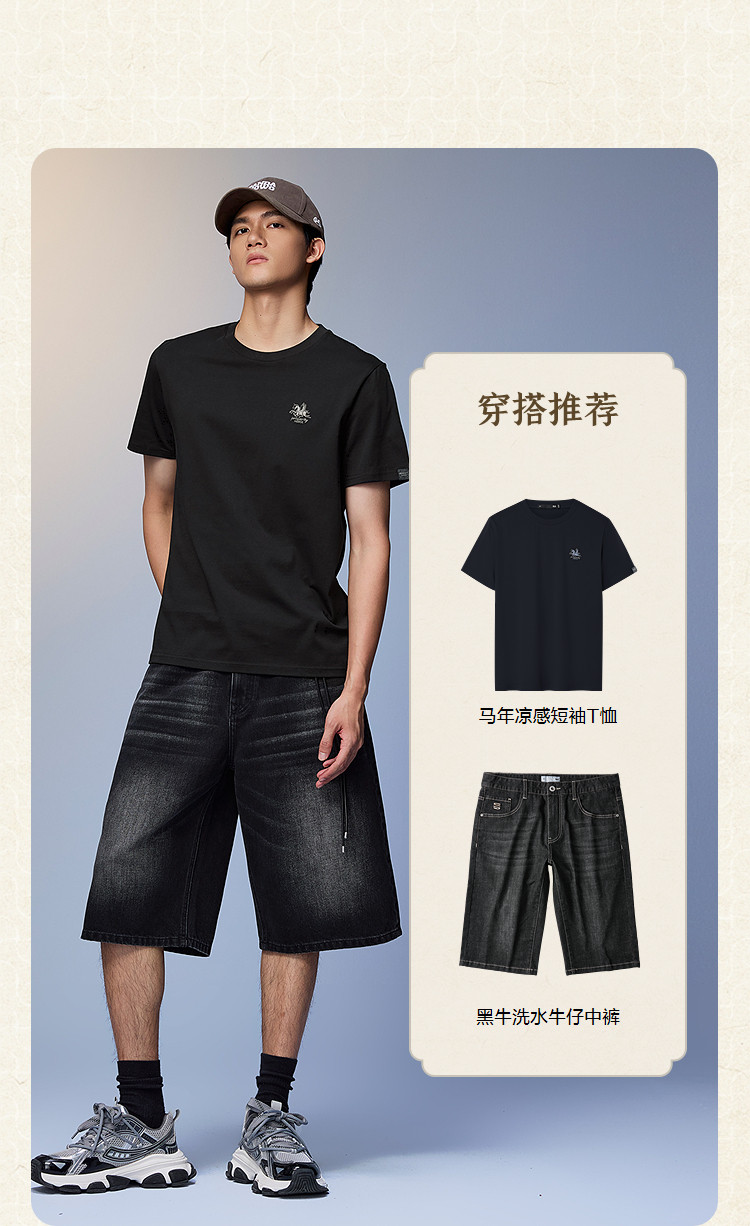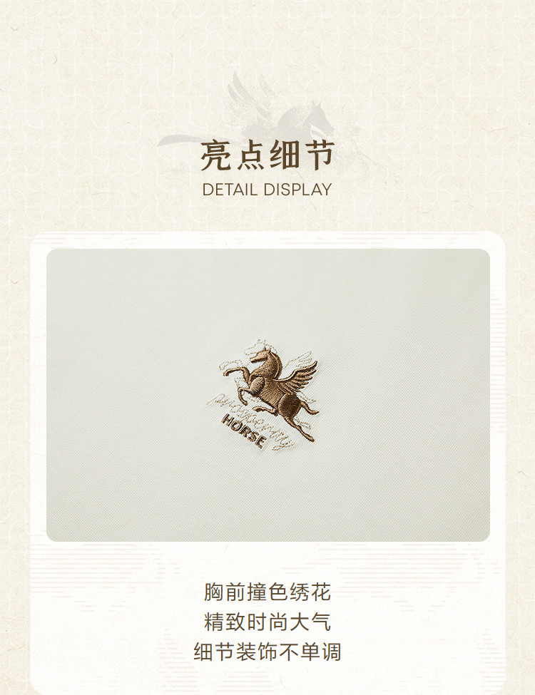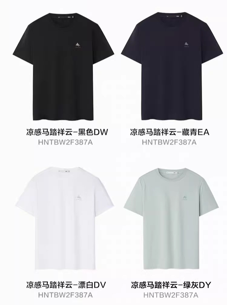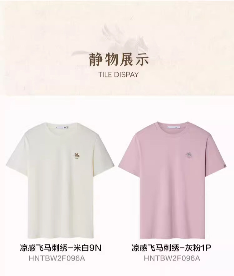 Hla Hla Home Dunhuang Short Sleeve T-Shirt 26 Spring/Summer New Cool Embroidery Horse Trampling Clouds White Short T-Shirt for Men and Women