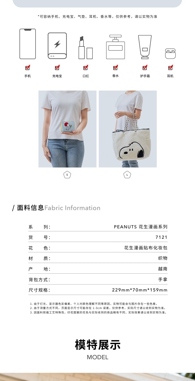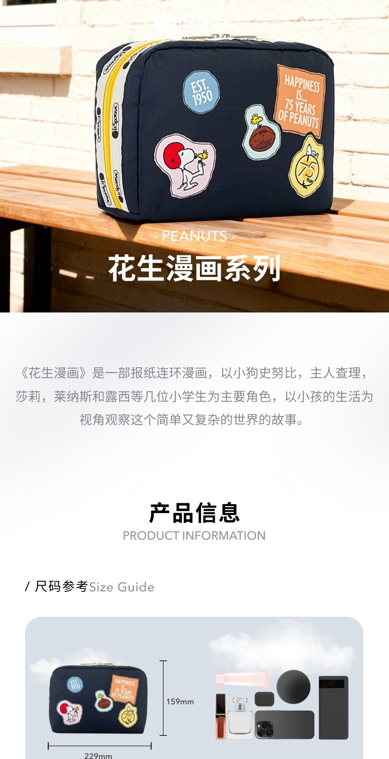 Lesportsac New Peanuts Comic Series Cute Snoopy Patch Makeup Bag Women's Clutch Bag